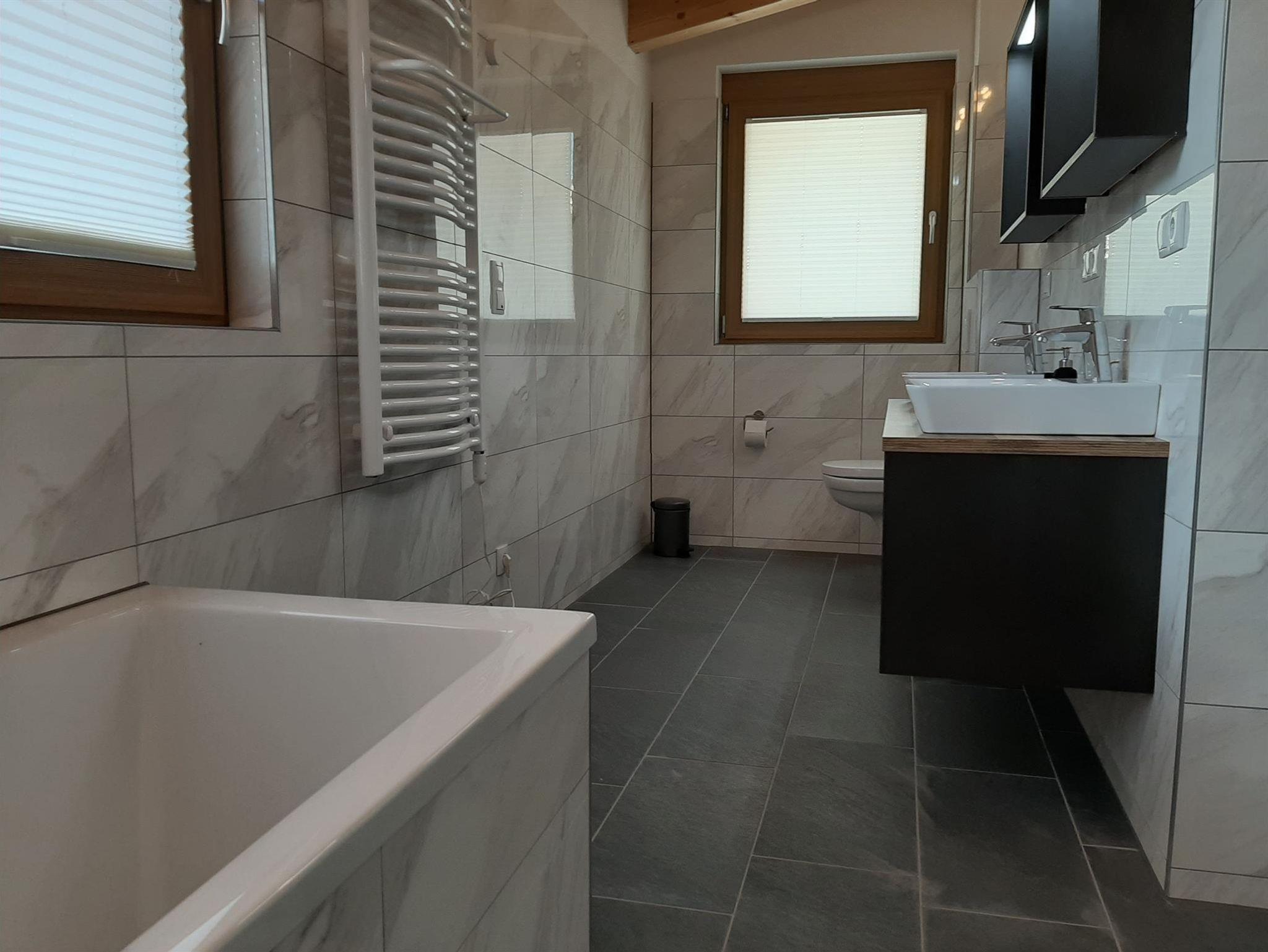 Von den beiden nebeneinanderliegenden Doppelschlafzimmern im Erdgeschoss hat man direkten Zugang zum Garten mit Sonnenterrasse. Kleine als auch große Kinder können sich auf dem Trampolin vergnügen. Entsprechenden Sitzmöglichkeiten für einen schönen Grillabend im Freien sind auch vorhanden. Von dort kann man den Sonnenuntergang und das großartige Panorama der umliegenden Berglandschaft genießen. Außerdem stellen wir 2 Mpuntainbikes (M/L und L/XL) zur kostenlosen Nutzung zur Verfügung.