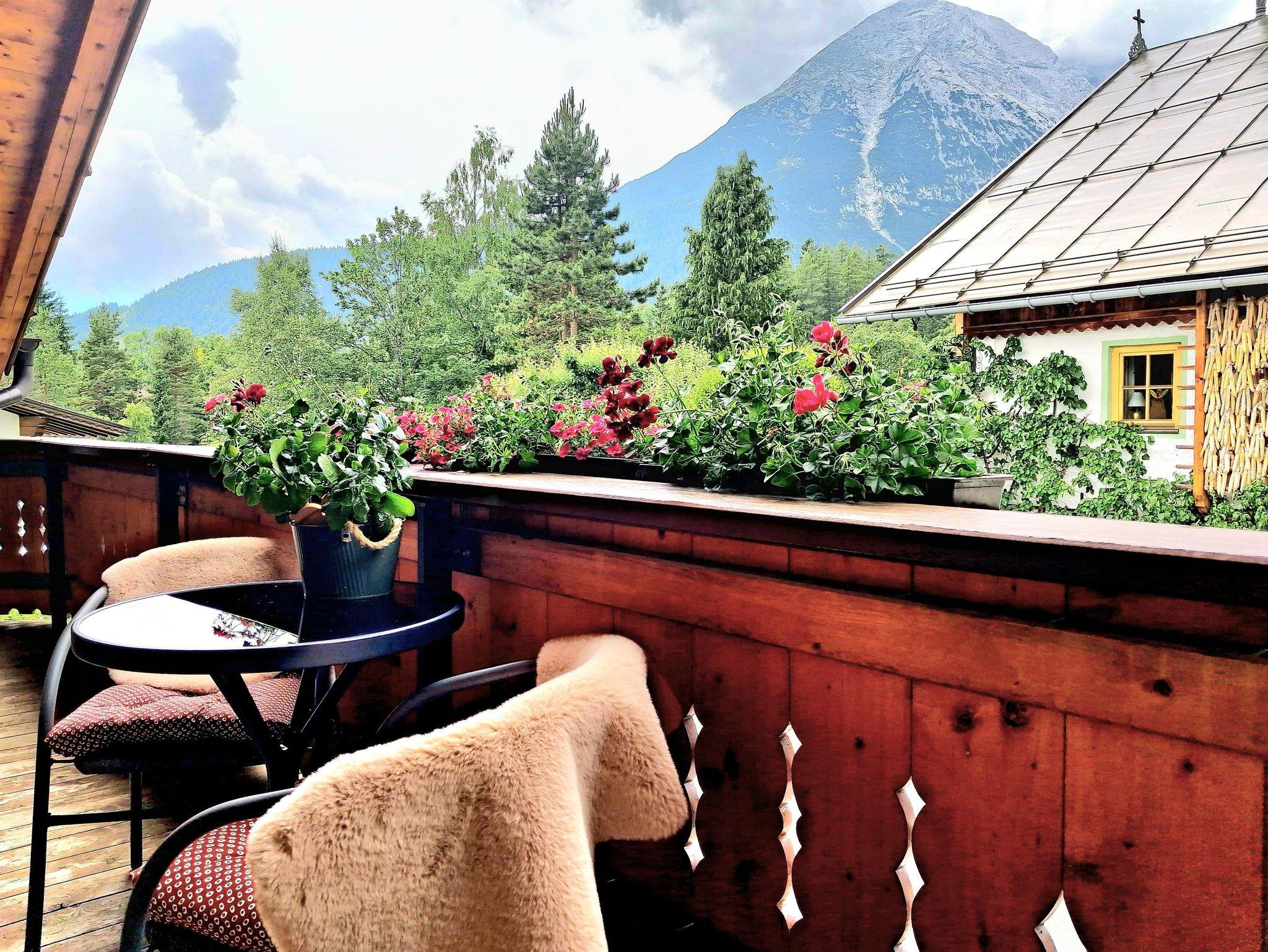 Die zweite Wohnung Silberdistel, im 1. Stock ist ca. qm 65 groß und verfügt über zwei Balkone, Aussicht auf die Berge, Hohe Munde und Gehrenspitze.