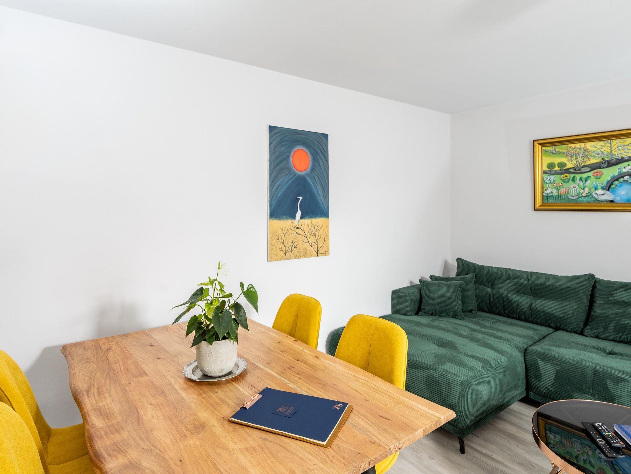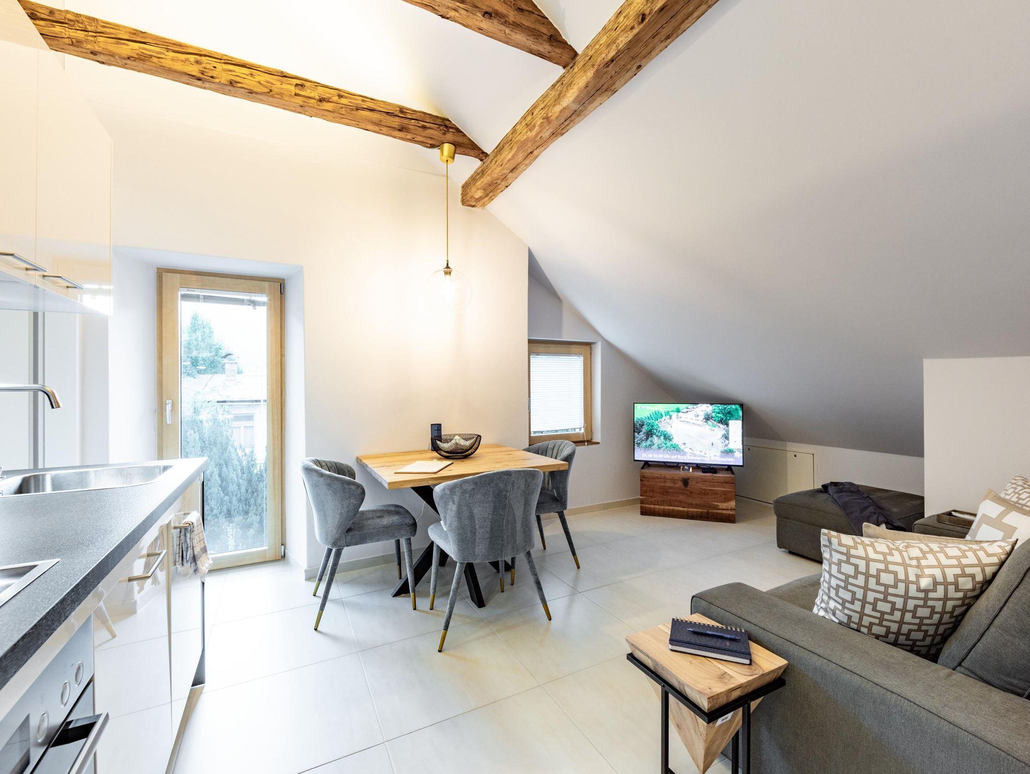 Die ideale Wohnung für bis zu 2 Personen plus ein Kind mitten in der Stadt und doch mit viel Ruhe und Rückzug. Erster Stock, Parkettböden, 65m² Wohnfläche: Küche vollausgestattet, 1 Wohn- & 1 Schlafzimmer, Ankleideraum, Bad plus 40m² Terrasse.