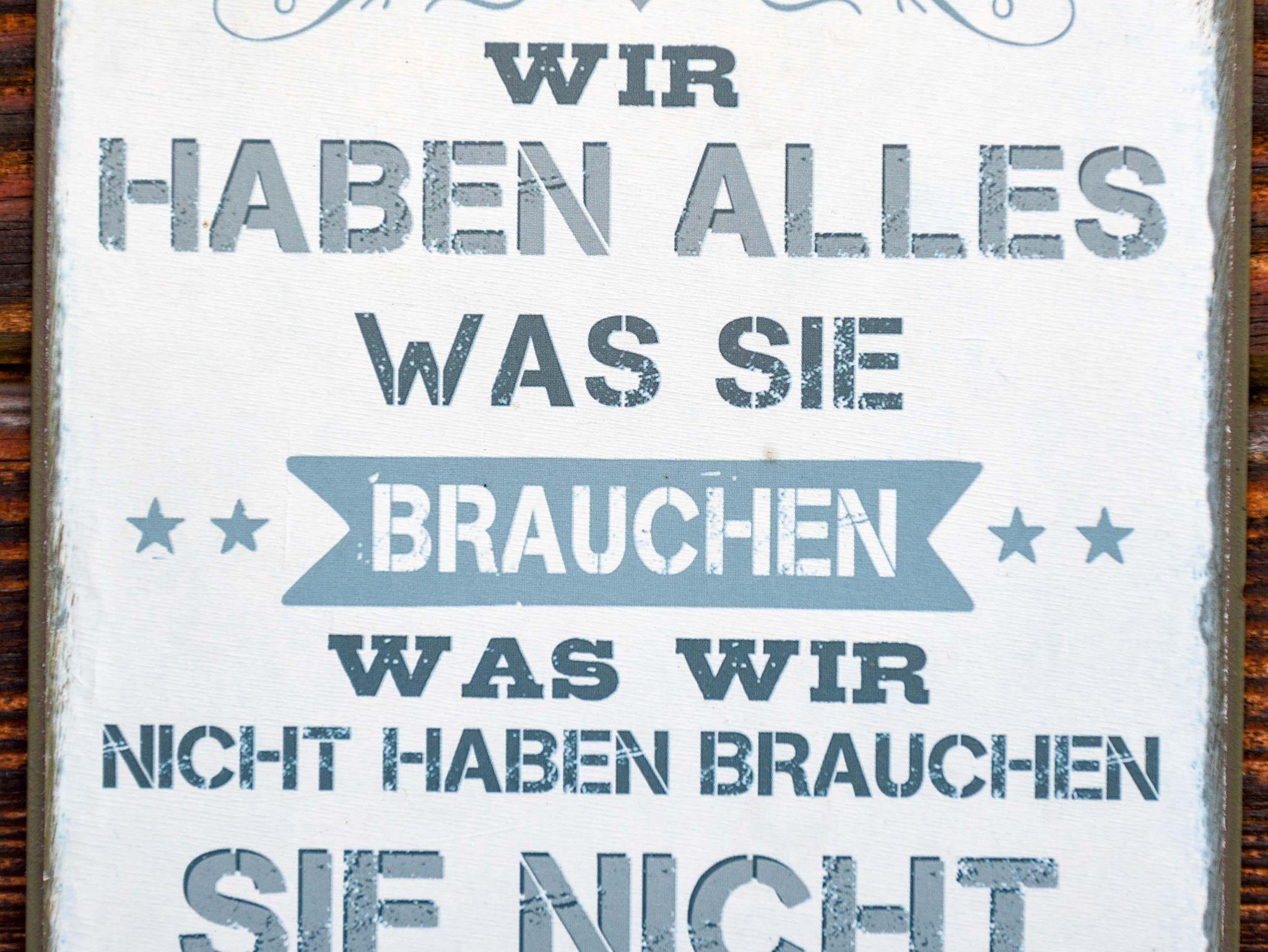 WIR HABEN ALLES WAS SIE BRAUCHEN, WAS WIR NICHT HABEN, BRAUCHEN SIE NICHT