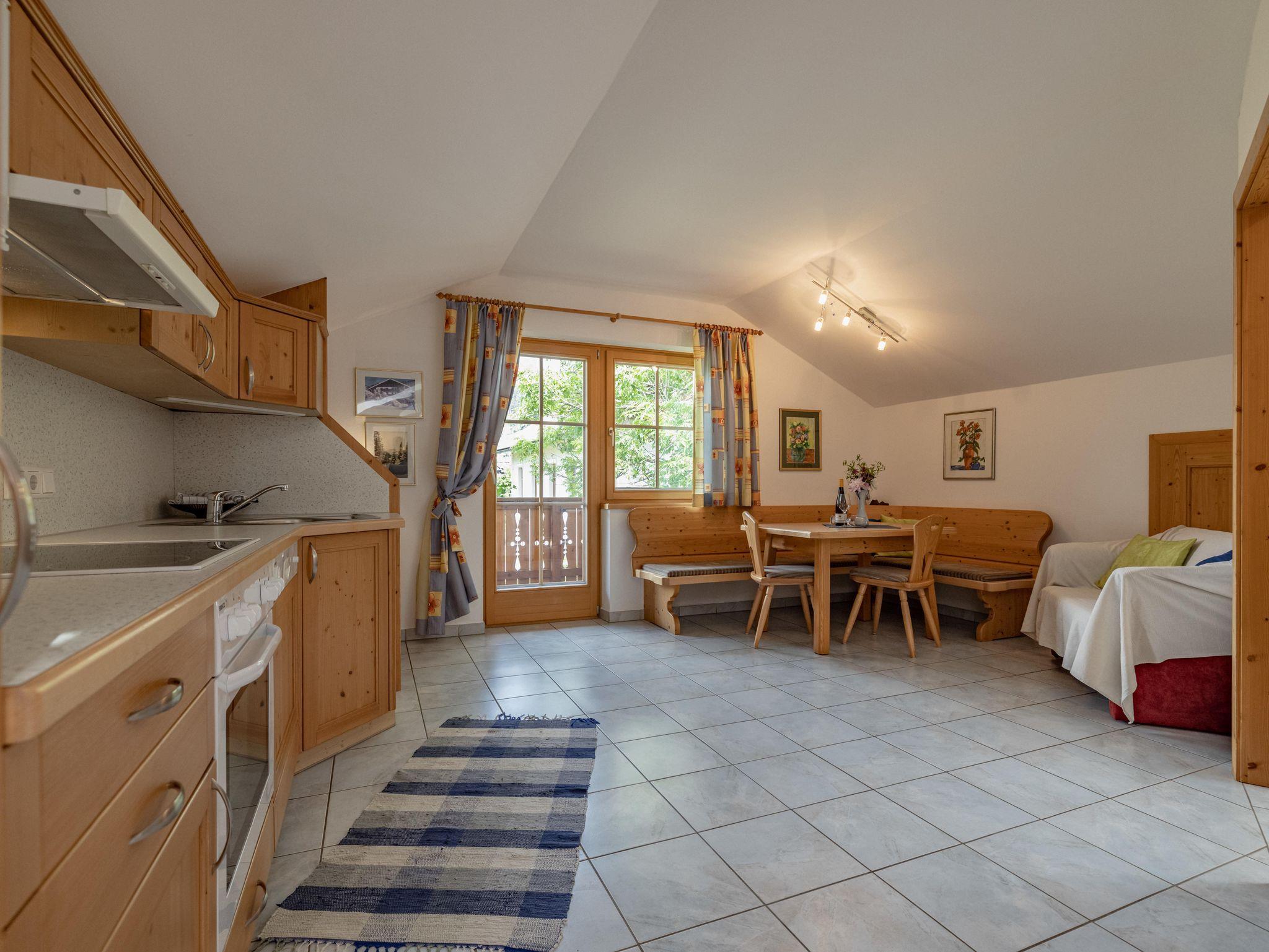 Die Ferienwohnung Winter bietet auf ca. 60 m² Platz für bis zu 4 Personen und begeistert mit heimeliger Atmosphäre und liebevoller Ausstattung. Sie verfügt über zwei getrennte Schlafzimmer, einen offenen Wohn- und Essbereich mit voll ausgestatteter Küche sowie ein modernes Badezimmer mit Dusche und WC. Helle Holzmöbel, warme Farben und natürliche Materialien schaffen ein behagliches Wohngefühl. Vom Balkon aus genießen Sie einen herrlichen Blick auf die verschneite Bergwelt des Lesachtals – ideal für entspannte Wintertage in familiärer Umgebung.