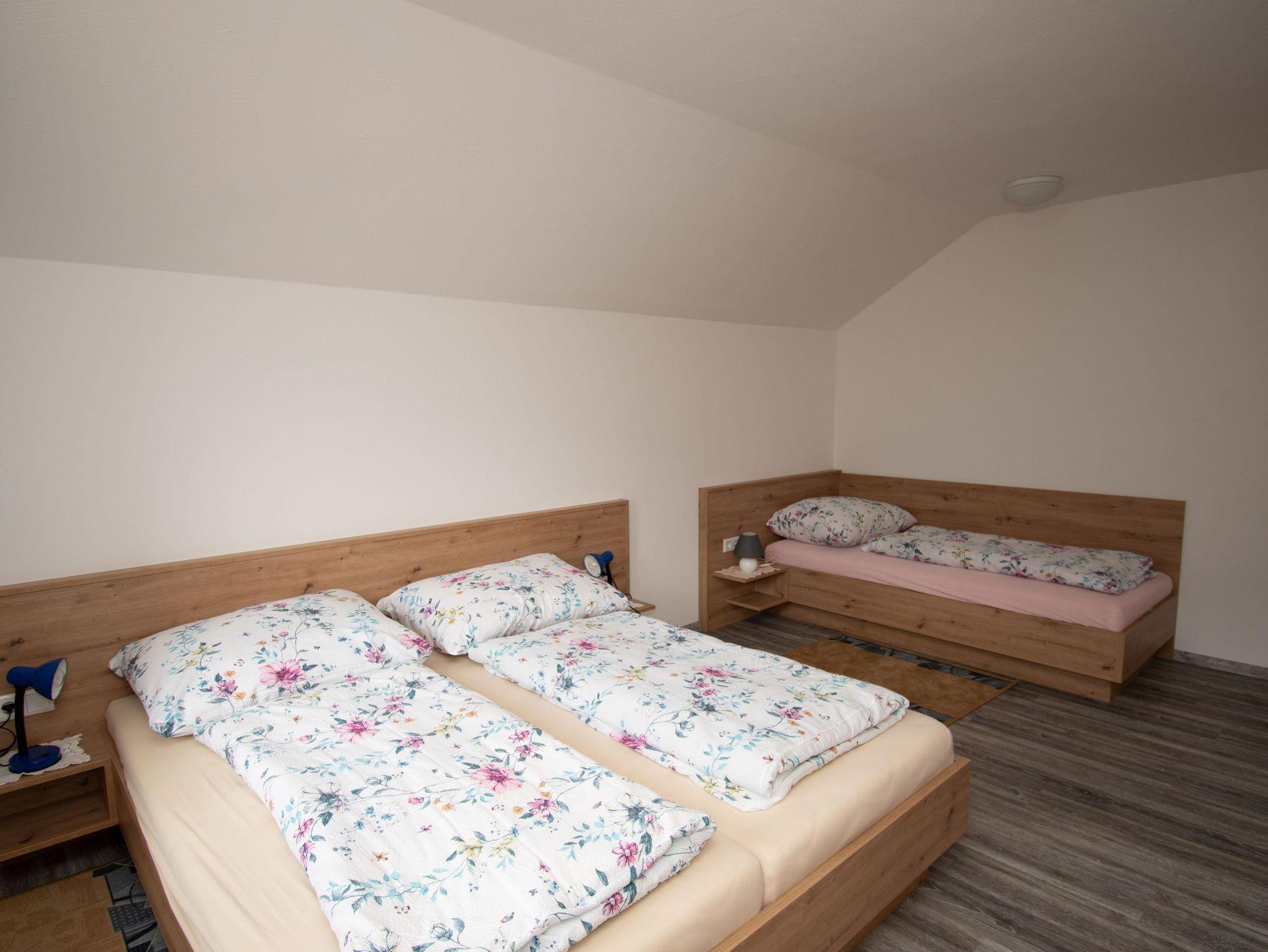Dreibett-Zimmer Das Dreibettzimmer ist mit einem Doppelbett und einem Einzelbett ausgestattet. Das große Bett ist für zwei Personen ausgestattet - das Einzelbett für eine Person.