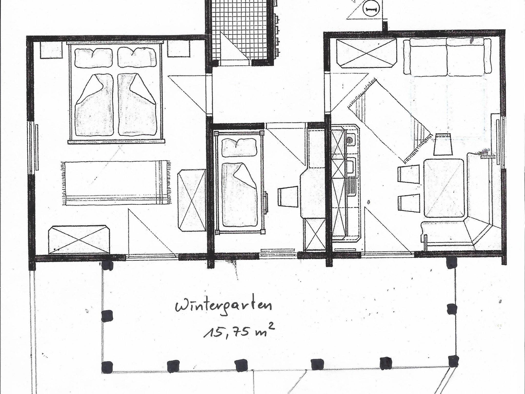 Lage: Erdgeschoß: eigener großzügiger Wintergarten und Balkon mit Sitzgelegenheit, Nordostseite (Vormittagssonne)