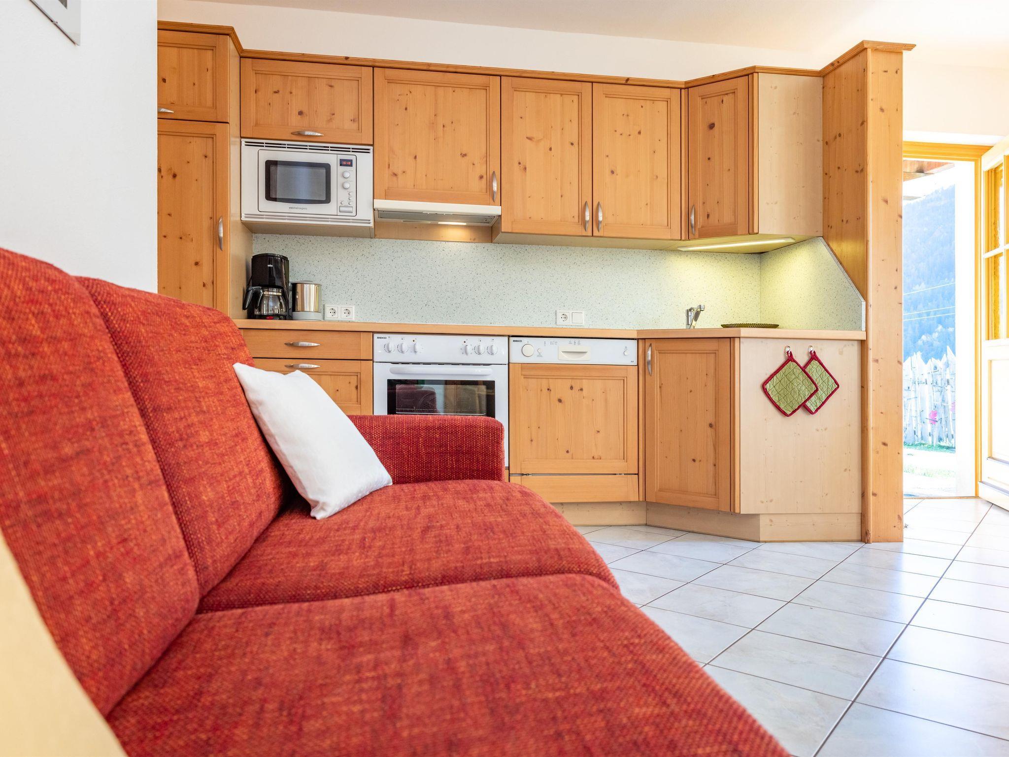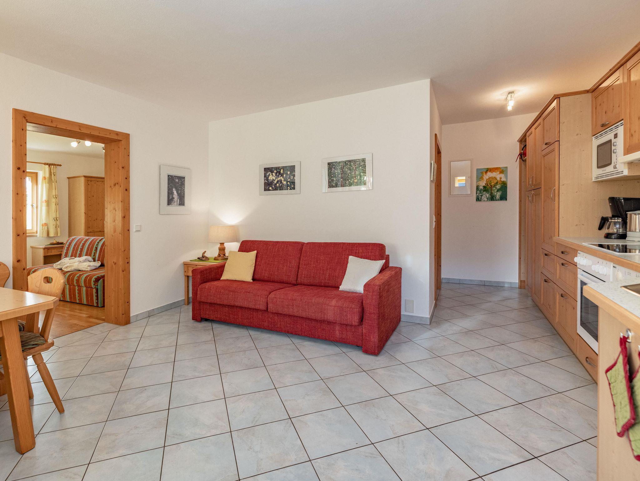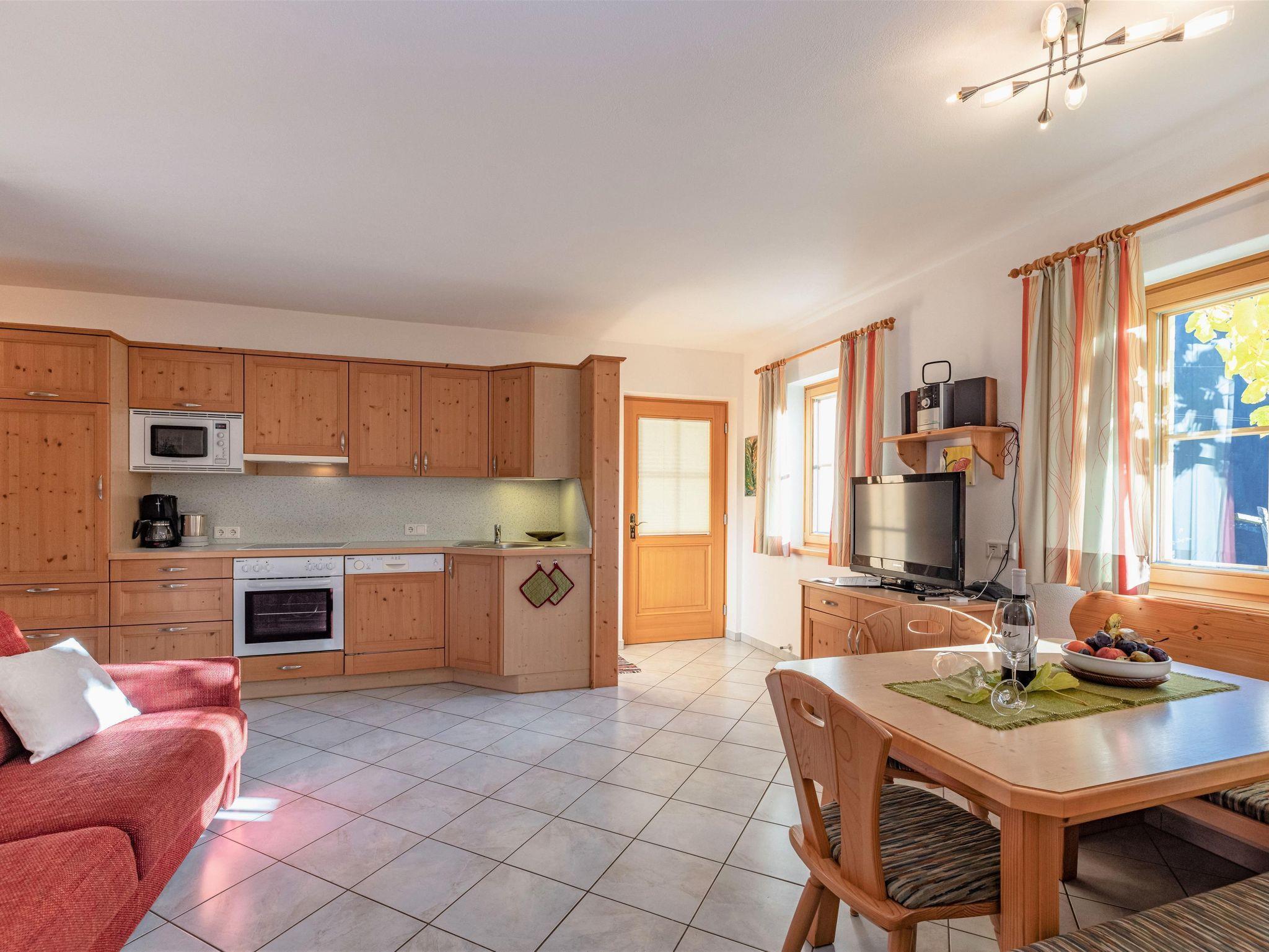 Ferienwohnung „Frühling“ – Leicht und freundlich wohnen Die Ferienwohnung Frühling bietet auf ca. 45?m² Platz für bis zu 3 Personen. Sie verfügt über ein gemütliches Schlafzimmer, einen hellen Wohn-Essbereich mit ausziehbarem Sofa, eine voll ausgestattete Küche sowie ein modernes Badezimmer mit Dusche und WC. Freundliche Farben, viel Holz und liebevolle Details verleihen der Wohnung eine frische, wohnliche Atmosphäre. Vom Balkon aus genießen Sie einen herrlichen Blick auf die Natur rund um den Genusshof – ideal für entspannte Urlaubstage im Lesachtal.