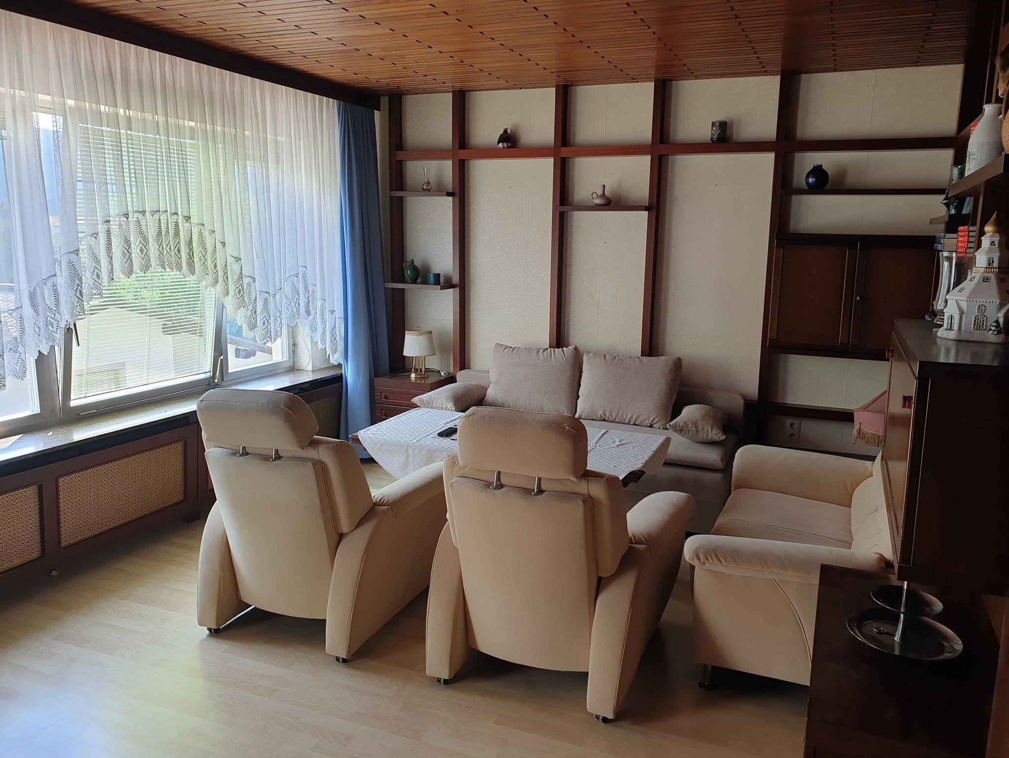 • Wohnzimmer mit Wohnlandschaft, ausziehbarem Sofa und TV-Sessel