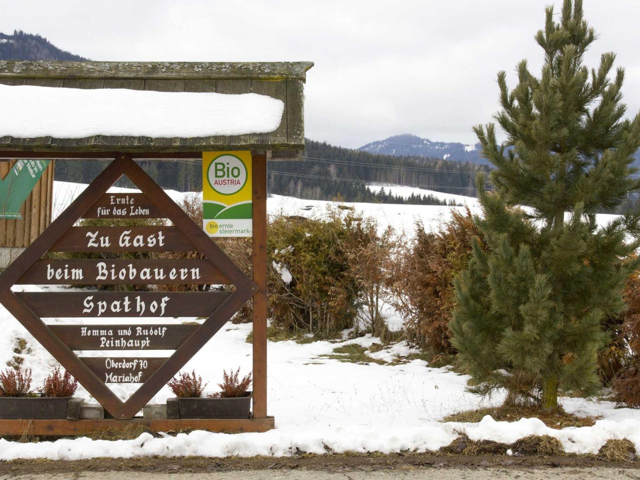 Unser Biobauernhof liegt im Naturpark Grebenzen im Ortsteil Mariahof. Im Winter führt die Langlaufloipe direkt am Haus vorbei.