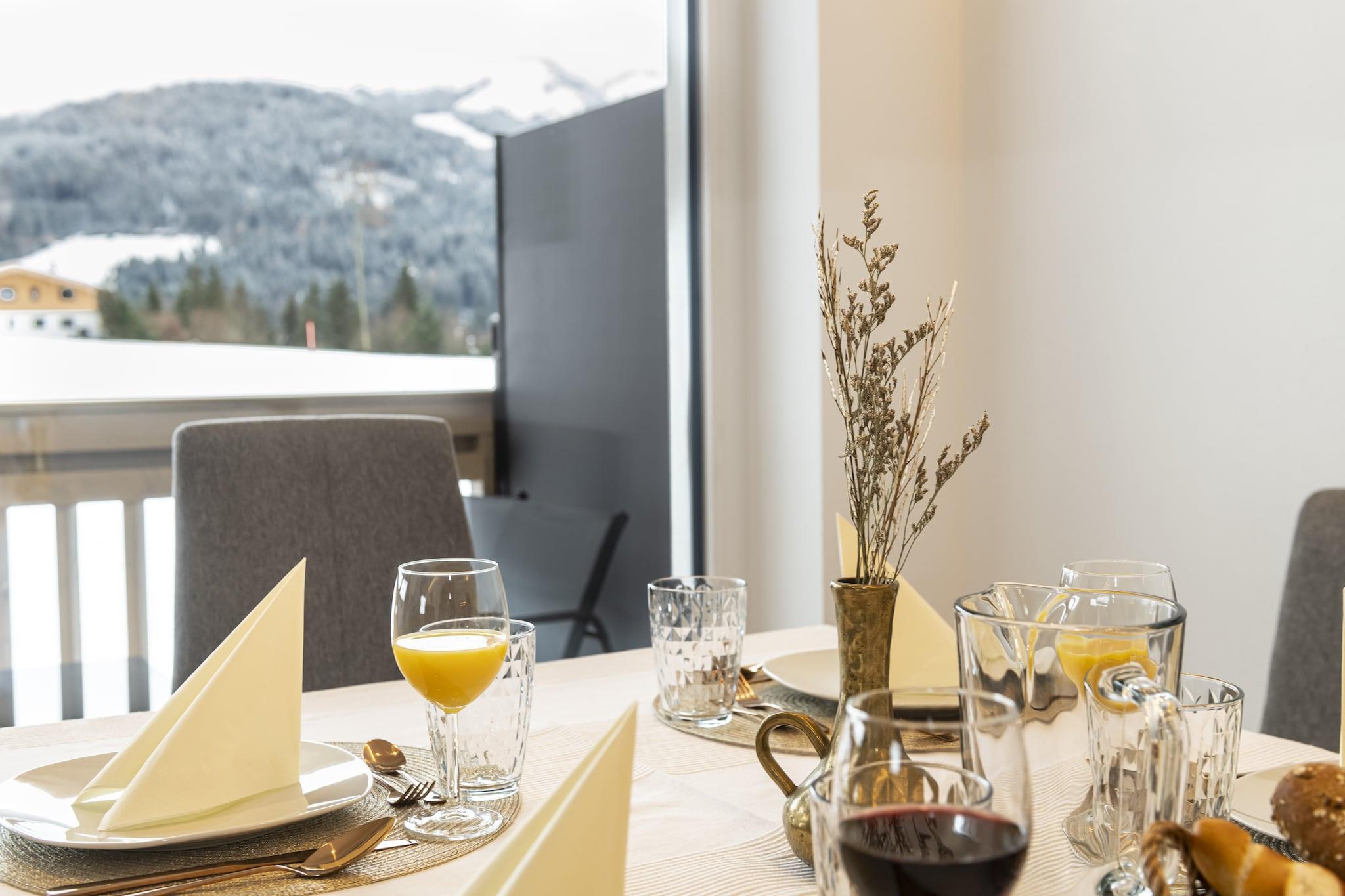 Alpin lägenhet med drömutsikt och trädgårdskänsla