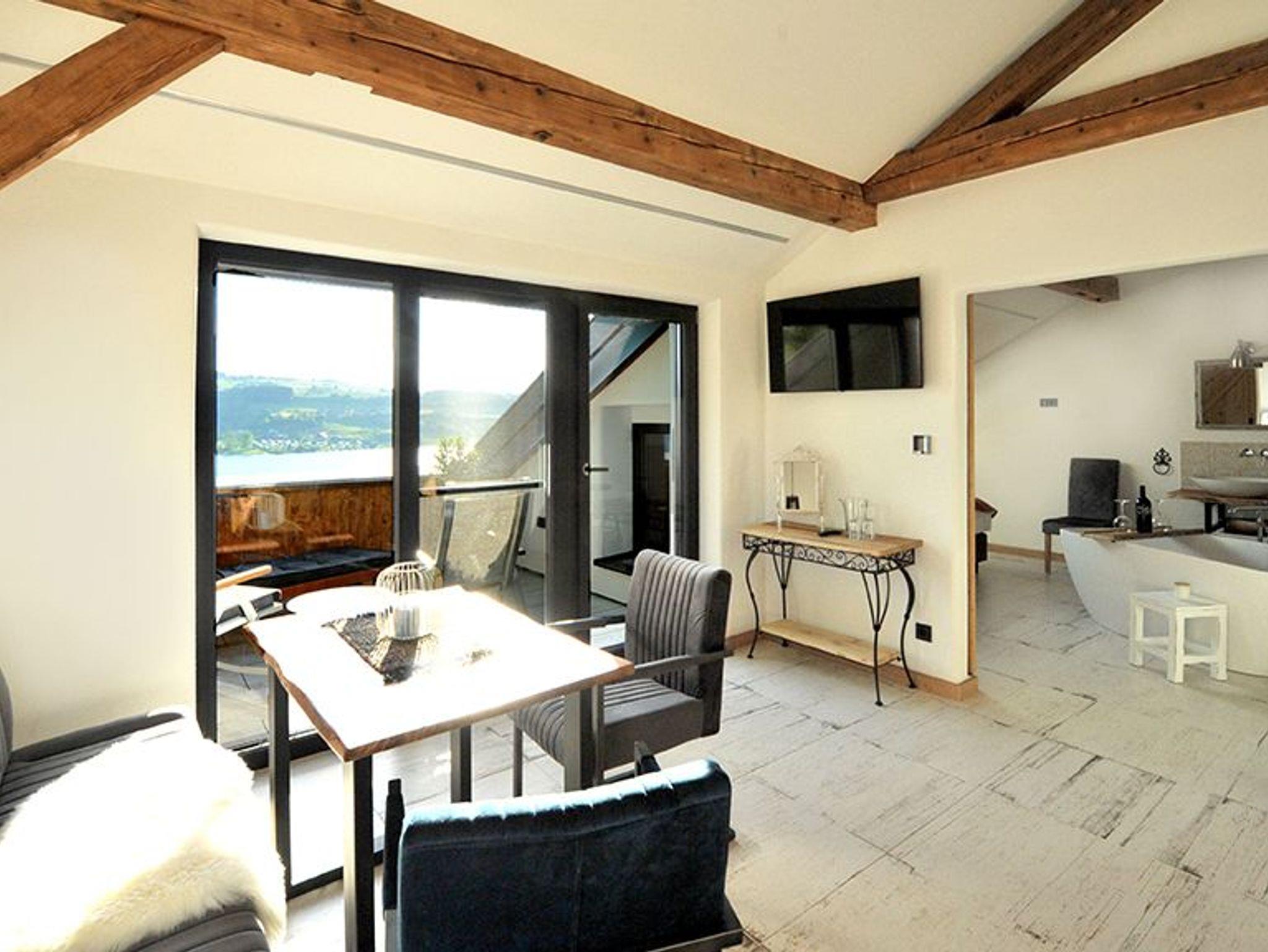 Wohnen mit Stil und Komfort, in mit Herz und Gefühl eingerichteten Wohlfühlzimmer für Zwei. Eine frei stehende Badewanne im Schlafzimmer, eine gemütliche Wohnküche und eine am Süd Hang gelegene Dachterrasse mit Blick auf den Irrsee, tragen zum Ankommen und wohlfühlen bei. Ein besonderer Bio Art Kaffee ist immer frei genießbar. Unser Roider Bio Frühstücks Kisterl wird individuell nach Appetit und Geschmack zusammengestellt. Für unsere Gäste steht ein eigener Carport Parkplatz bereit.