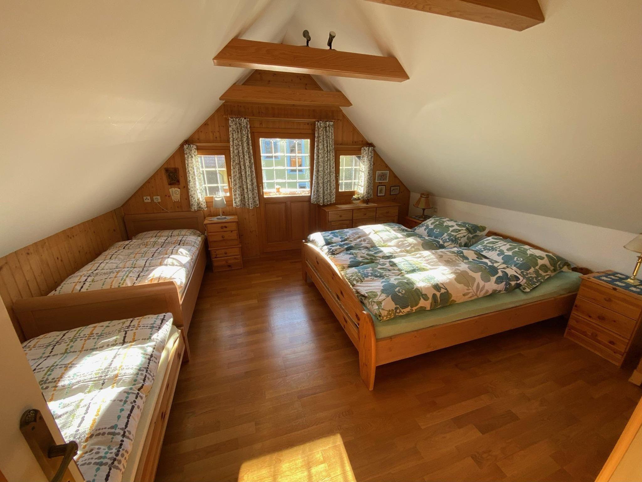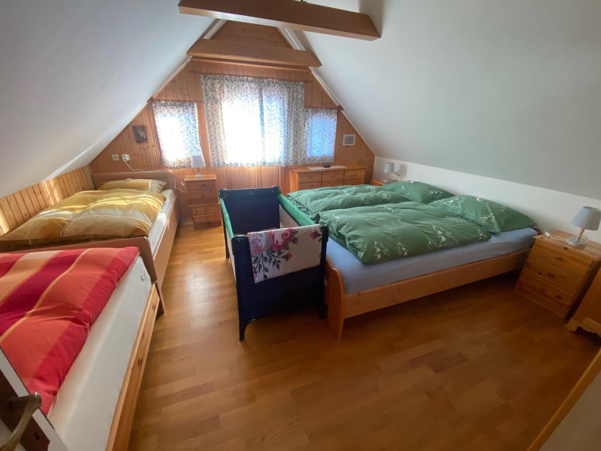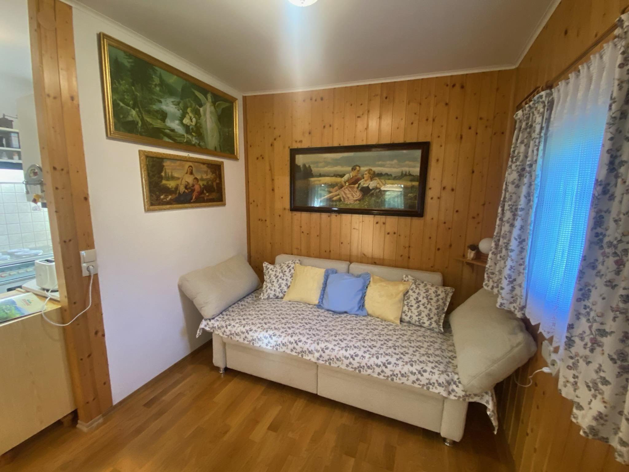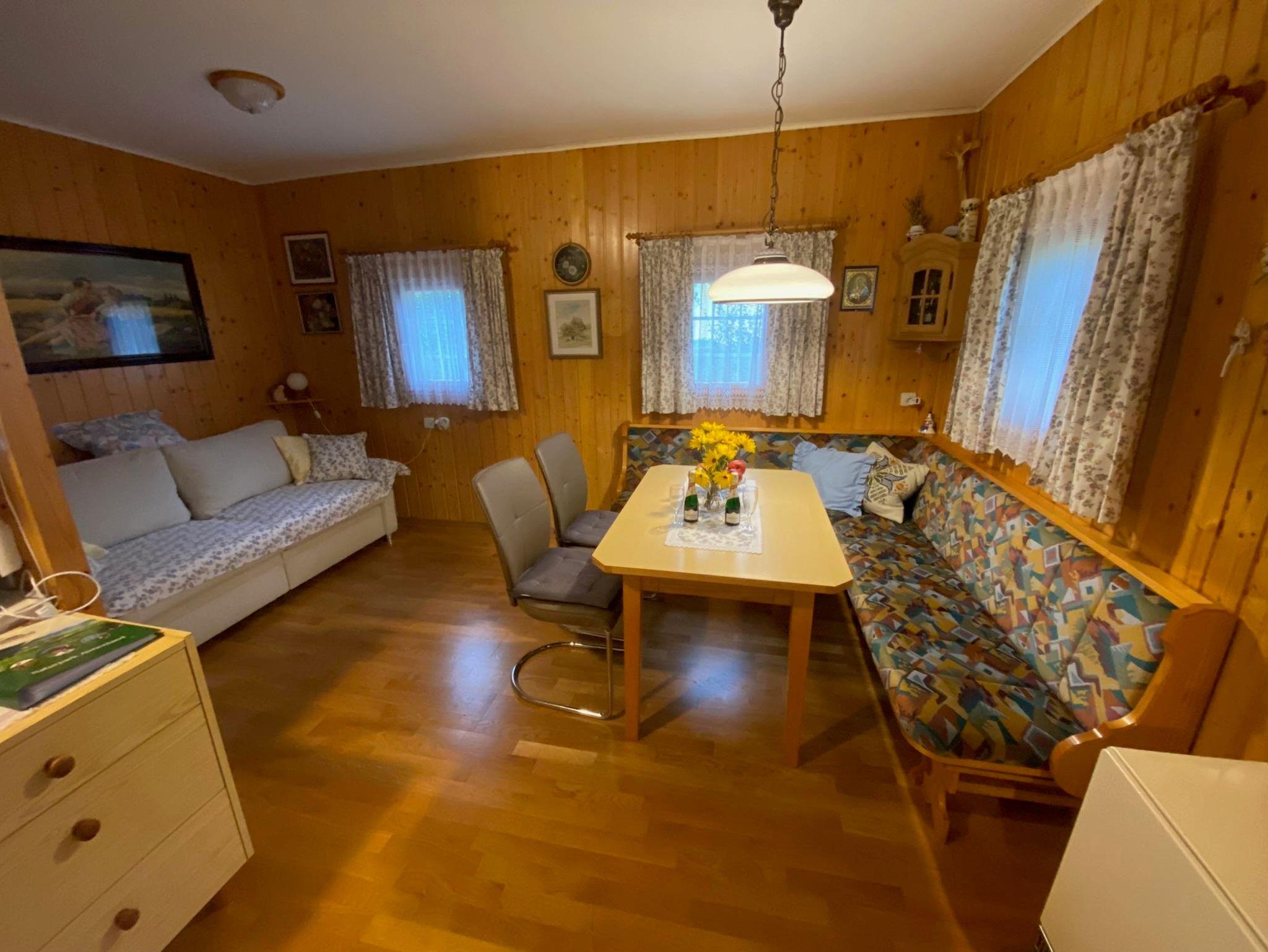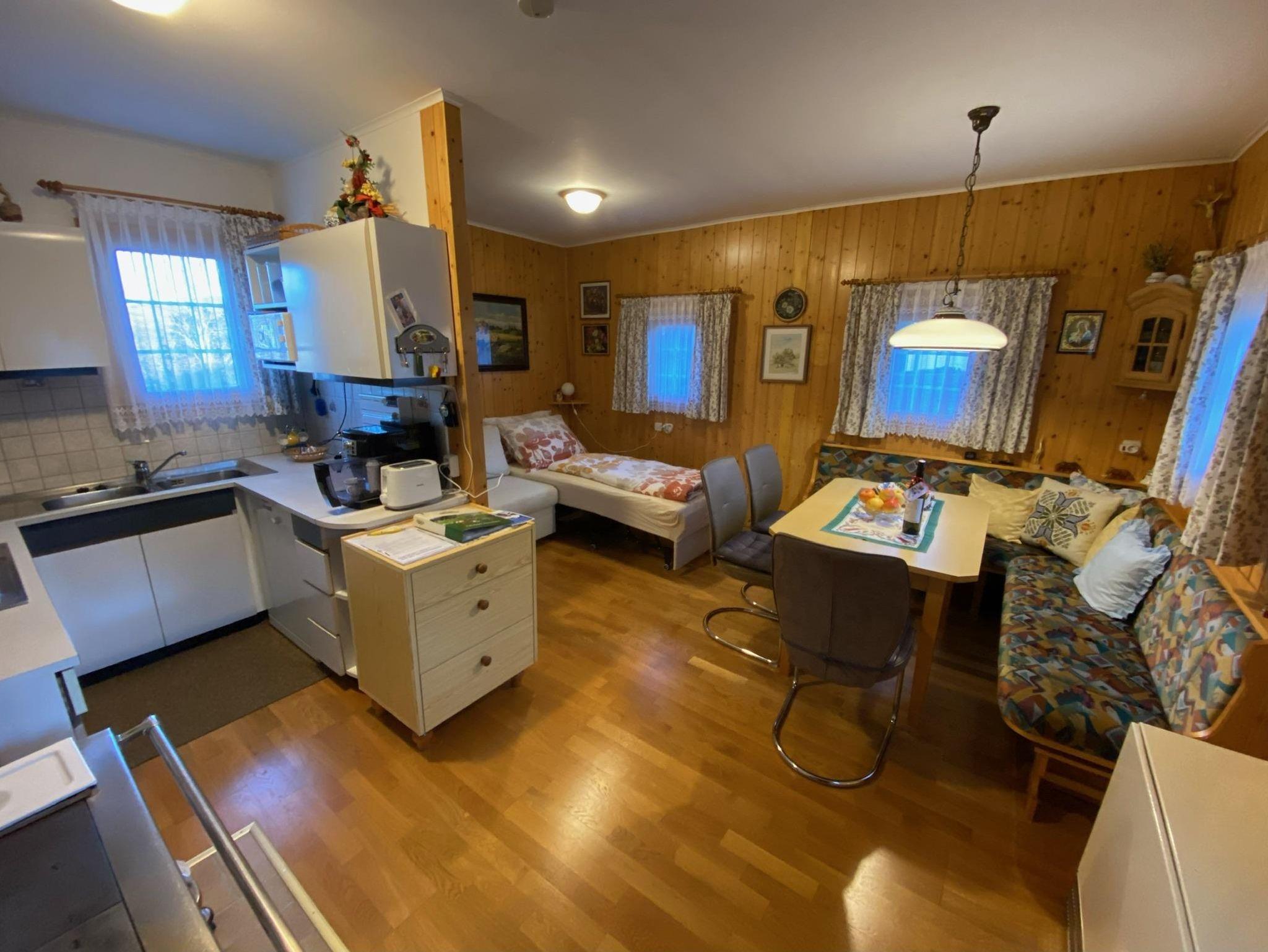 Das Haus besteht im Erdgeschoß aus 1 Vorraum, 1 Wohnküche mit Schlafplatz für 2 Personen, Bad und WC. Im Obergeschoß befindet sich 1 Vorraum und 1 Schlafraum mit 4 Betten.