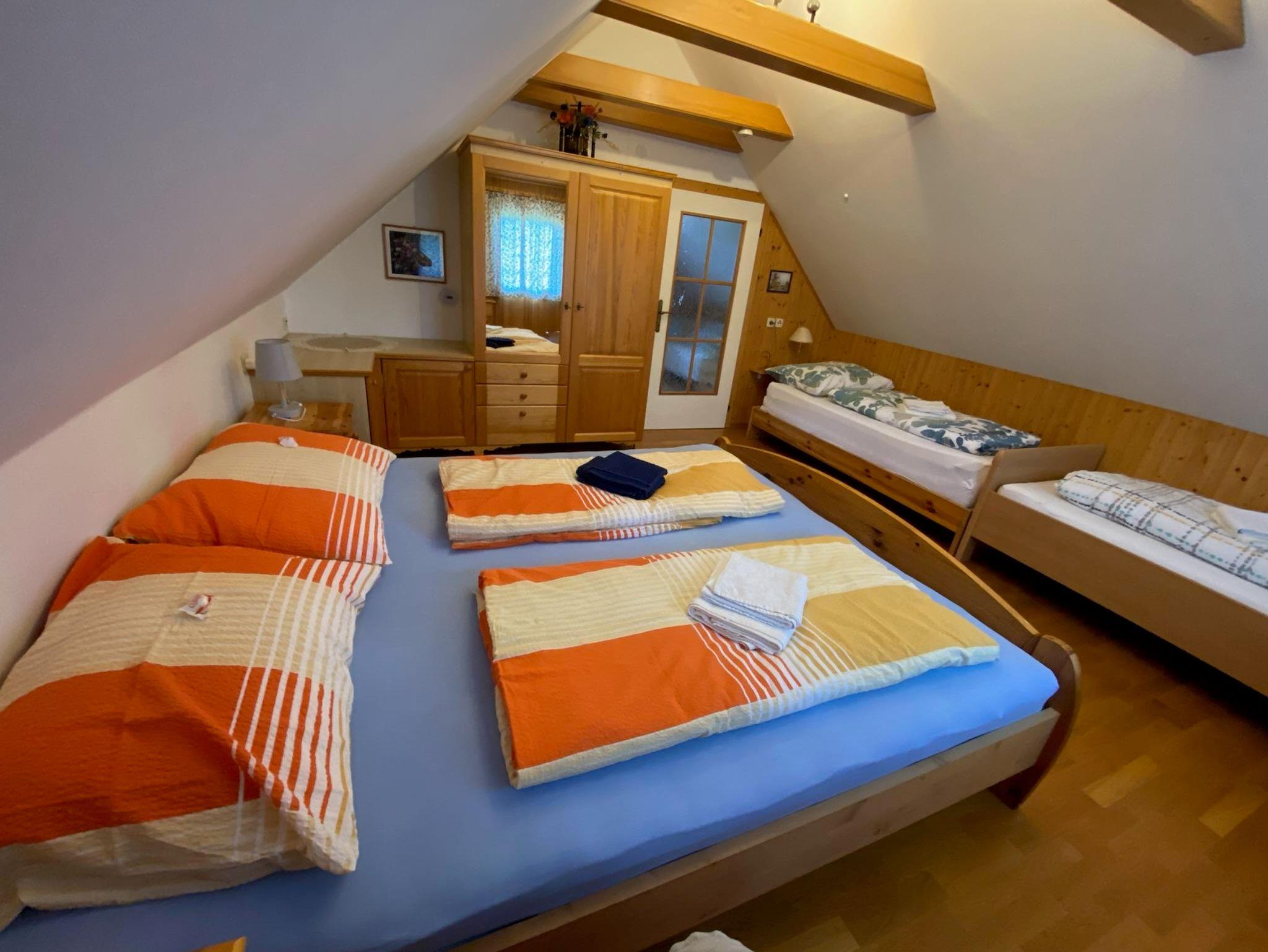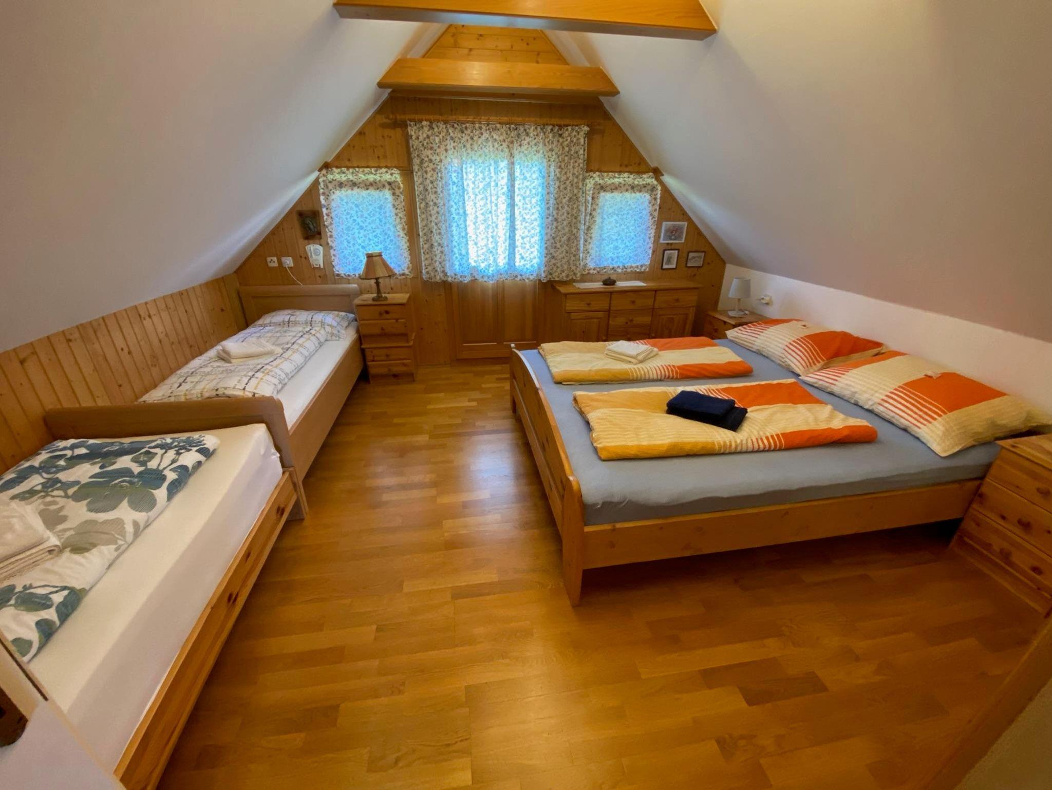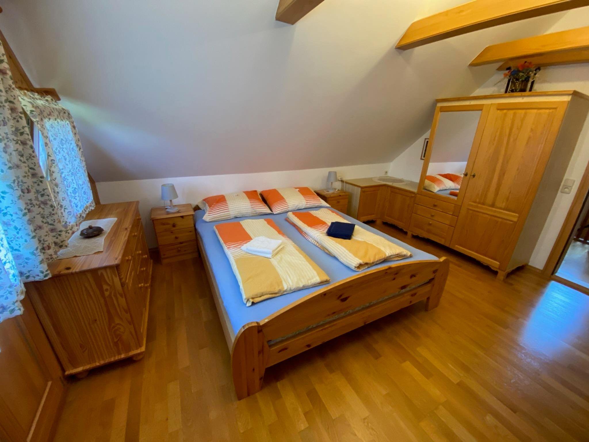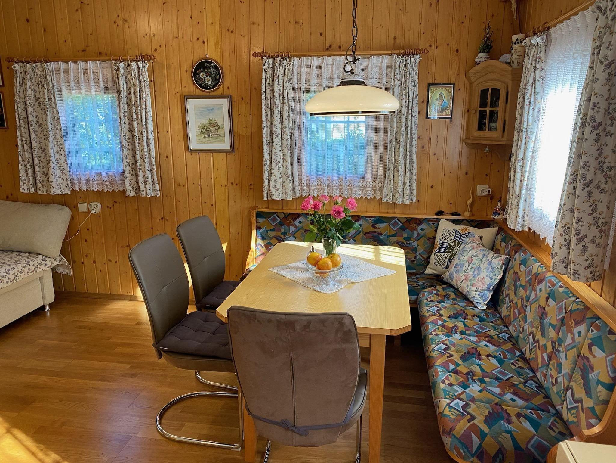 Das Haus besteht im Erdgeschoß aus 1 Vorraum, 1 Wohnküche mit Schlafplatz für 2 Personen, Bad und WC (mit Absaugung). Im Obergeschoß befindet sich 1 Vorraum und 1 Schlafraum mit 4 Betten.