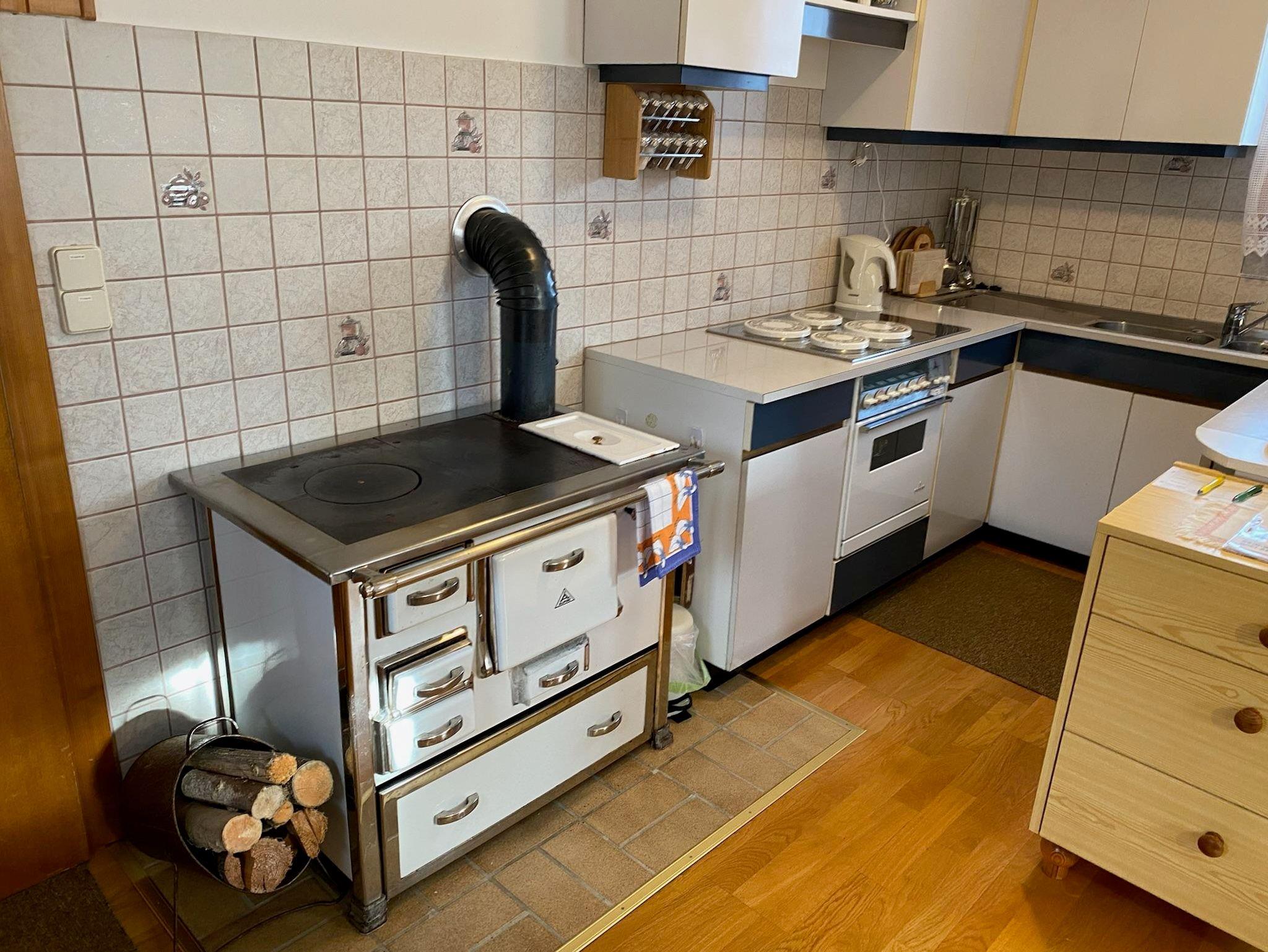 An kalten Wintertagen spendet ein Holzofen wohlige Wärme zusätzlich zur bestehenden Heizung.