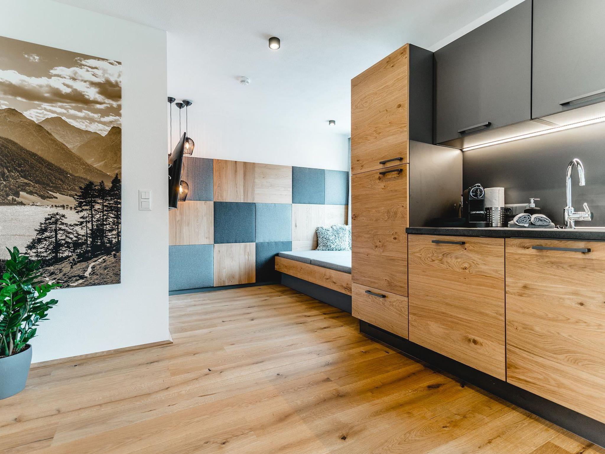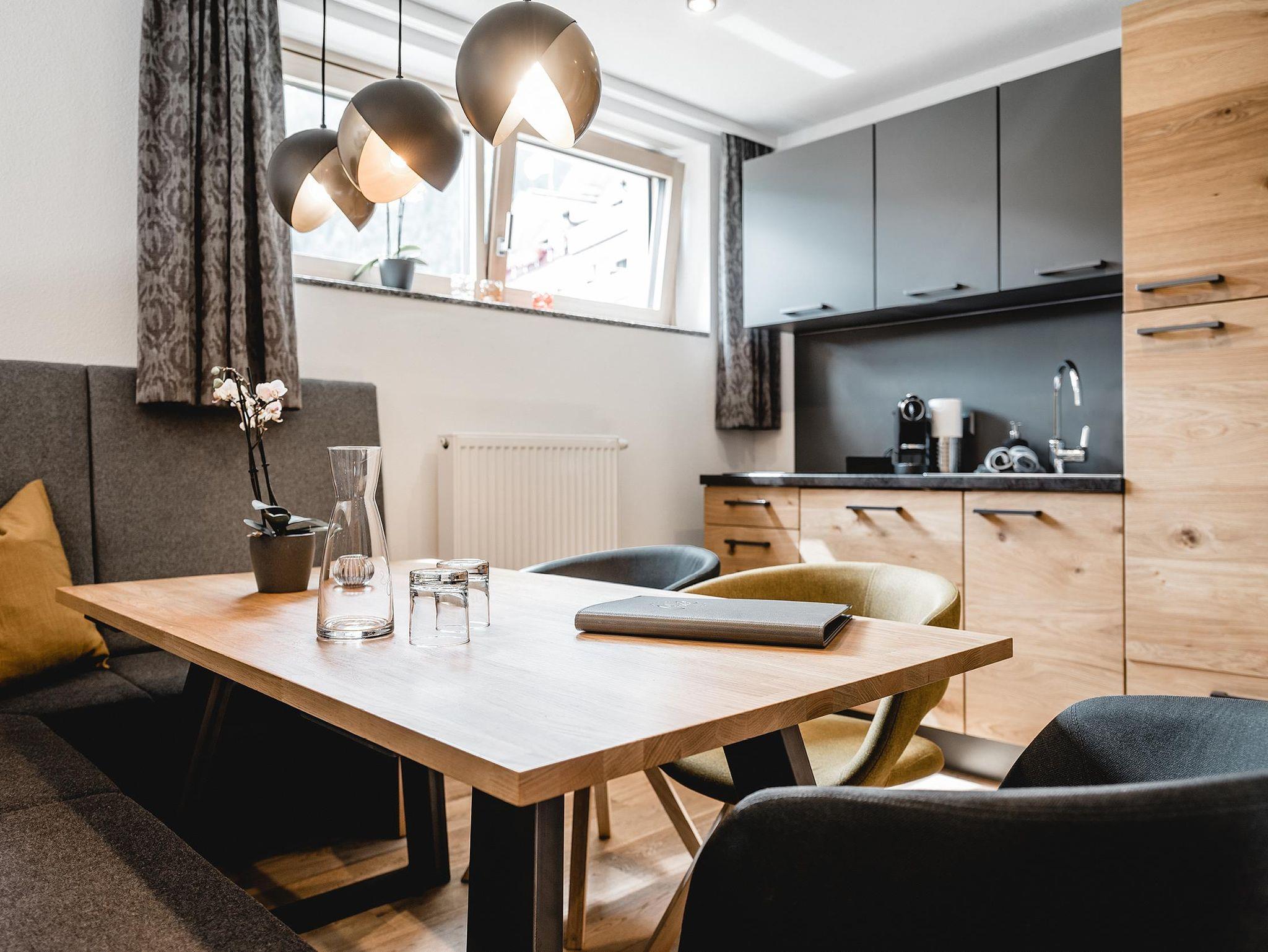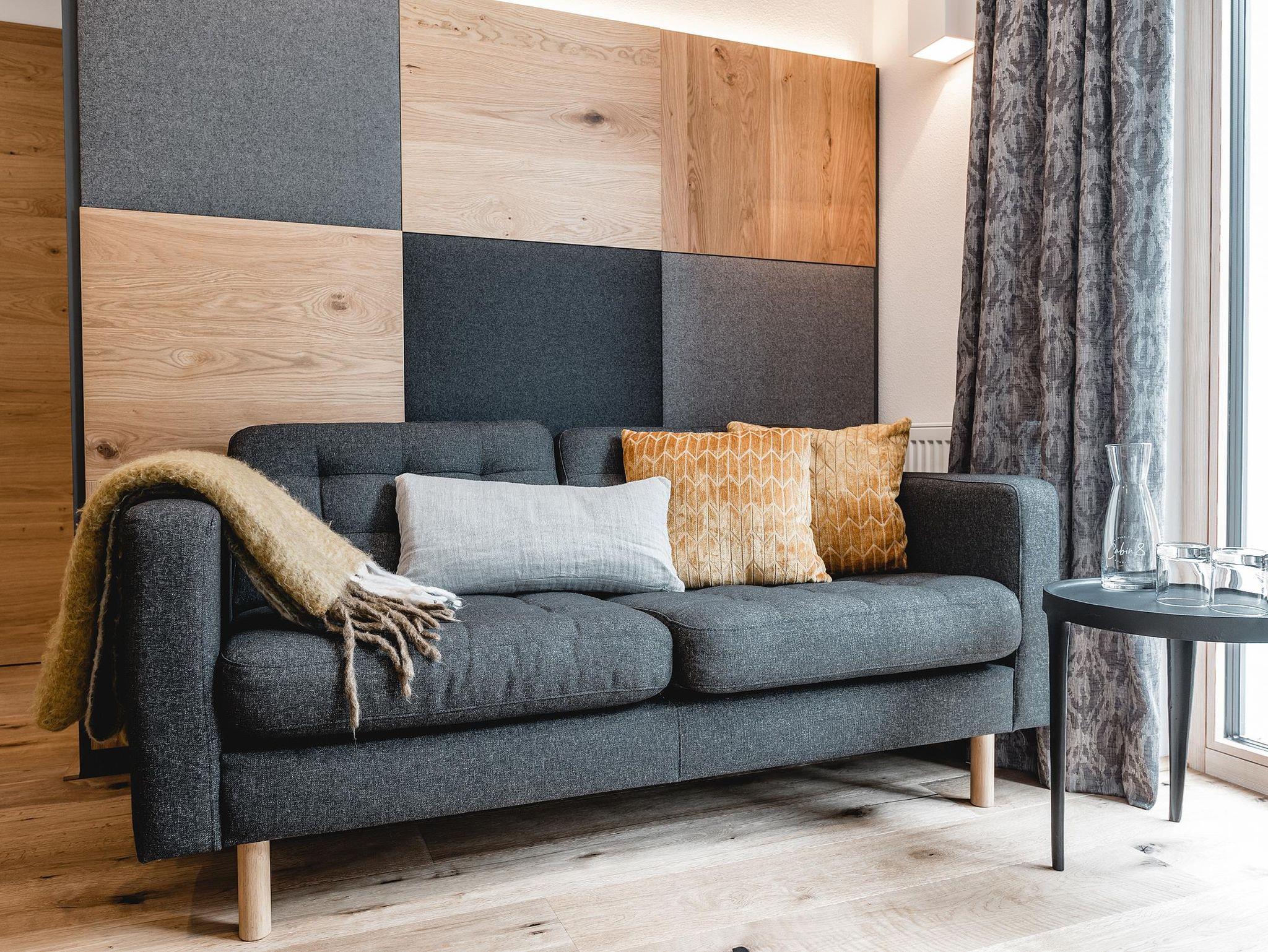 Beim Designkonzept der Apartments lag besonderes Augenmerk auf Gemütlichkeit und Wohnkomfort. Warme Farbtöne und natürliche Materialien verleihen dem Cabin8 das moderne und alpine Flair. Wir freuen uns Sie bei uns begrüßen zu dürfen!