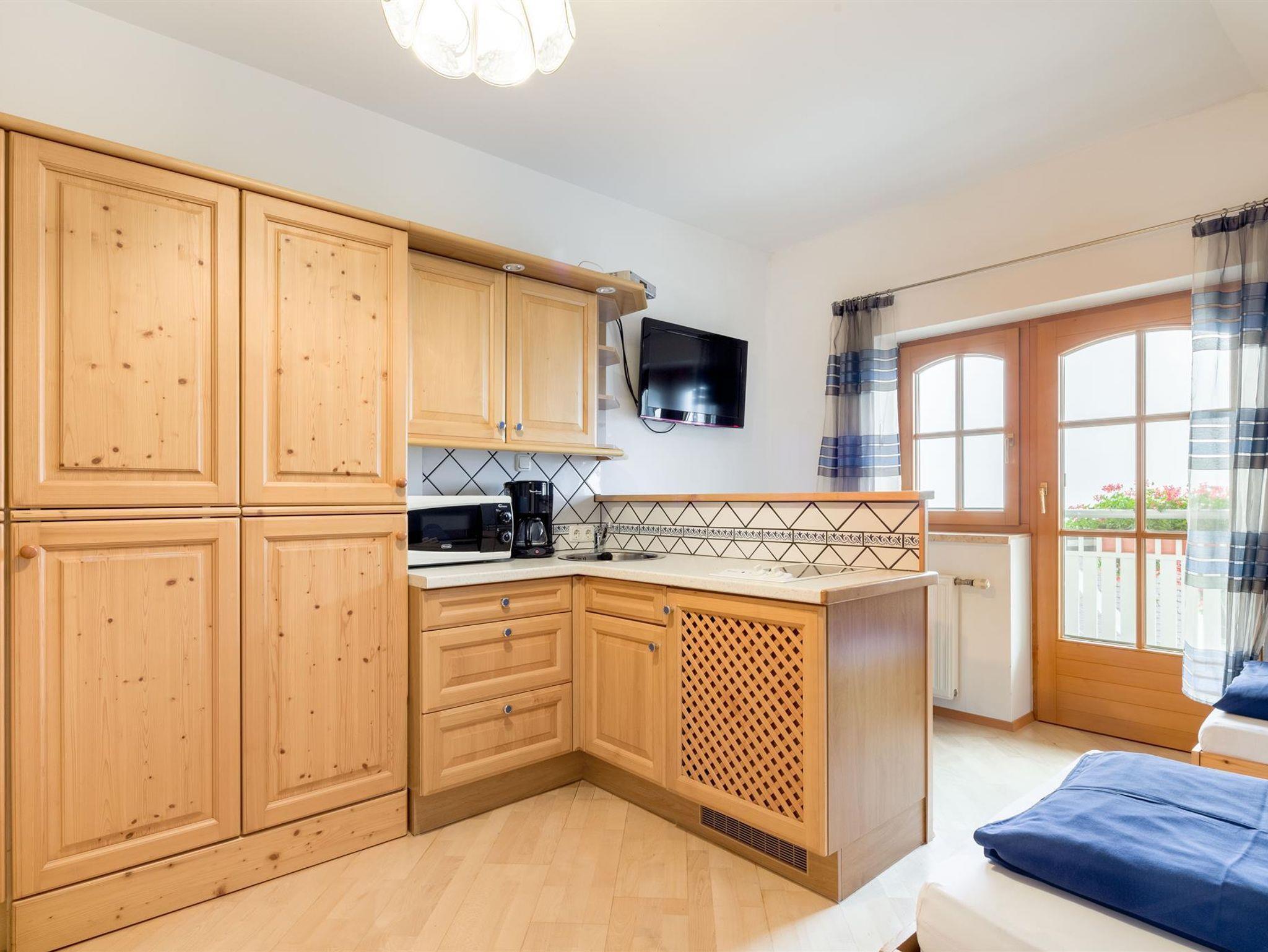 Dieses Studio ist ausgestattet mit zwei Einzelbetten, einem Tisch mit Stühlen, Küche mit Kühlschrank und Gefrierfach, Kochplatten, Mikrowelle mit Grill, Kaffeemaschine, Wasserkocher, Koch- und Tafelgeschirr, Fön, Safe, Hand- und Badetücher, Sat-TV, gratis W-Lan.Dusche und WC getrennt. Überdachter Balkon mit Gartenmöbel und Sonnenschirm.