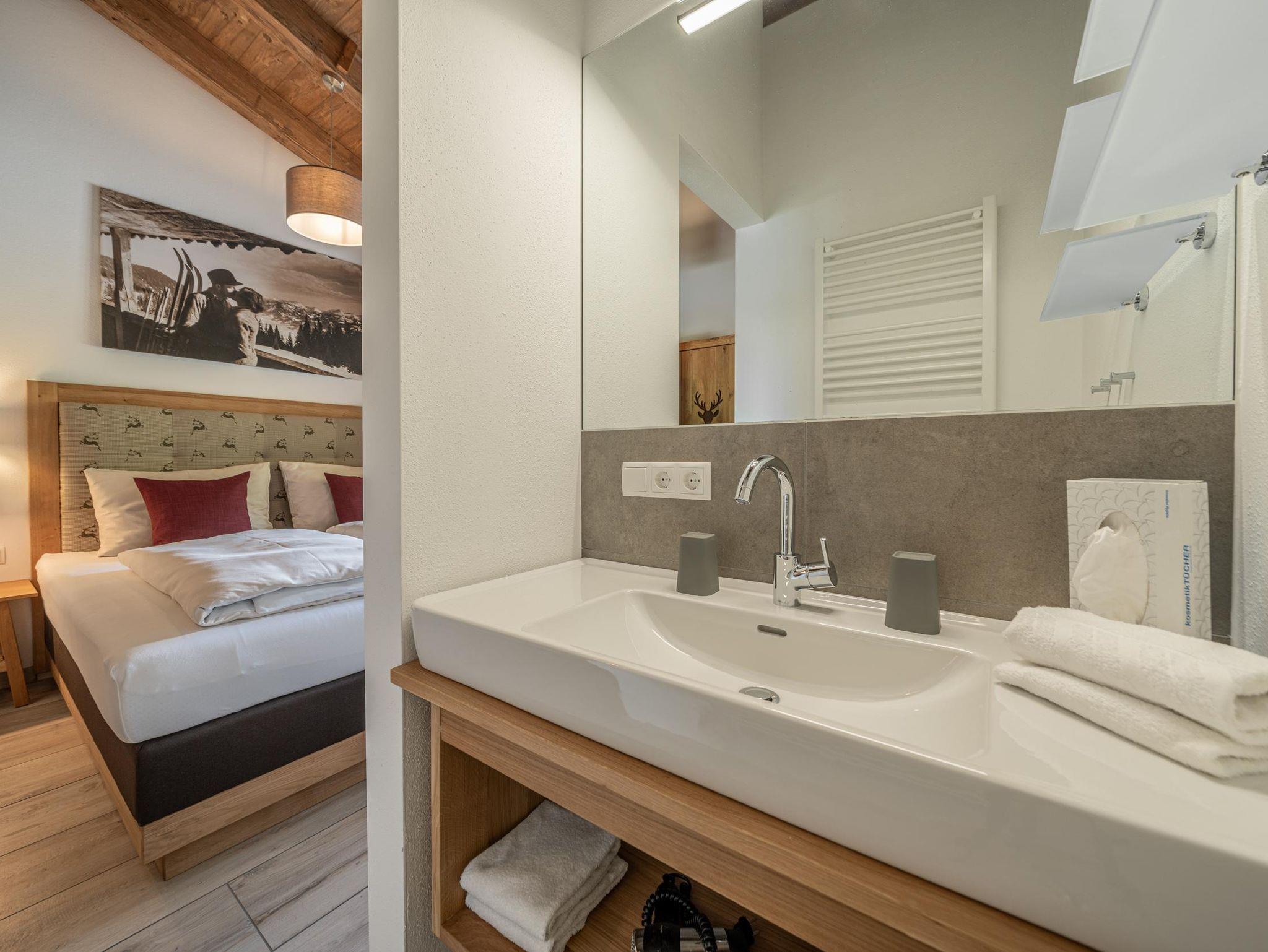 Wer es traditionell ländlich liebt, bucht im Stubenhaus: Authentische Doppelzimmer oder Apartments für 2-5 Personen mit neu renovierten Bädern, sehr bequemen Betten und dem Duft von Fichtenholz.