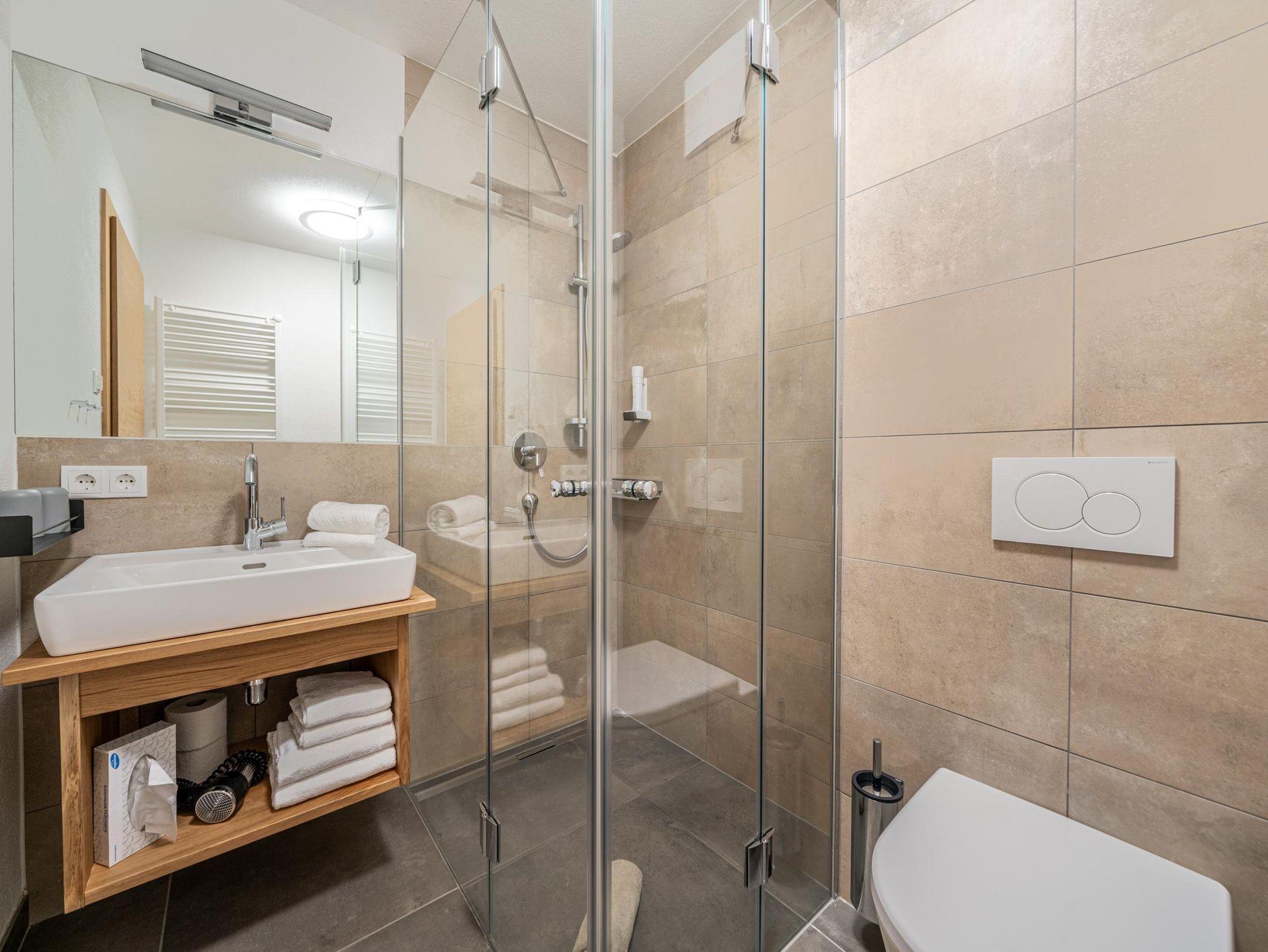Wer es traditionell ländlich liebt, bucht im Stubenhaus: Authentische Doppelzimmer oder Apartments für 2-5 Personen mit neu renovierten Bädern, sehr bequemen Betten und dem Duft von Fichtenholz.