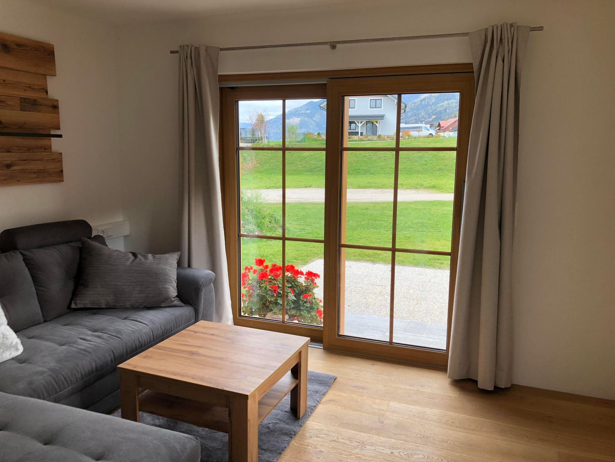 • Helles Wohnzimmer mit direktem Zugang zur Terrasse