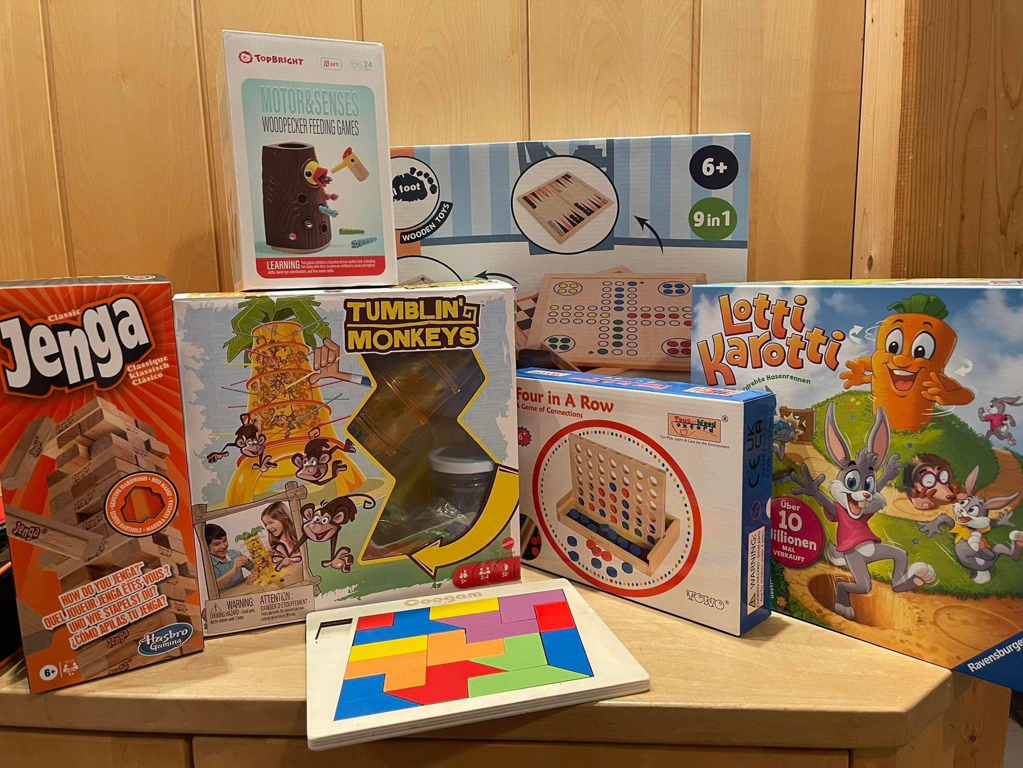 Gesellschaftsspiele vorhanden – u. a. Lotti Karotti, Vier Gewinnt, UNO, Jenga u. v. m.