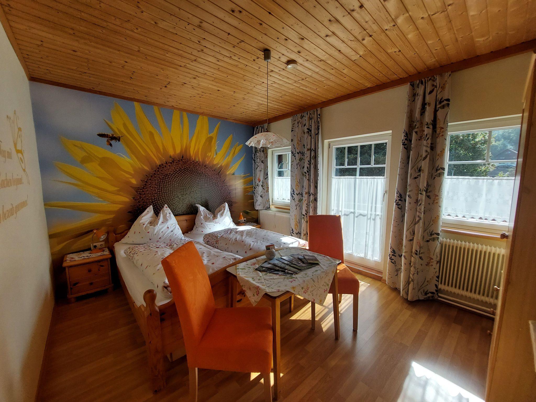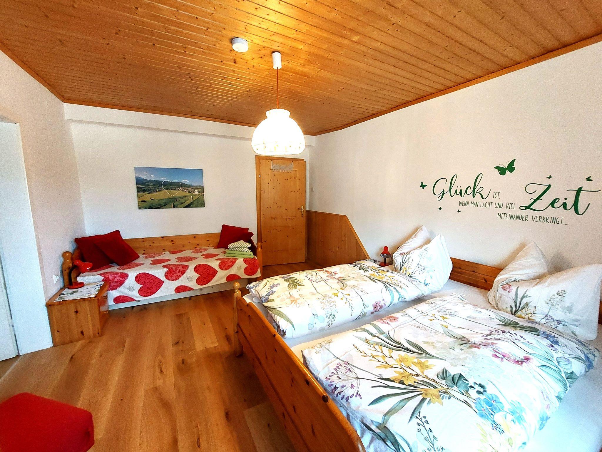 Wenn Sie gerne kochen, wird dies in unseren komplett ausgestatteten Wohnküchen zum Kinderspiel. Von Elektroherd über Mikrowelle bis zur Kaffeemaschine ist alles vorhanden, um ein leckeres Frühstück, Mittag- oder Abendessen zu servieren. Im Parterre befindet sich die erste große Wohnküche, welche ideal für viele Personen ist: zwei große Sitzgruppen (Platz für mehrals 10 Personen)Vorteil der Küche - Ihre Kinder können gleich in den Garten hinaus - gemütlich zusammensitzen, mit Ihrer Familie oder Ihren Freunden - in der großen Wohnküche ist genug Platz. Und träumen werden Sie in 5 glücklichen großen Schlafzimmern, drei davon mit Balkon mit herrlichem Blick in unserem großen Garten.o Glückszimmer im 1. Stock (Doppelbett und Zusatzbett) Glückszimmer im 1. Stock (Doppelbett und Zusatzbett) mit Verbindungstür zum 1. Glückszimmero Löwenzahnzimmer im 2. Stock (Doppelbett, Balkon) Dorfblickzimmer im 2. Stock (Dopppelbett, Zusatzbett, Waschbecken und Balkon) Sonnenblumenzimmer im 2. Stock (Doppelbett, Waschbecken und Balkon)