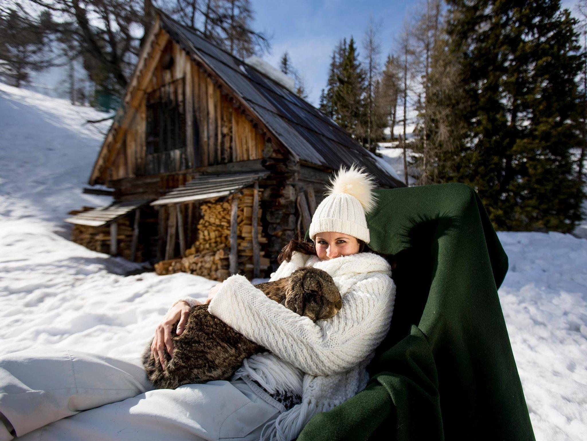 Im Sommer ist die Hütte umgeben von einem umzäunten Garten mit einem Holzbrunnen. Unseren Gästen stehen zusätzlich eine Sitzgarnitur, Liegestühle und ein Kugelgrill (Grillkohle ist bitte zum Mitnehmen) zur freien Verfügung bereit.