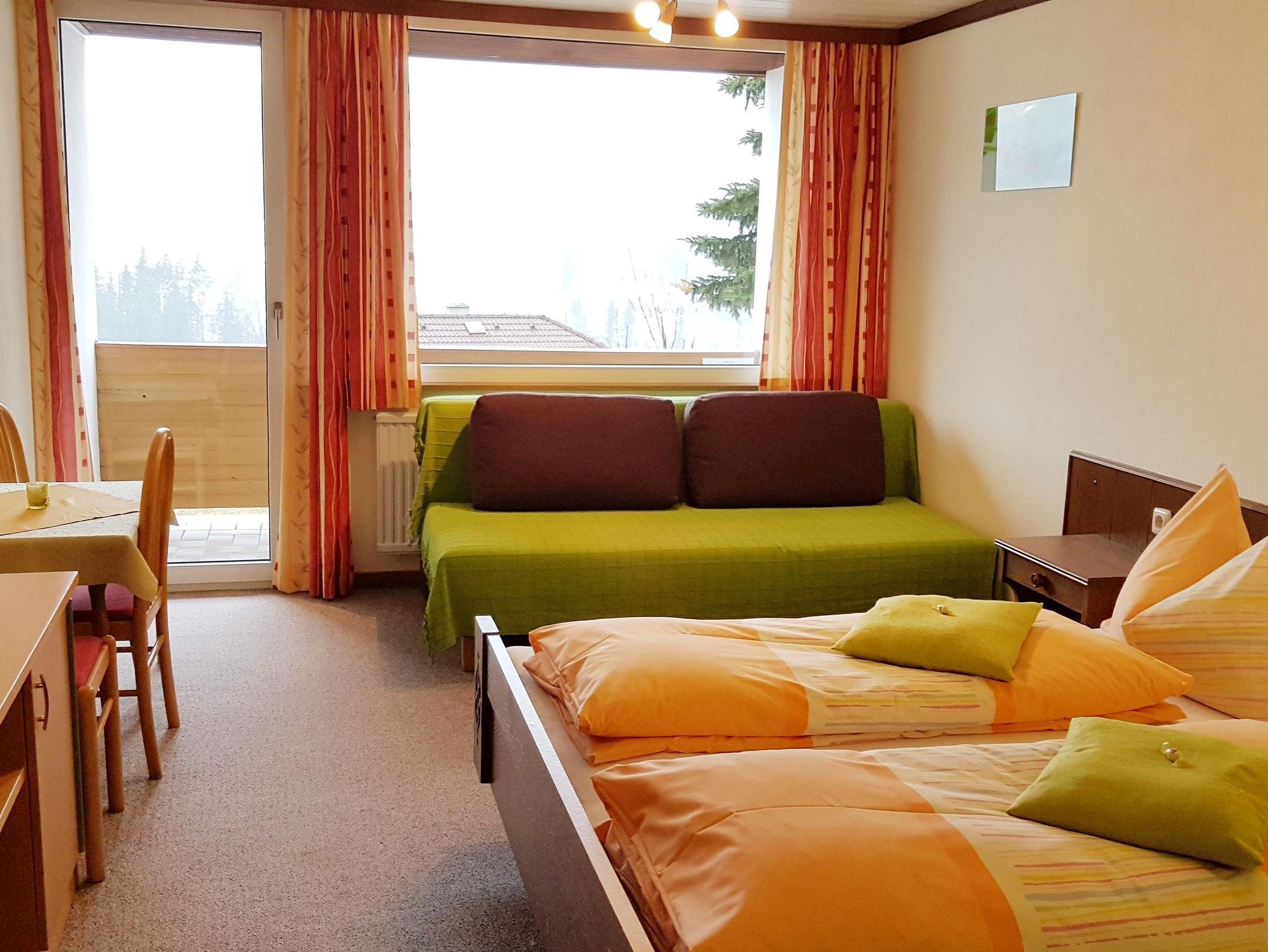 Gemütliches Apartement für 1 bis 5 Personen (70 m²), 1 Küche, 1 Wohn-/Schlafzimmer, 1 Schlafzimmer m. Doppelbett u. Couch, Sat-TV, Safe, 2 Bäder m. Dusche und Badewanne, 2 getrennte WC, Südbalkon, mit toller Aussicht auf die Pyhrn-Priel Region