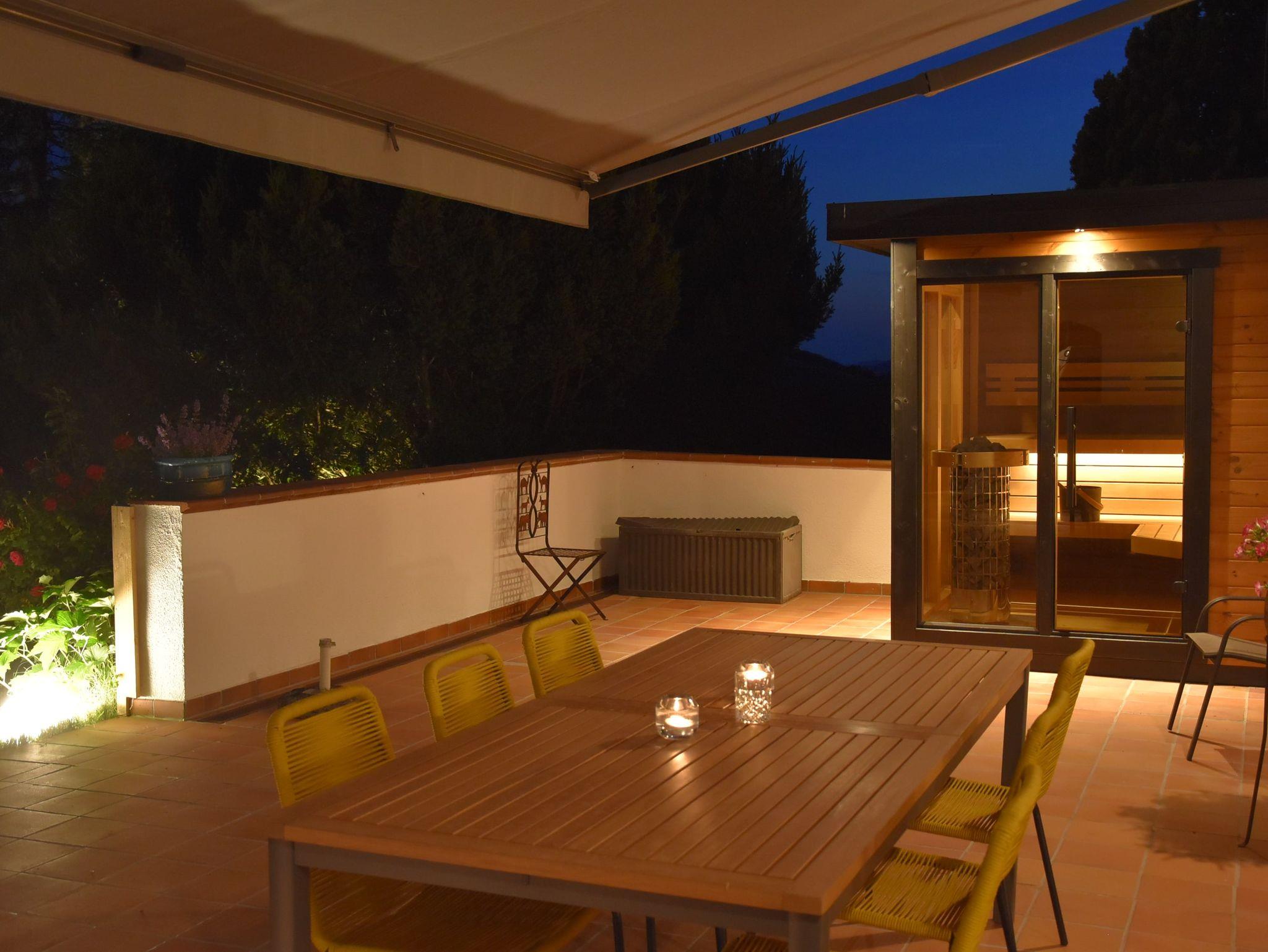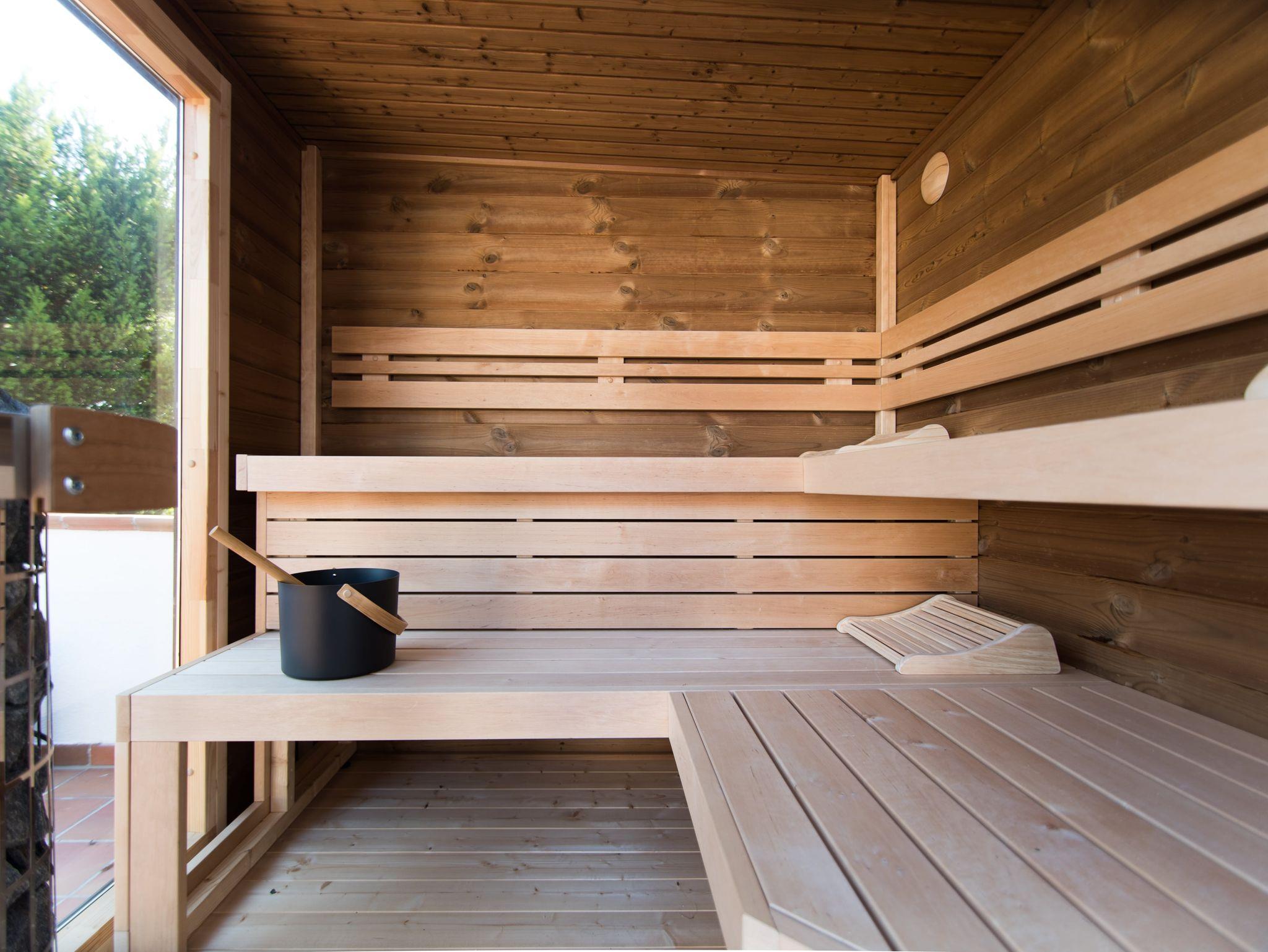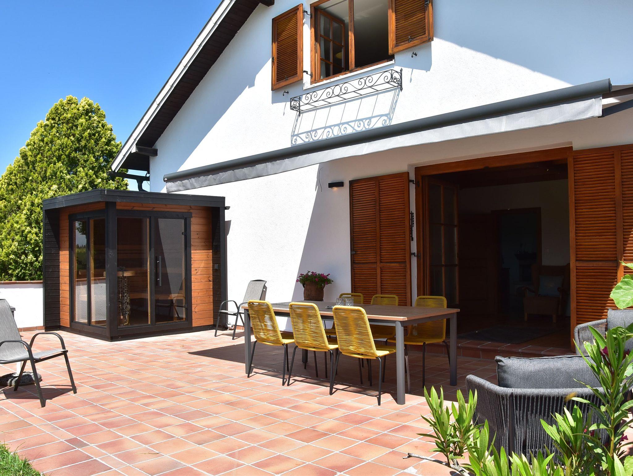 Eindruck hinterlässt auch der Außenbereich des Sandlehen mit seiner großen ebenen Gartenanlage, inklusive Swimming-Pool, Terrasse mit Outdoor-Sauna, vielen Relax- und Ruhebereichen sowie einer großen Spielwiese für Kinder und Erwachsene.