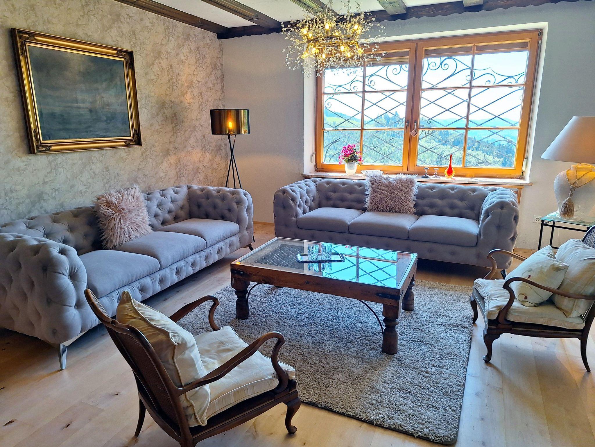 Direkt unterhalb des sanften Gipfels des Sonntagbergs, umrundet von den hauseigenen Wiesen und Wäldern, liegt das ehemalige Forsthaus Sandlehen auf imposantem Platz.