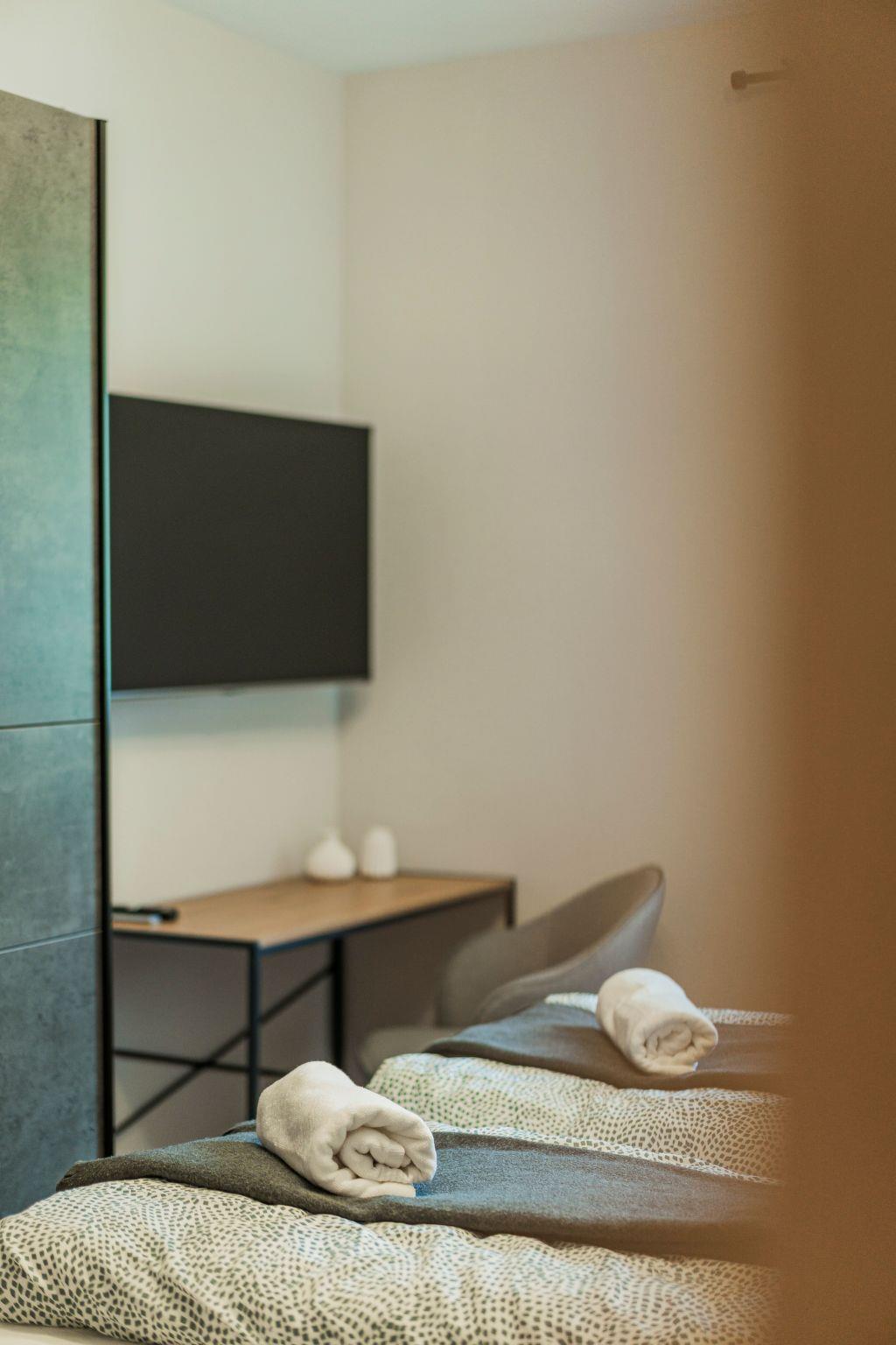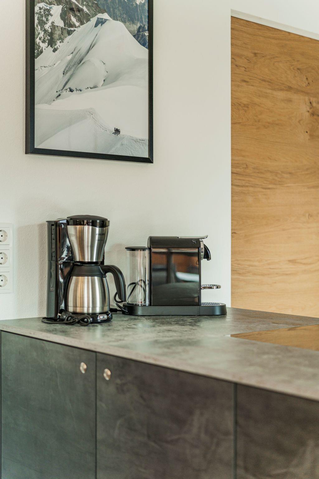 Inside the flat, underfloor heating in certain areas provides pleasant warmth and a cosy feeling. For coffee lovers, a capsule coffee machine is available to start the morning with an aromatic cup of coffee. A fully equipped kitchen with a dishwasher and kettle makes meal preparation easy, so you and your loved ones can enjoy meals together without sacrificing comfort.