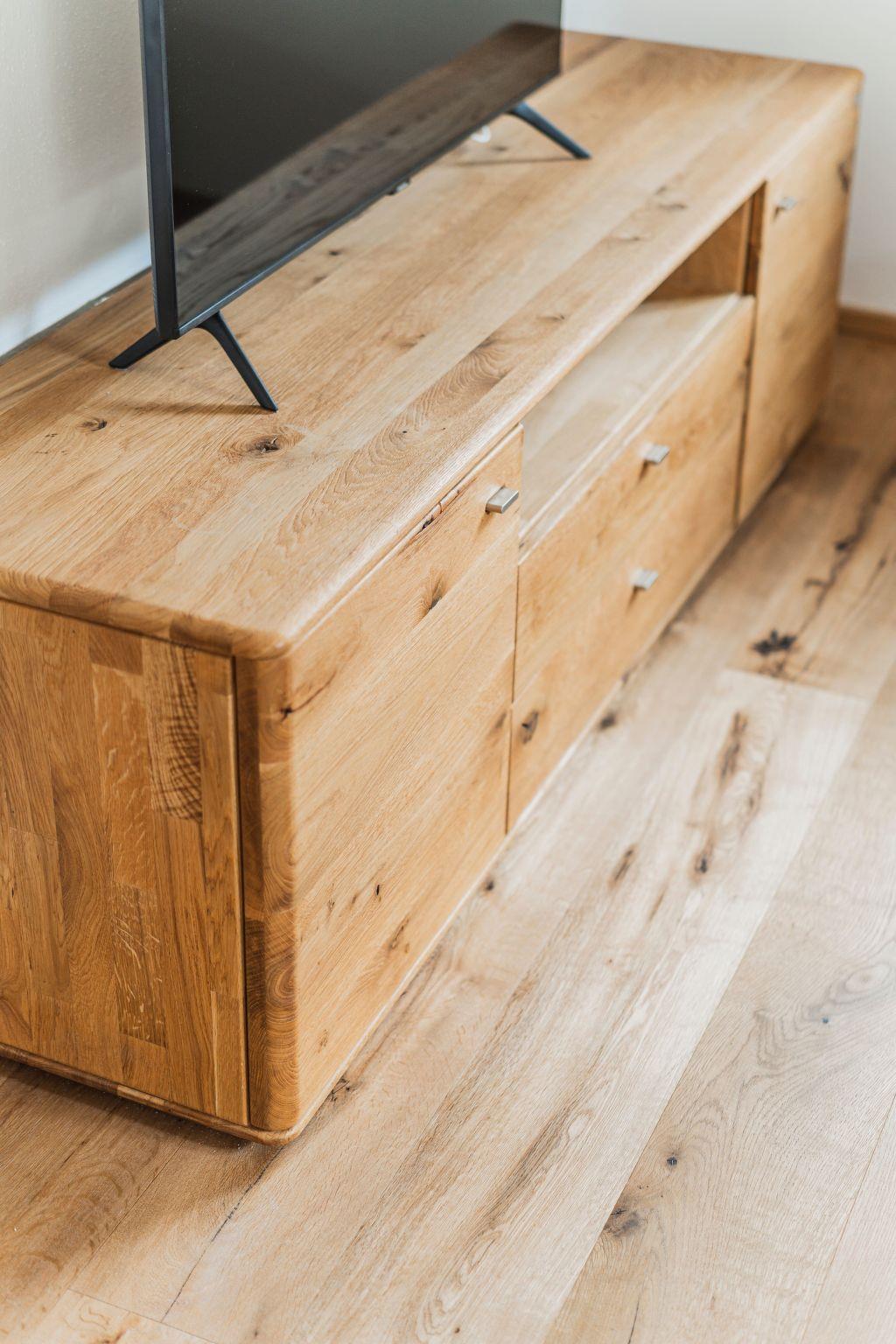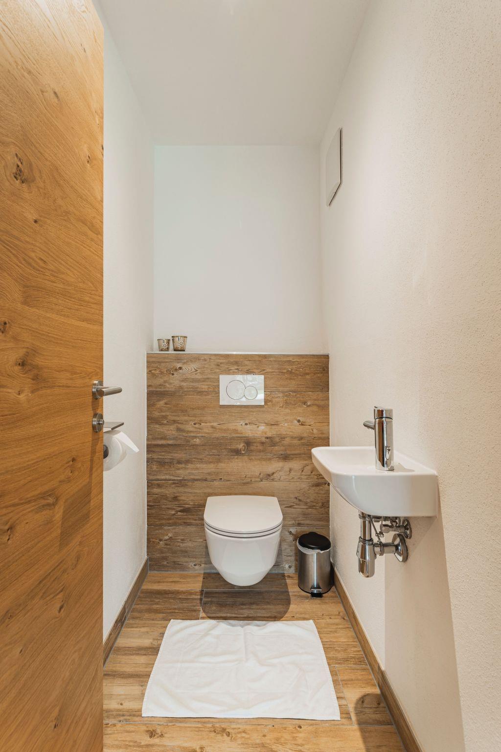 Flat Top 1a is located on the garden level of a new and modern apartment block. It comprises a large living room with kitchen, dining area, living area with satellite TV and a full-size sofa bed. The bedroom is furnished with a box-spring bed for two people. The shower bathroom is directly accessible from the bedroom. There is also a second WC and a cloakroom in the flat.