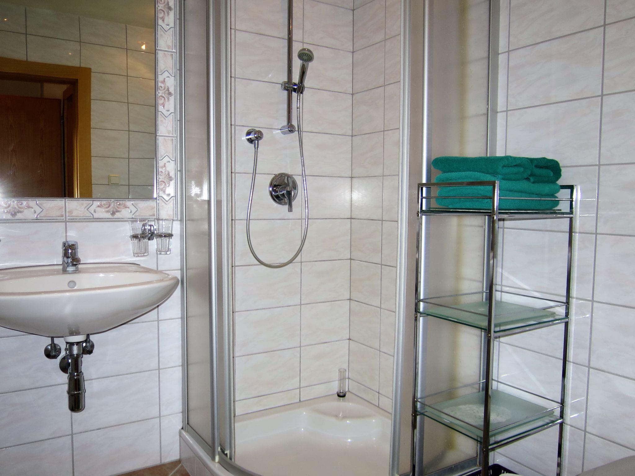 "Anemone", 4-room apartment 100 m2 on 1st floor. Practical furnishings: living/dining room with dining table, cable TV, radio and tiled stove. Exit to the balcony. 1 room with 1 double sofabed and 1 double bed. Exit to the balcony. 1 room with 1 double bed. Exit to the balcony. 1 room with 1 double bed. Kitchen (oven, dishwasher, 4 ceramic glass hob hotplates, electric coffee machine). 2 showers/WC, sep. WC. Oil heating. Balcony, south facing position. Balcony furniture. Facilities: children's high chair, baby cot for up to 2 year olds. Internet (WiFi, free). Please note: smoke alarm. Attention: no lockable storage facilities for bicycles.