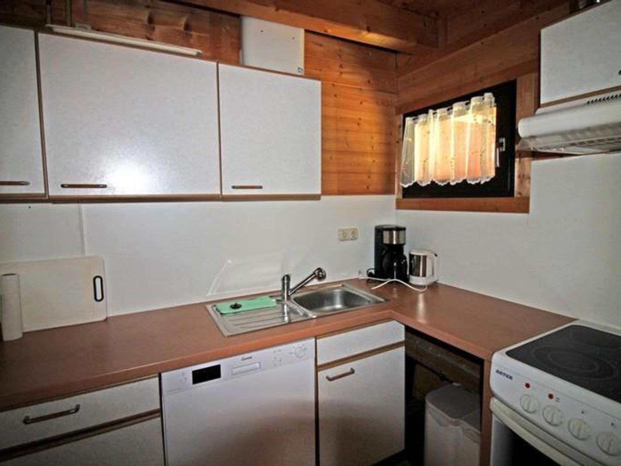 Die Ausstattung beinhaltet eine Wohnküche mit Küchenzeile, Mikrowelle, Essbereich mit Eckbank sowie bequemer Couch, Fernseher und Holzofen für die Gemütlichkeit. Eine Kaffeemaschine, Geschirr, Töpfe, Teller und Besteck sind vorhanden.