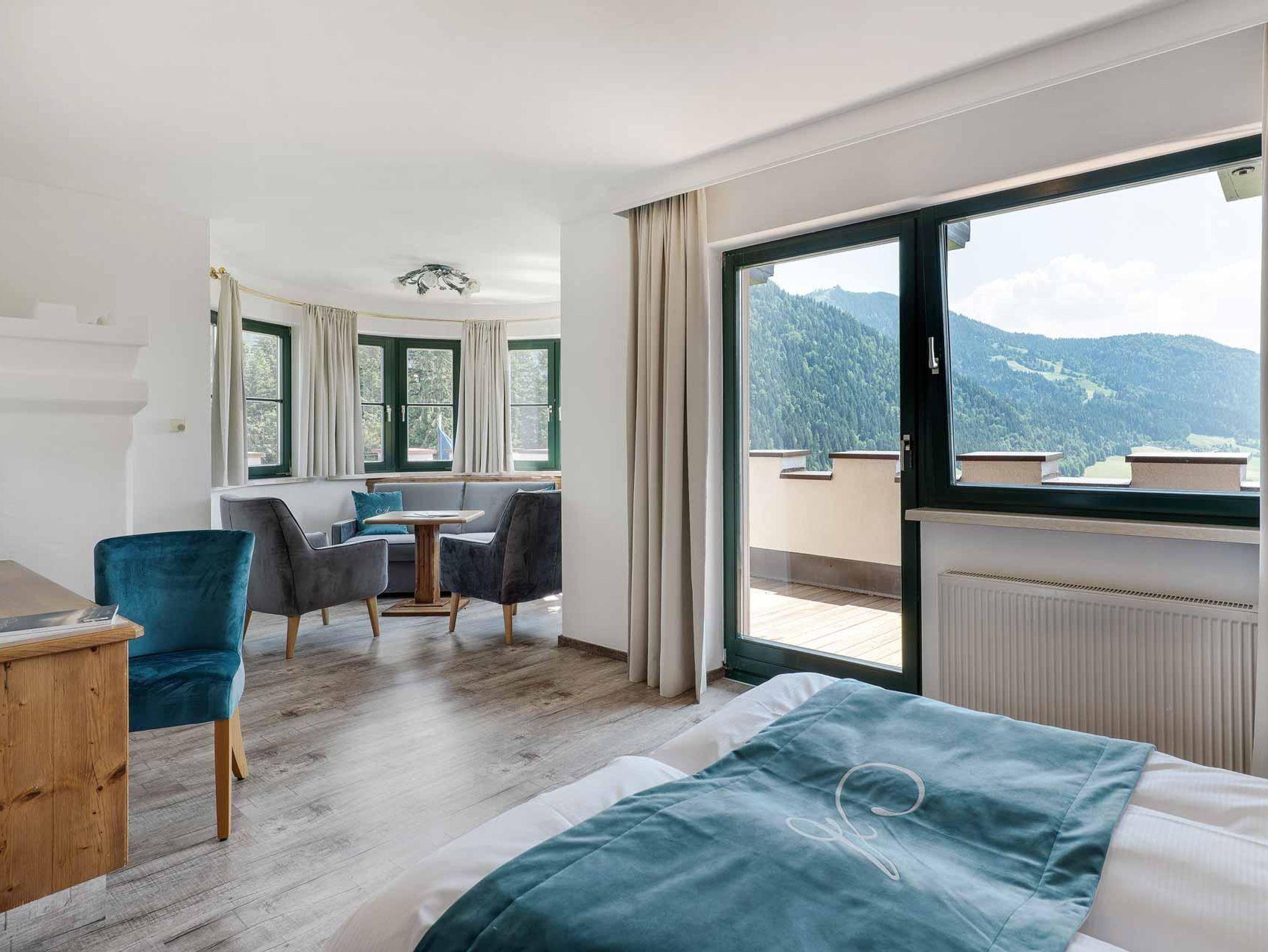 Ein gemu¨tliches Zimmer oder Suite in den Bergen beziehen unsere Ga¨ste im Hotel AlpenSchlössl. In jedem Fall kommen sie in den Genuss einer außergewo¨hnlich scho¨nen Gegend. Auch unseren herzlichen Schlo¨sslservice lassen wir ihnen immer zuteil werden, ob beim genussreichen Fru¨hstu¨ck auf der großzu¨gigen Sonnenterrasse, bei einem heiteren Gespra¨ch an der Rezeption oder bei einem edlen Tropfen an unserer Hotelbar.