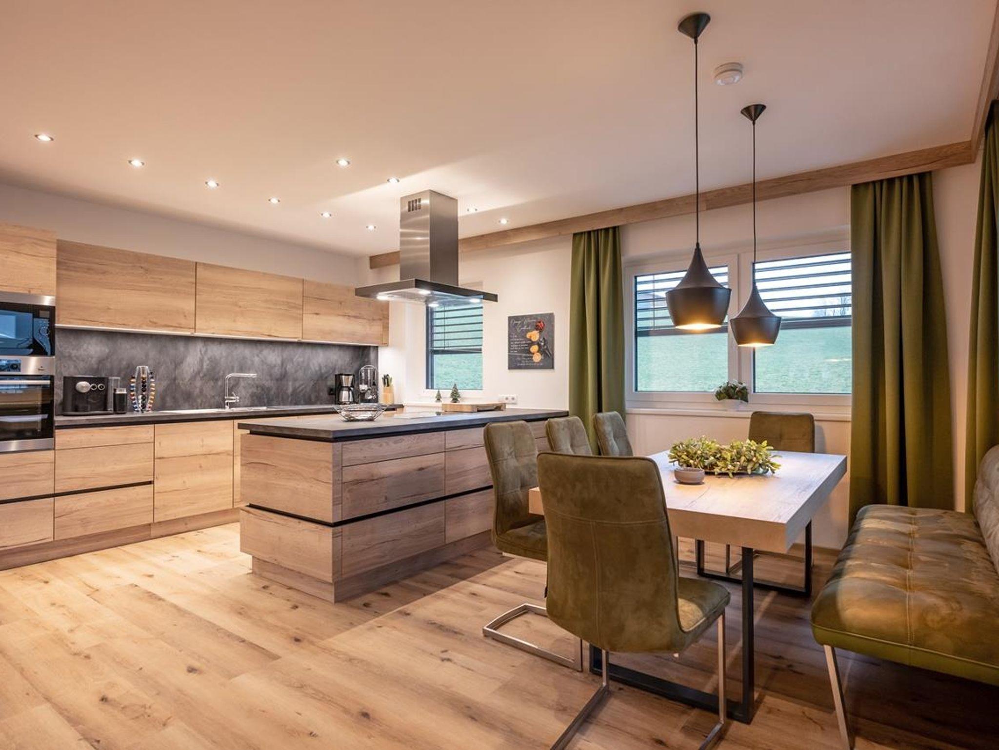 Eine top ausgestatte Küche mit Kochinsel, Geschirrspüler, Backofen mit Dampfgarer, Cerankochfeld, Gefrier- und Kühlschrank, Kaffee und Kapselmaschine, kompletter Geschirrausstattung, sowie ein großer Essbereich für bis zu 9 Personen lassen höchste Genüsse zu.