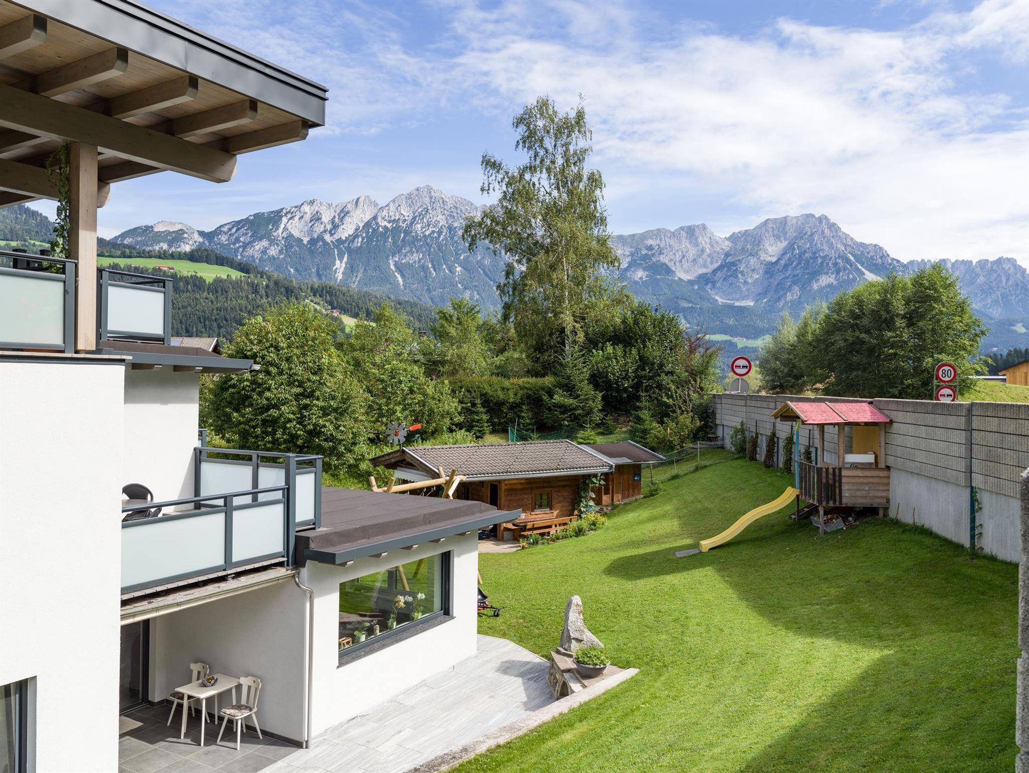 Unsere Ferienwohnung Graber ist ca 77 m² groß und verfügt über 2 Schlafzimmer mit jeweils 3 Betten. Von der gemütichen Wohnküche aus blickt man direkt auf den Wilden Kaiser. Der Balkon der von der Wohnküche aus nach draußen führt, lädt zum verweilen ein. Das Badezimmer besteht aus einer Badewanne und eine Dusche. Das separate WC finden Sie am Gang der Ferienwohnung.