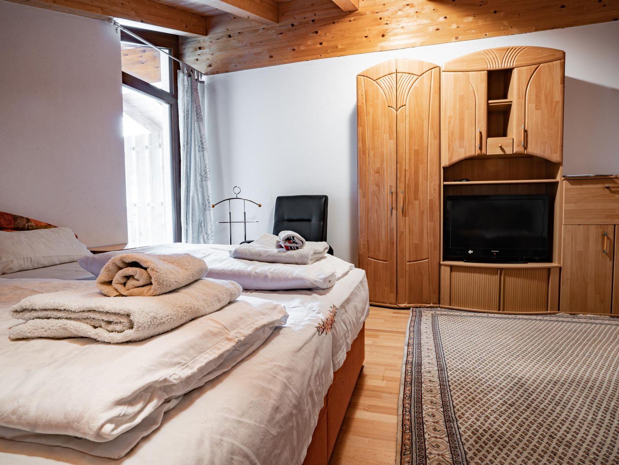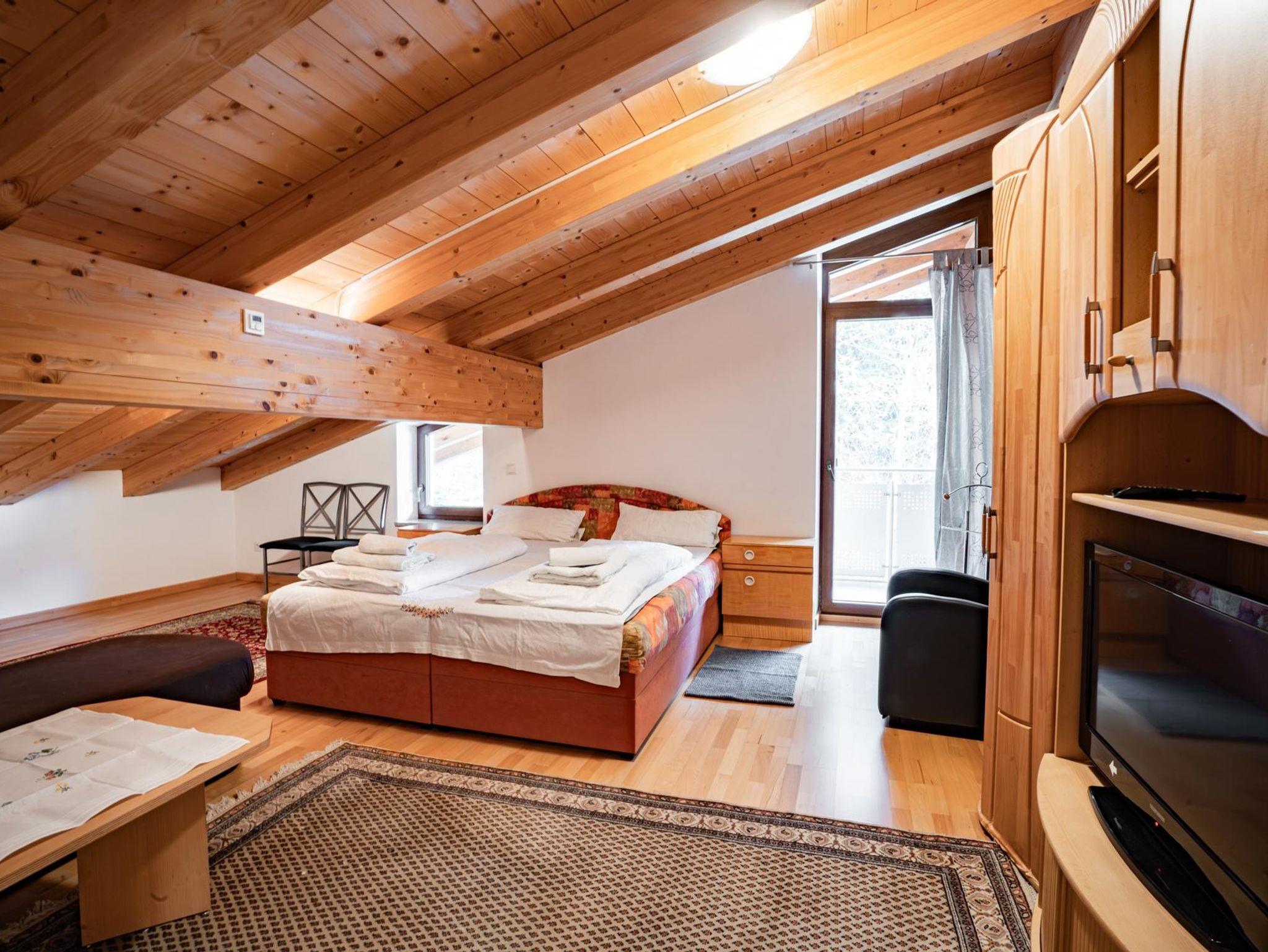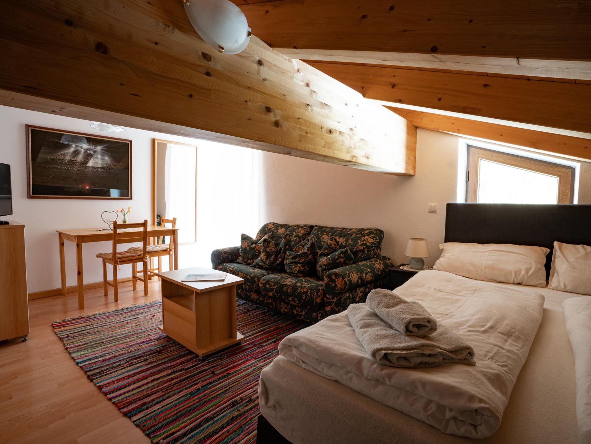 Diese 42 m² große Wohnung bietet einen kombinierten Schlaf- und Wohnraum mit einem Doppelbett sowie eine Küche, die ebenfalls ein Doppelbett beinhaltet. Die Einrichtung ist rustikal und schafft eine gemütliche Atmosphäre, die perfekt für die Erholung nach einem aktiven Tag in den Bergen ist. Die Küche ist einfach ausgestattet, bietet jedoch alles Notwendige für die Selbstversorgung. Diese Wohnung ist ideal für Gäste, die nach einem authentischen und ruhigen Alpenerlebnis suchen.