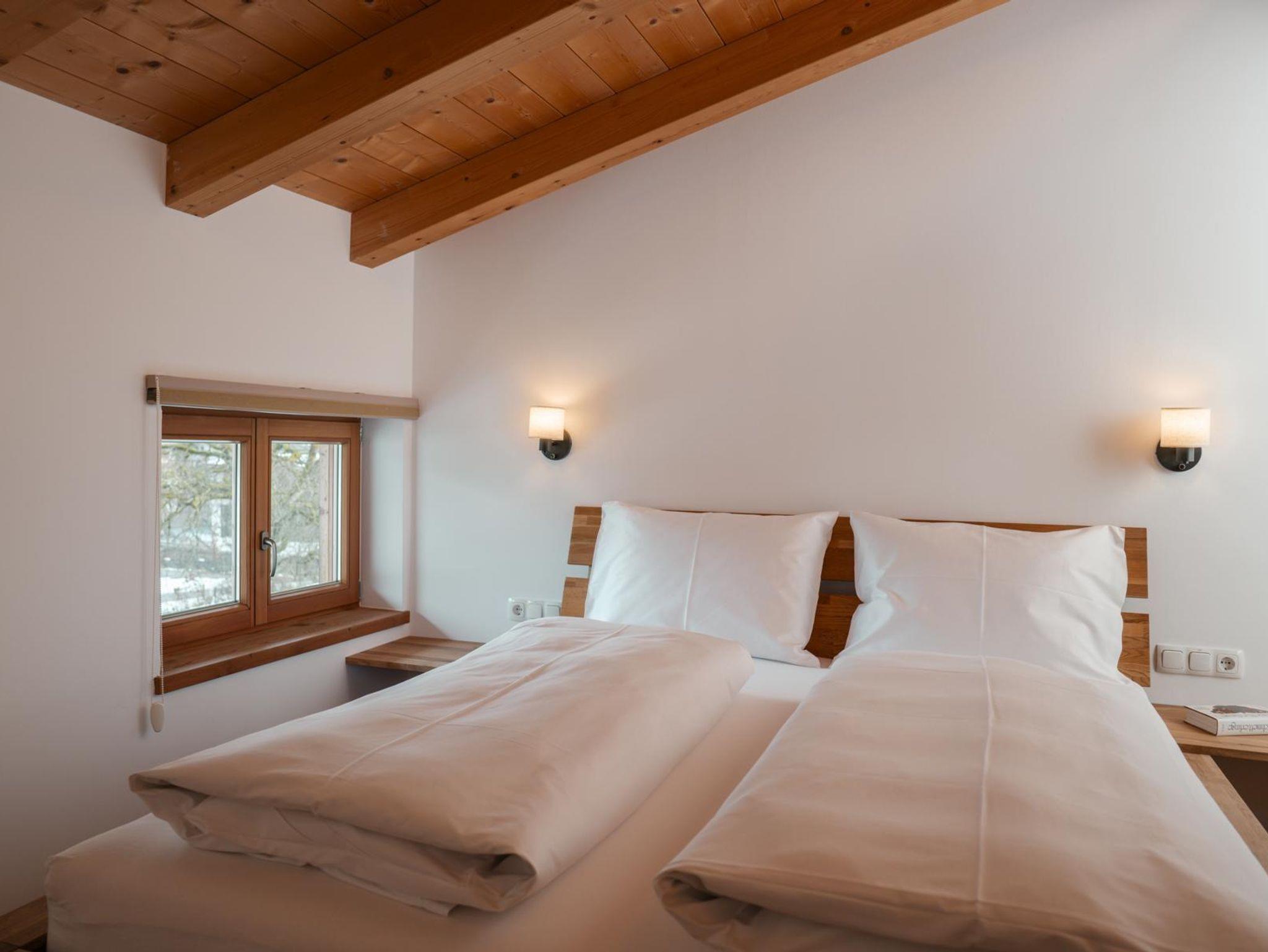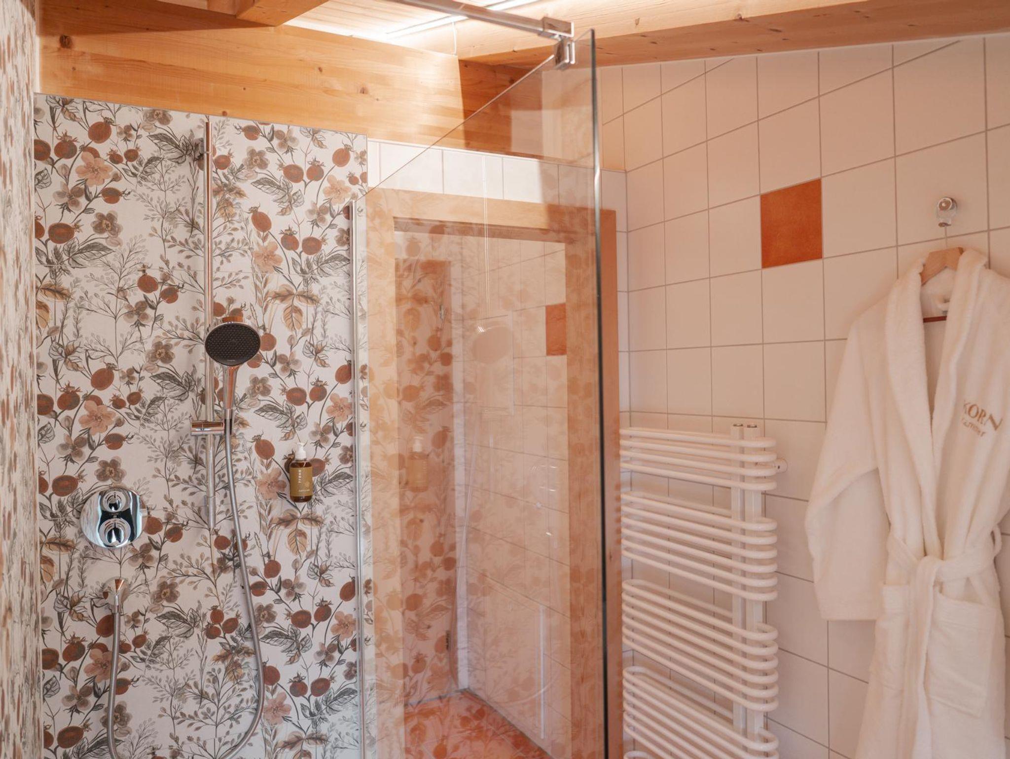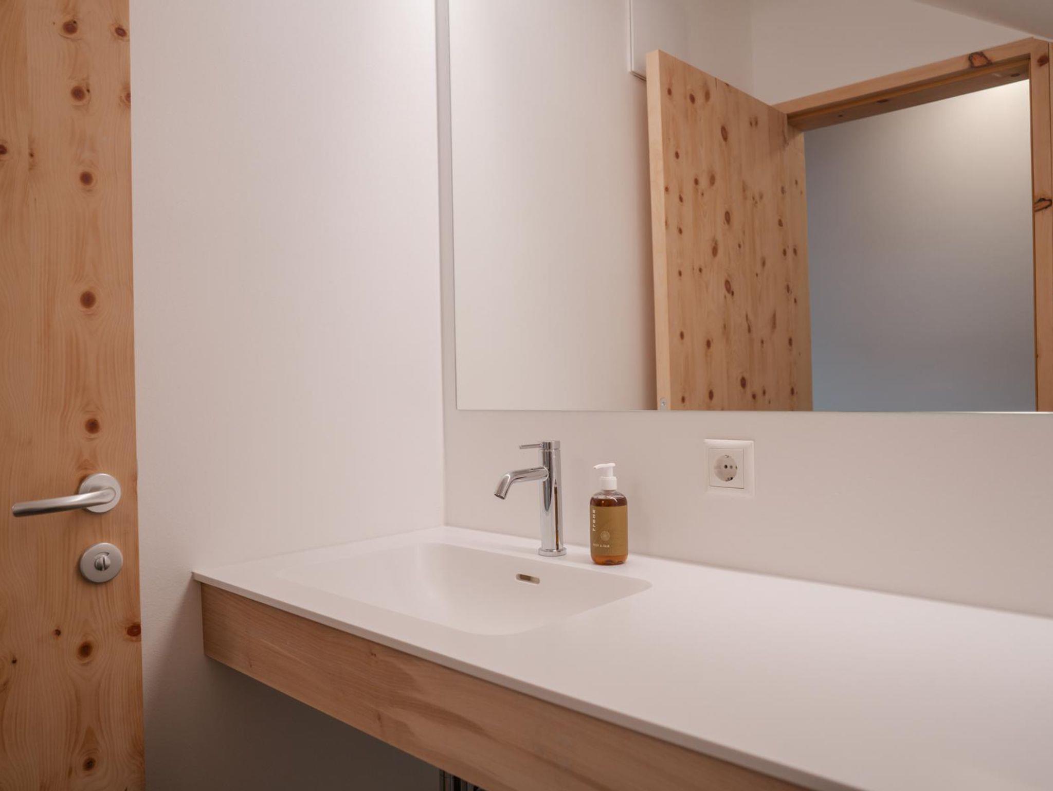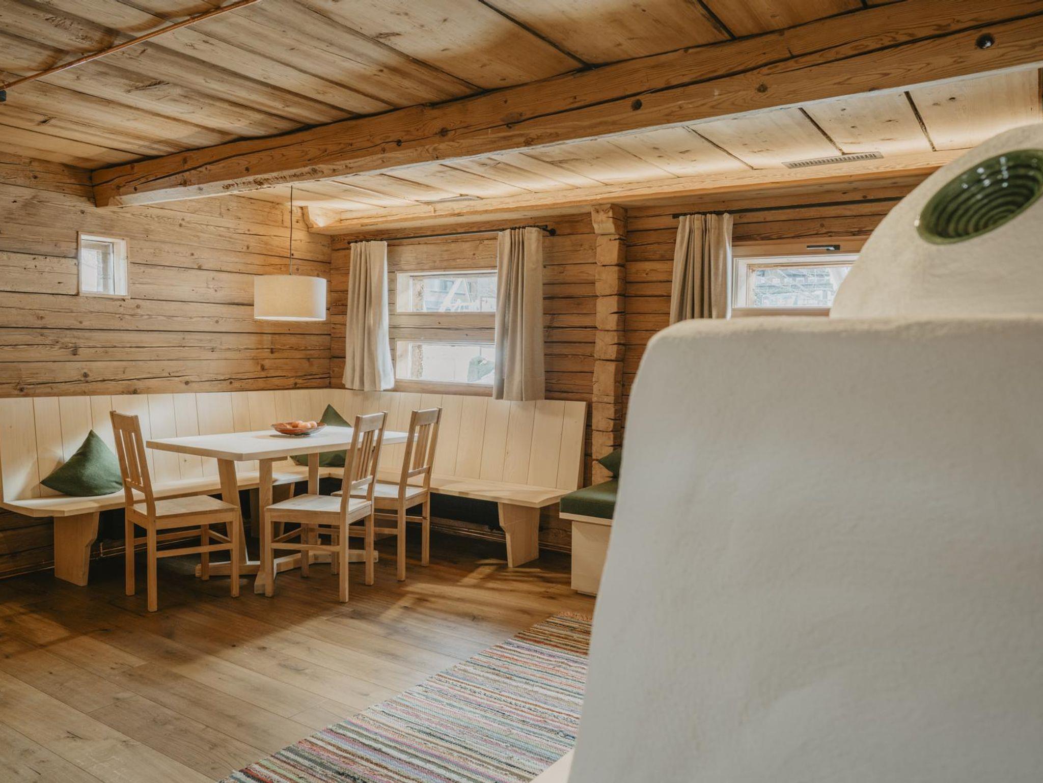 Diese Wohnung befindet sich im neu adaptierten Teil der Kornkammer mit Ausrichtung nach Westen. Sie besticht durch einen traumhaften Blick auf den Sonnenuntergang direkt hinter dem Haus. Im Sichtfeld liegen drei Pferdeweiden, und die Skipiste beginnt unmittelbar vor der Tür. Trotz der Nähe zur Piste bietet die Wohnung eine geschützte, versteckte Lage – ein wahres Unikat. Auf zwei Ebenen verteilt, verbindet die Wohnung modernen, schlichten Stil mit hochwertigem Zirbenholz.