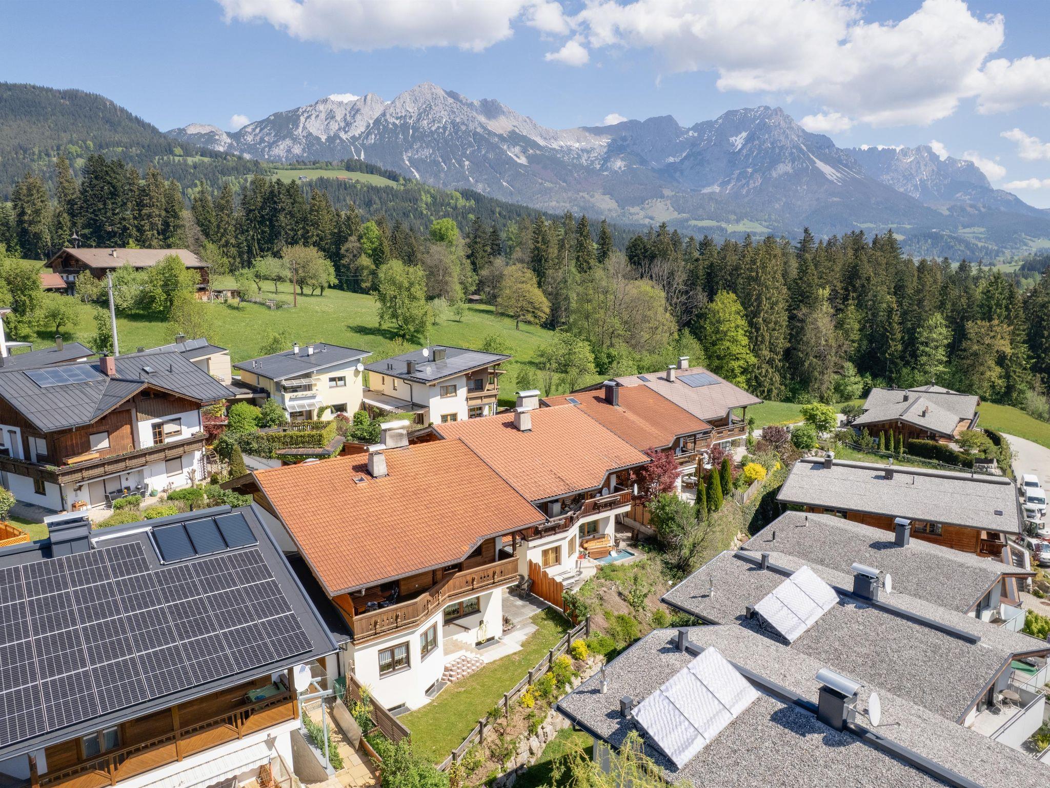 Genießen Sie 140?m² Wohnfläche mit 3 Doppelzimmern (eines mit Kinderbett) – ideal für bis zu 6 Personen. Im Parterre: Küche, Wohnzimmer, separates WC. Im Keller: Skischuhtrockner, Waschraum mit Waschmaschine. Die Region Wilder Kaiser bietet zahlreiche Freizeit- und Erholungsmöglichkeiten.