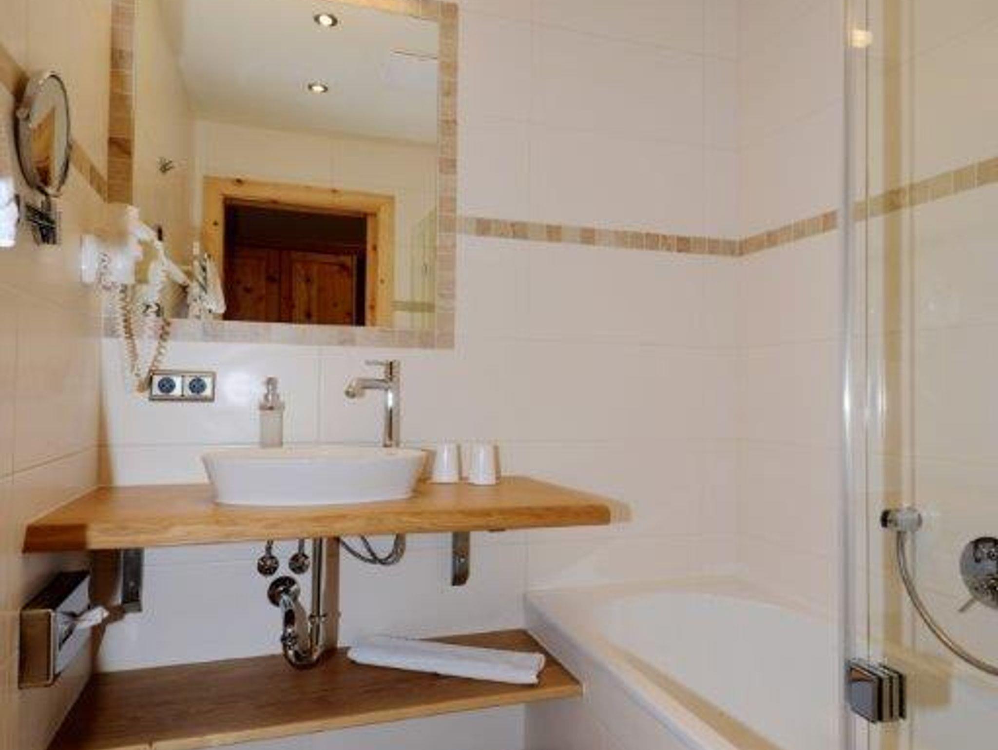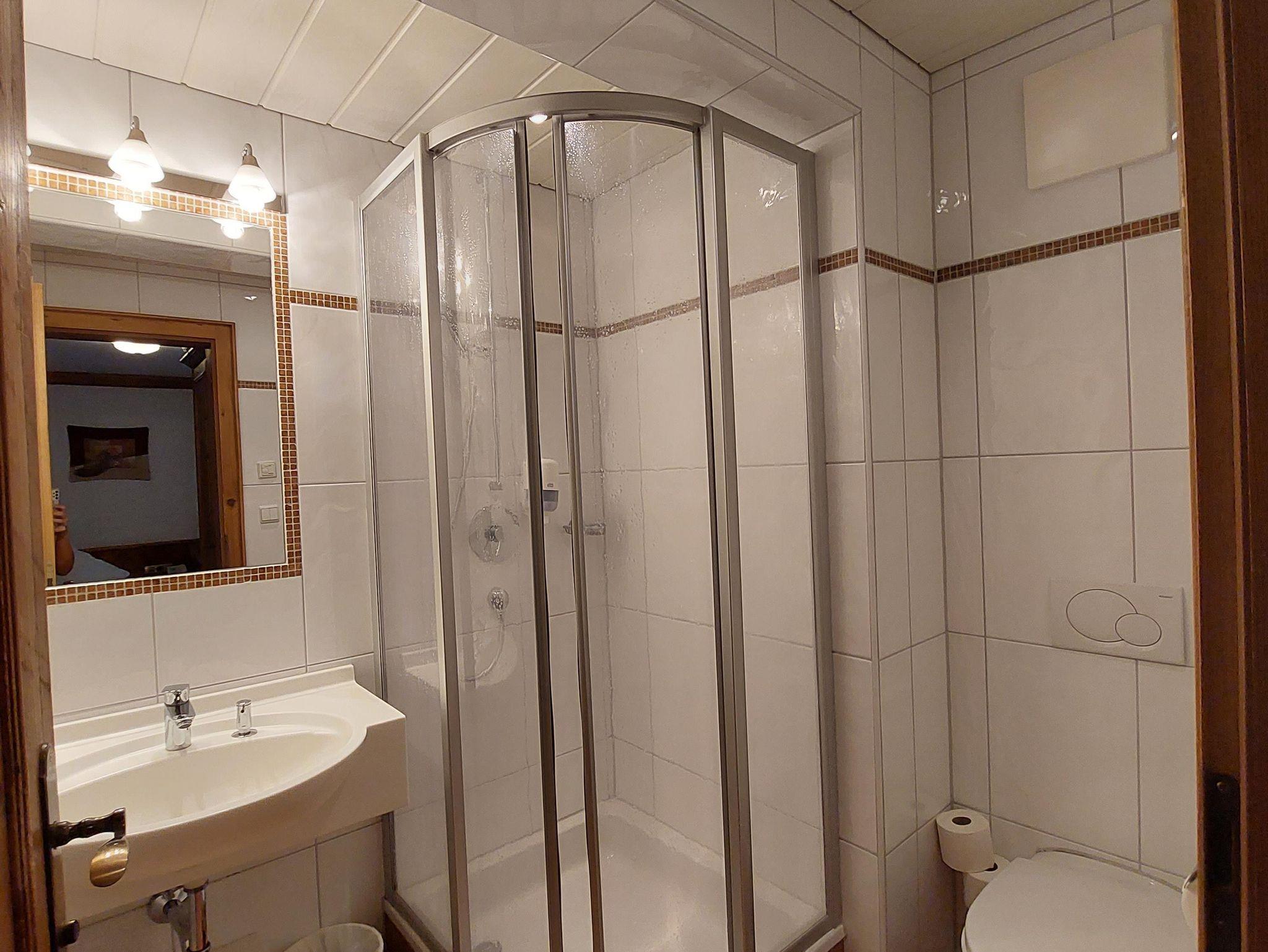 neues geräumiges ZIRBEN-Doppelzimmer, mit Zusatzbett möglich Badezimmer mit Dusche und WC (getrennt), Haarfön, Zimmersafe, Flat-TV, Telefon, W-Lan