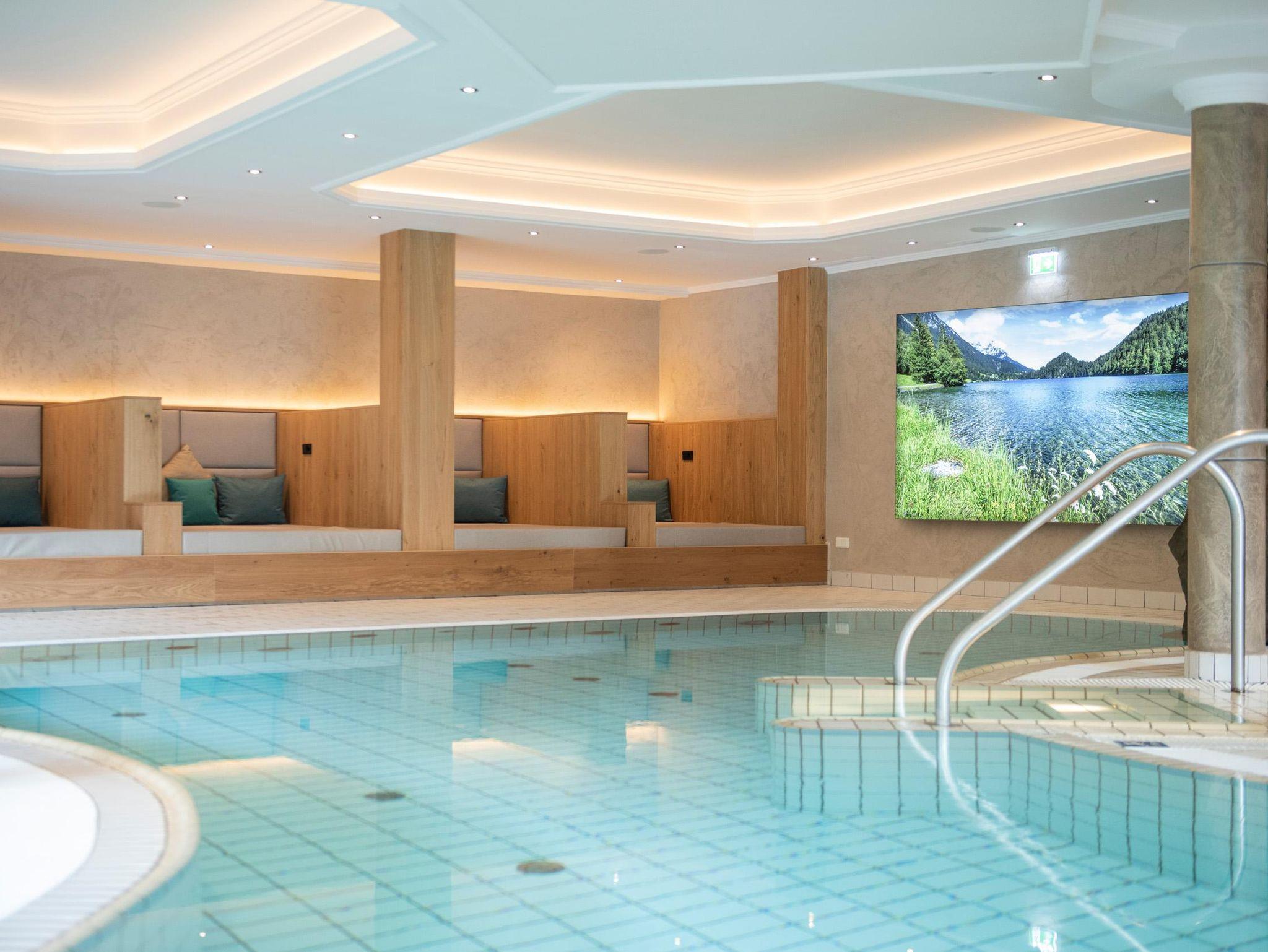 Während Ihres Aufenthalts haben Sie freien Zugang zu unserem Wellnessbereich mit Hallenbad, Sauna, Sanarium, Dampfbad, Regenbogen Dusche, Infrarotkabine, Ruheräume, geräumigen Ruhekojen, Freibad im Schlösslgarten (Sommer).