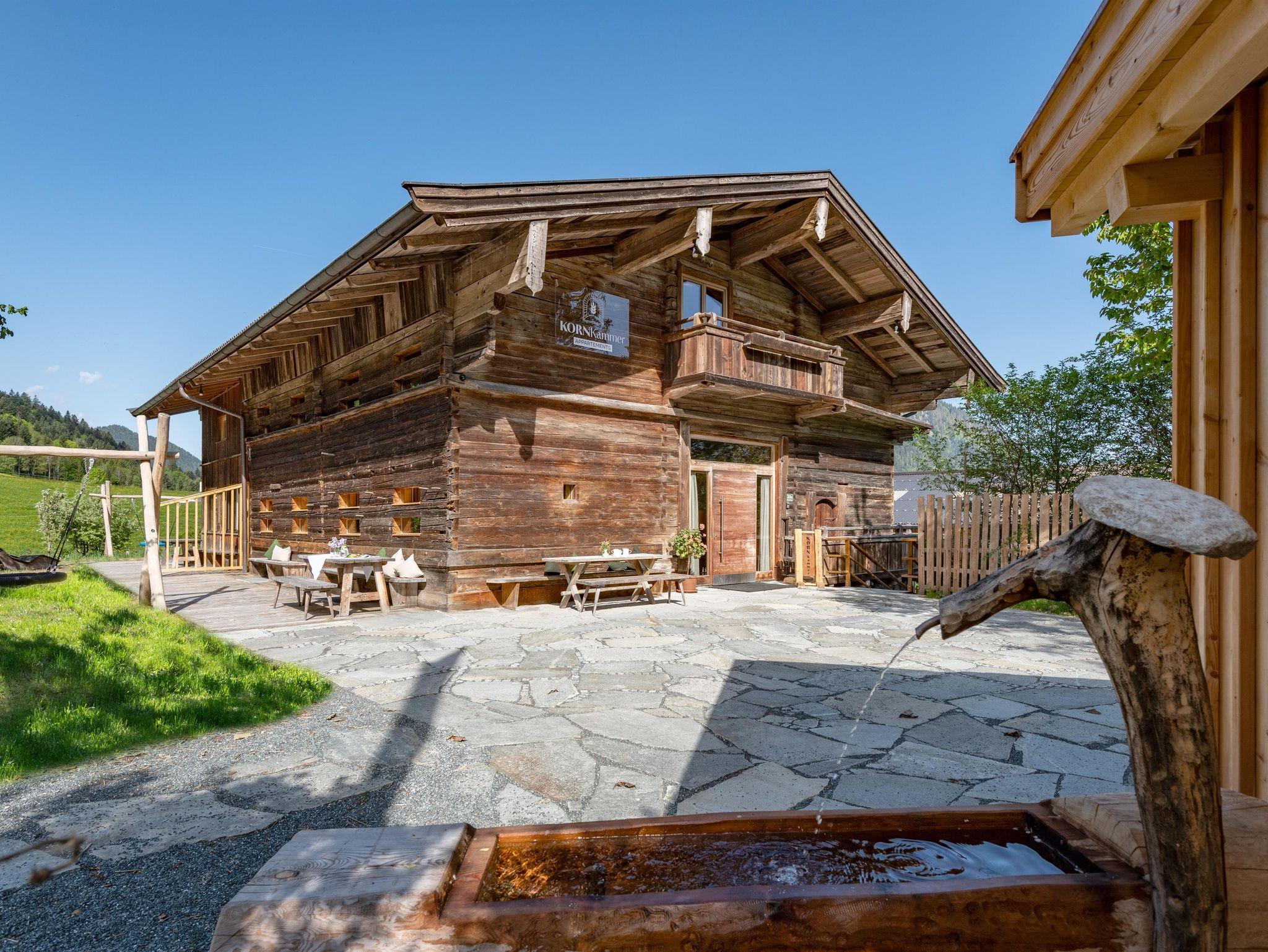 Genießen Sie die schönste Zeit des Jahres in der einzigartigen Kornkammer am Fuße der Hohen Salve, eingebettet in die majestätischen Tiroler Berge, umgeben und etwas versteckt von atemberaubender Natur. Die Kornkammer besticht durch ihre außergewöhnliche Architektur in einem über 500 Jahre alten Getreidekasten, der die Elemente von Glas, Altholz und modernen Designs auf unkonventionelle Weise verbindet – anders und einzigartig. Ein Haus mit Geschichte, ein Haus, das lebt, und ein Ort für besondere Wohlfühlmomente. Tauchen Sie ein in die Natur und die Kornkammer, lassen Sie sich inspirieren und genießen Sie einen unvergesslichen Urlaub. Die ruhige, aber zentrale Lage in der Nähe der Talstation der Hexenwasser-Gondel bietet reichlich Platz für Kinder und Erwachsene. Während die Kinder nach Herzenslust spielen und toben, können die Erwachsenen in entspannter Atmosphäre relaxen, die Aussicht genießen oder in Ruhe ein Buch lesen. Im Winter wird die Kornkammer zum Ski-In/Ski-Out-Paradies – schnallen Sie die Ski direkt vor der Haustür an