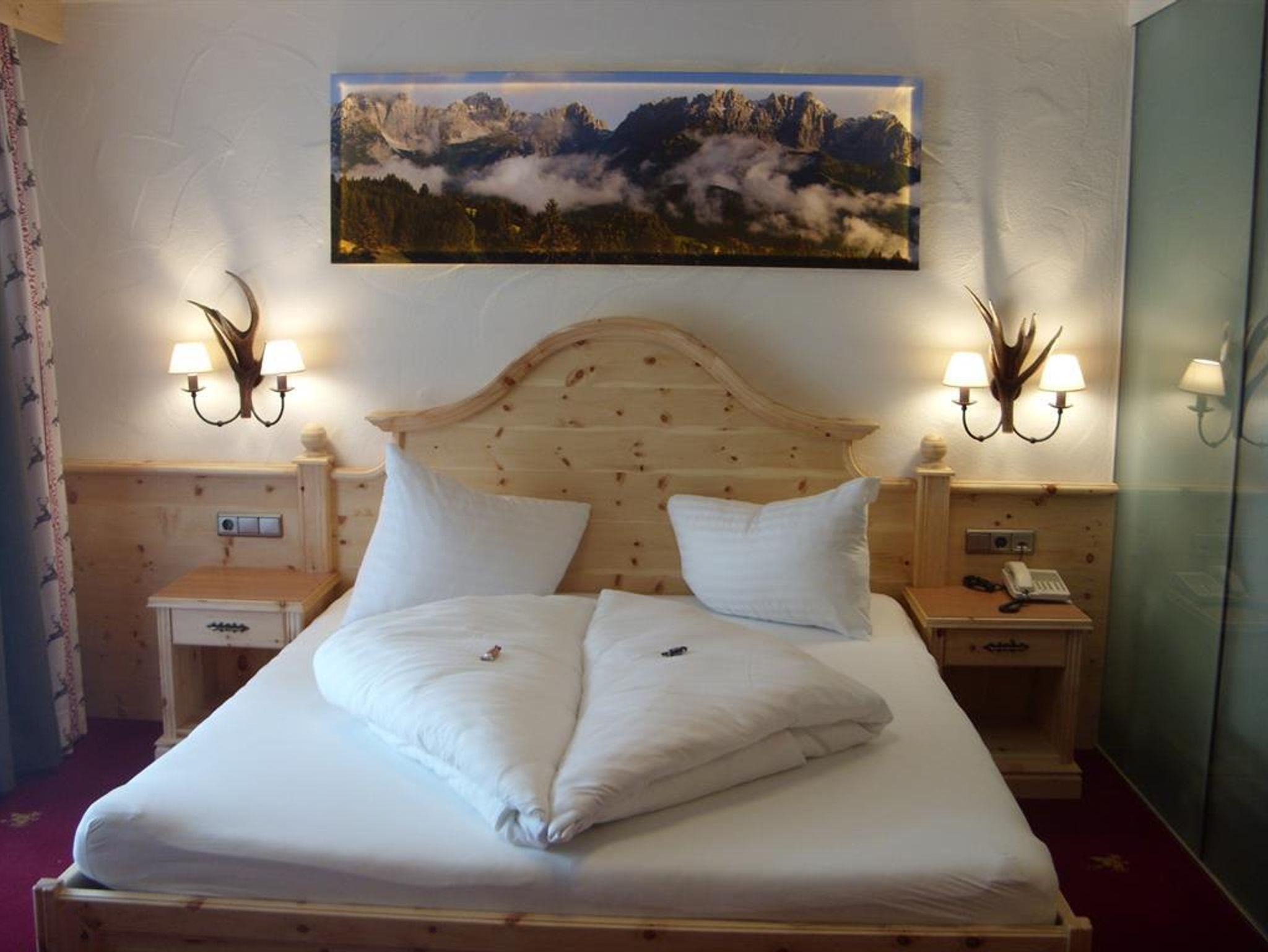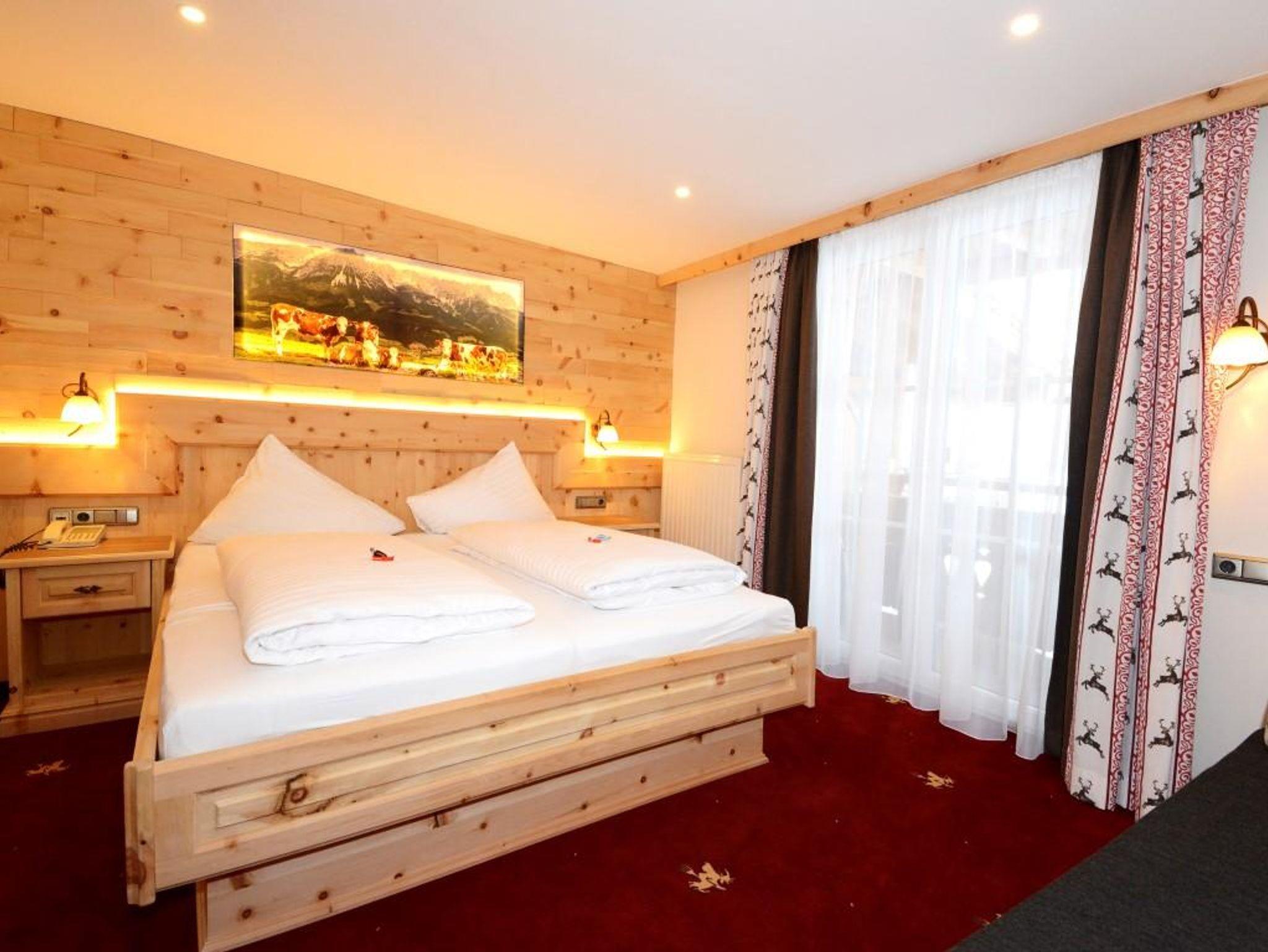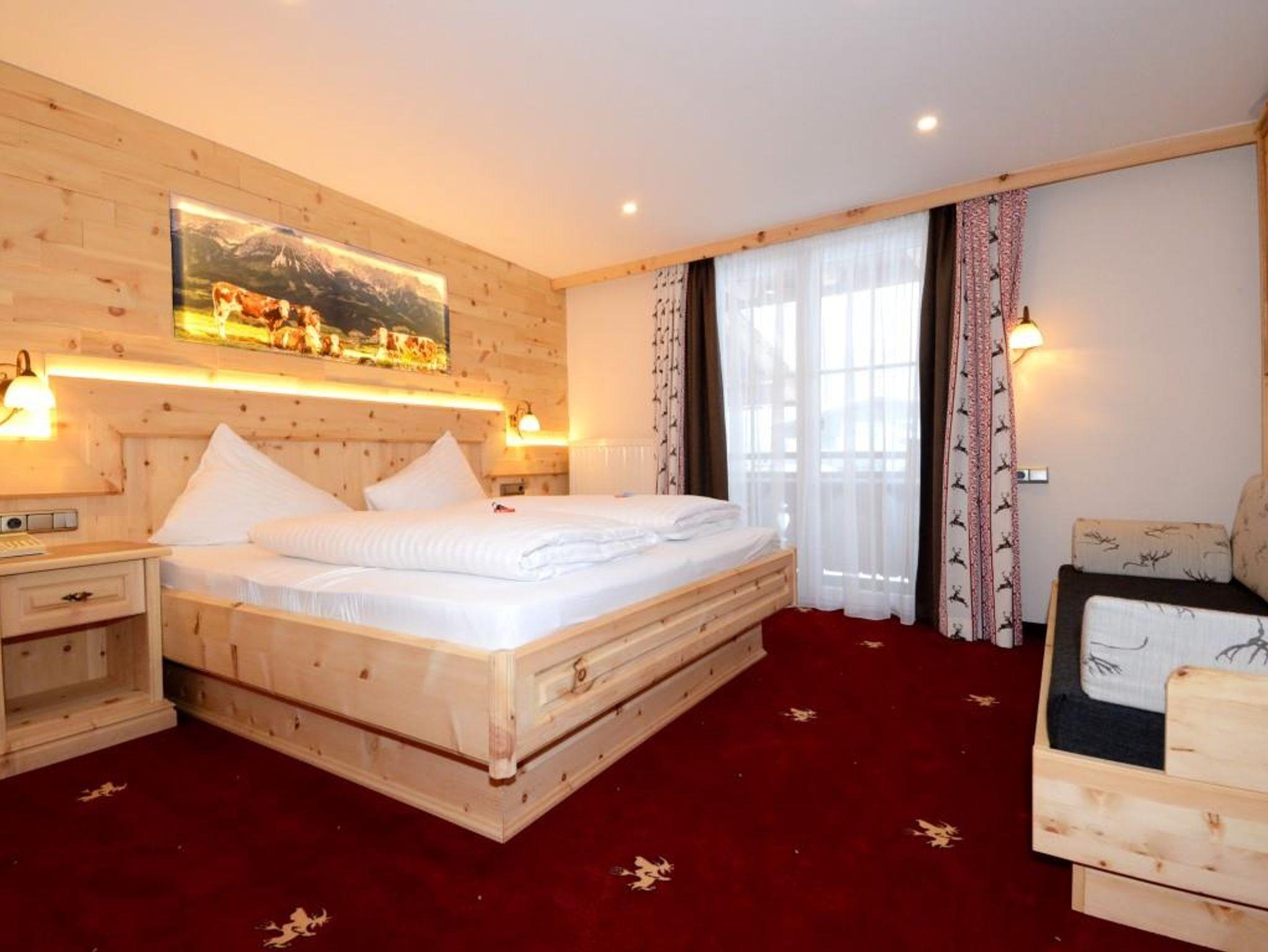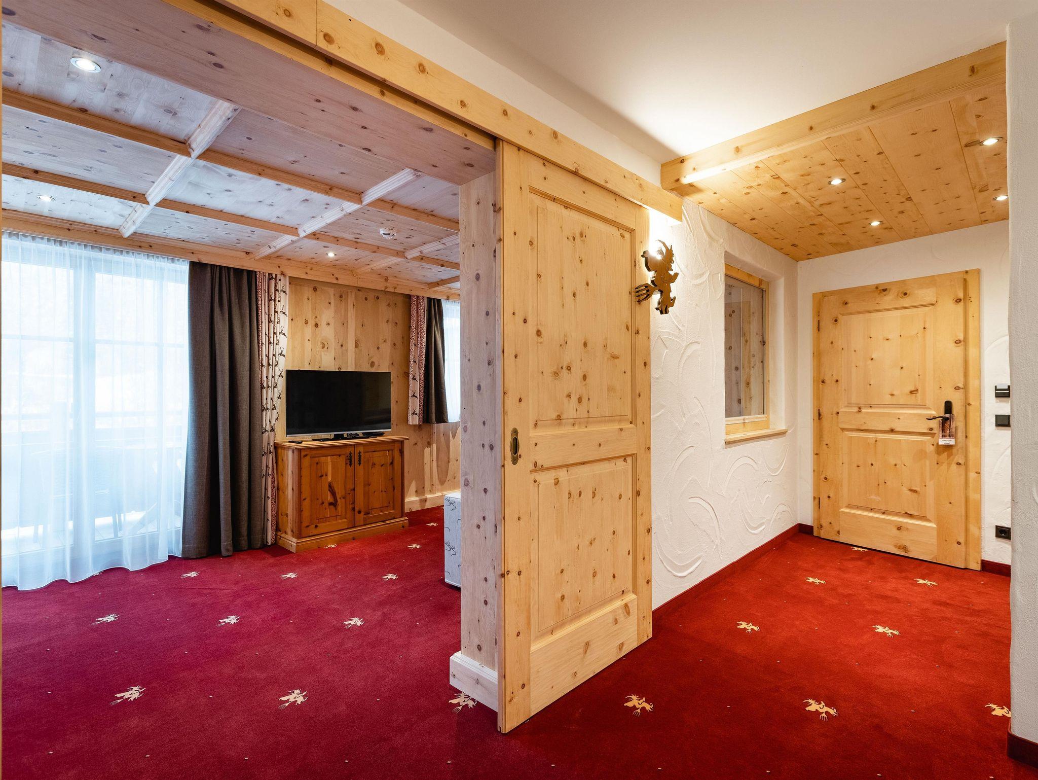 Wohlfühlzimmer Hexenzirbe Ausstattung mit echtem Zirbenholz auf ca. 24 m², Badezimmer mit Dusche und WC, Haarfön, Zimmersafe, TV, Telefon, W-Lan