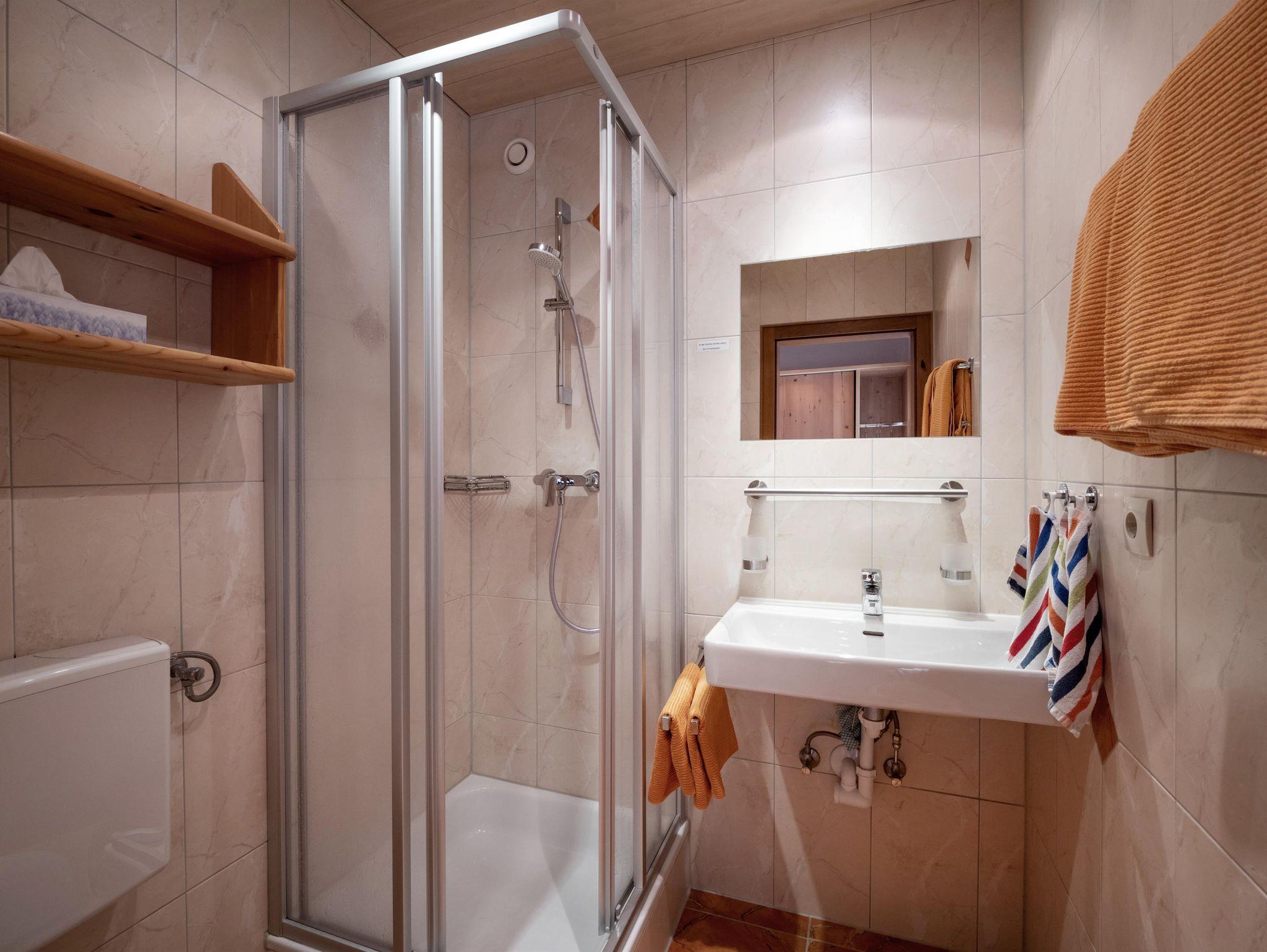 Landhaus Elfi, Apartment/Wohn-Schlafraum/Dusche, WC