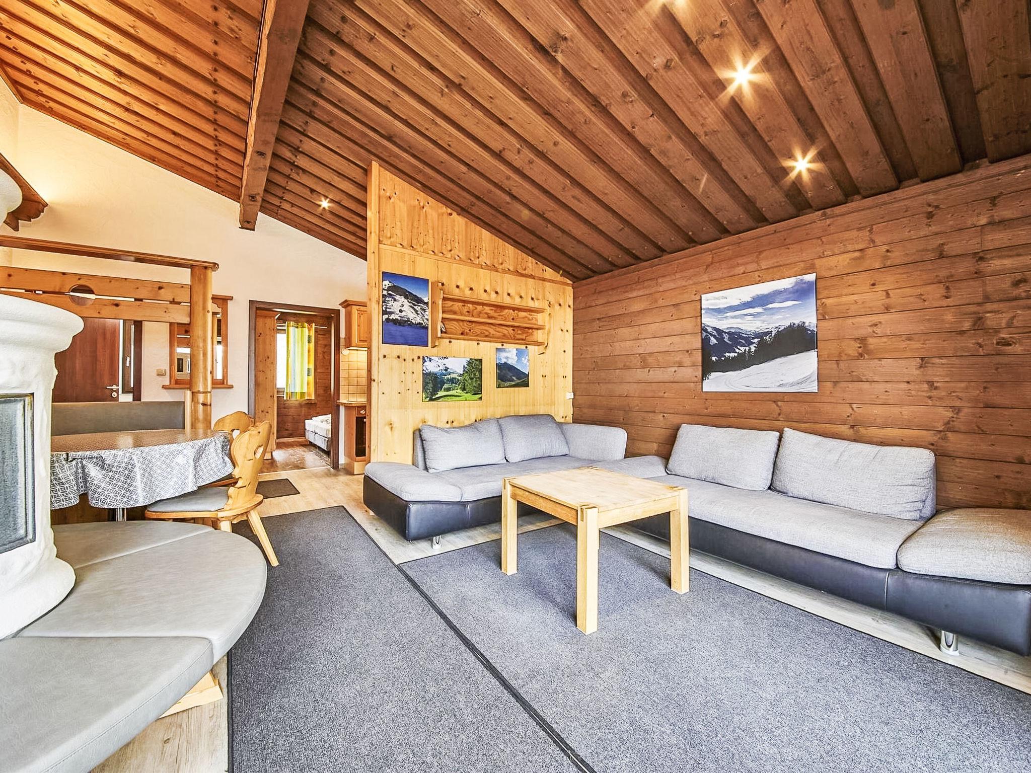 "Spielberg", 3-room apartment 55 m2 on 2nd floor. Cosy and wooden furniture furnishings: living/dining room with dining table and TV (flat screen). 2 double bedrooms. Open kitchen (oven, 4 ceramic glass hob hotplates, toaster, kettle, electric coffee machine). Bath/WC. Electric heating. Terrace 35 m2. Terrace furniture. Beautiful view of the mountains and the ski run. Facilities: Internet (WiFi, free). Garage (1 car) at the house. Please note: non-smokers only. Smoke alarm. 50618-002202-2024