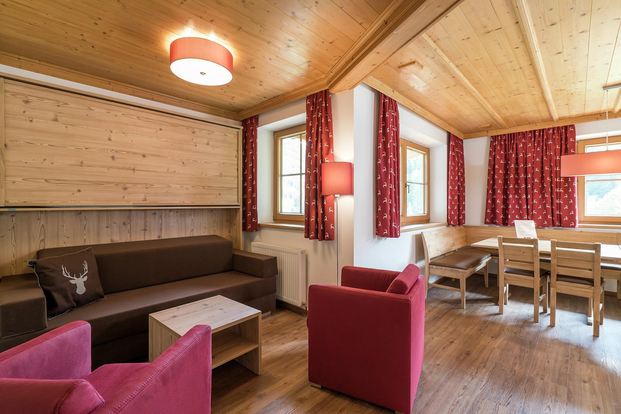Denna vackra stuga, helt renoverad år 2016, ligger på den soliga sidan av den mysiga byn Viehhofen, intill den berömda Saalbach Hinterglemmn. I stugan finns gott om separata lägenheter, smakfullt inredda och lyxigt inredda. Din lägenhet ligger på bottenvåningen, men på grund av sin position på en kulle är den inte utrustad med en trädgård, men med en vacker solig balkong. Vardagsrummet är mycket rymligt och smakfullt inrett. Det har ett separat sittande och matplats, gott om plats för alla gäster. På grund av ett genialt system kan en bank omvandlas i en bekväm säng. Det separata köket är fullt utrustat med all modern utrustning. 2 sovrum är tillgängliga från den här lägenheten och du kommer att nå det tredje sovrummet genom den centrala korridoren