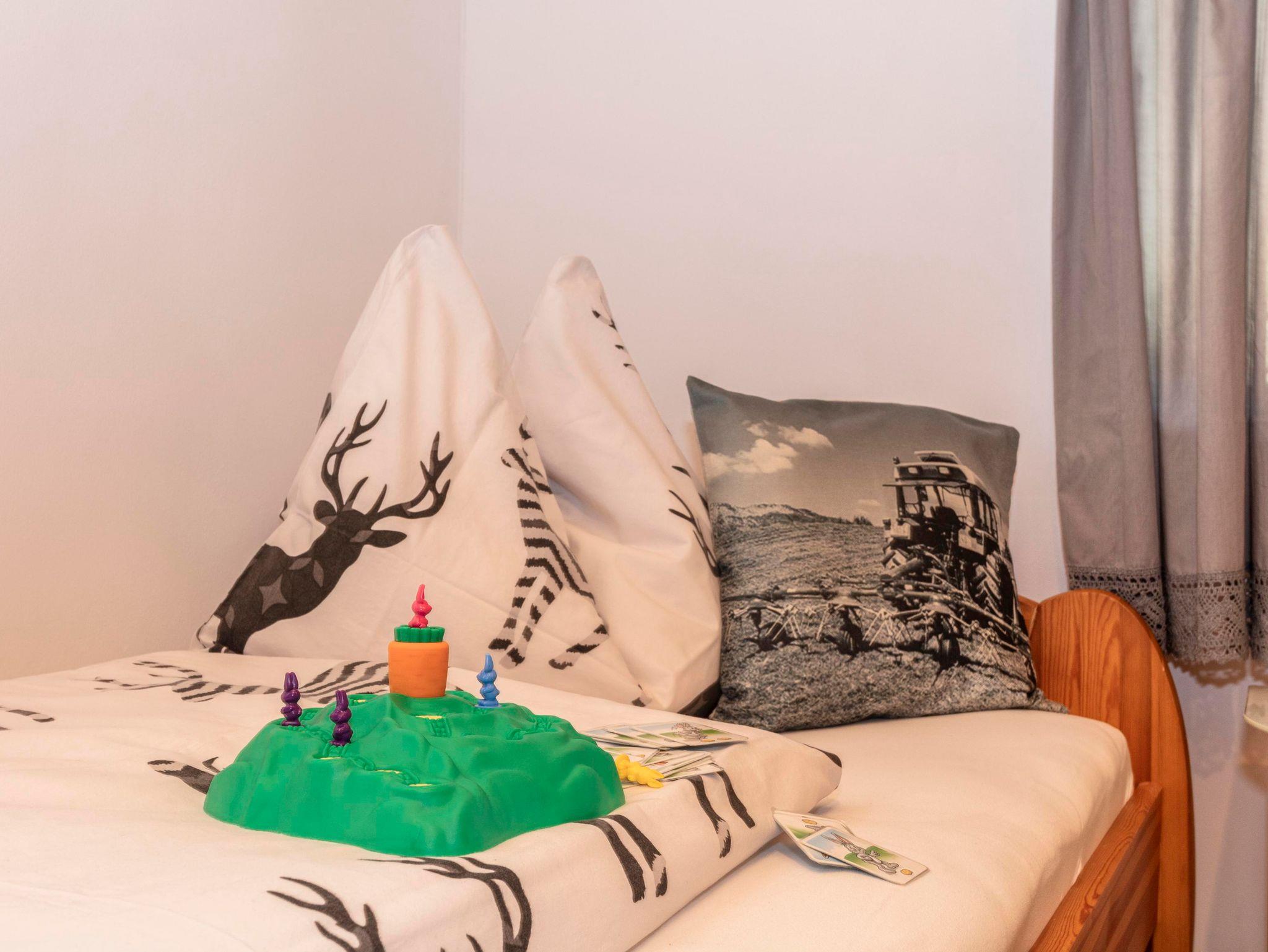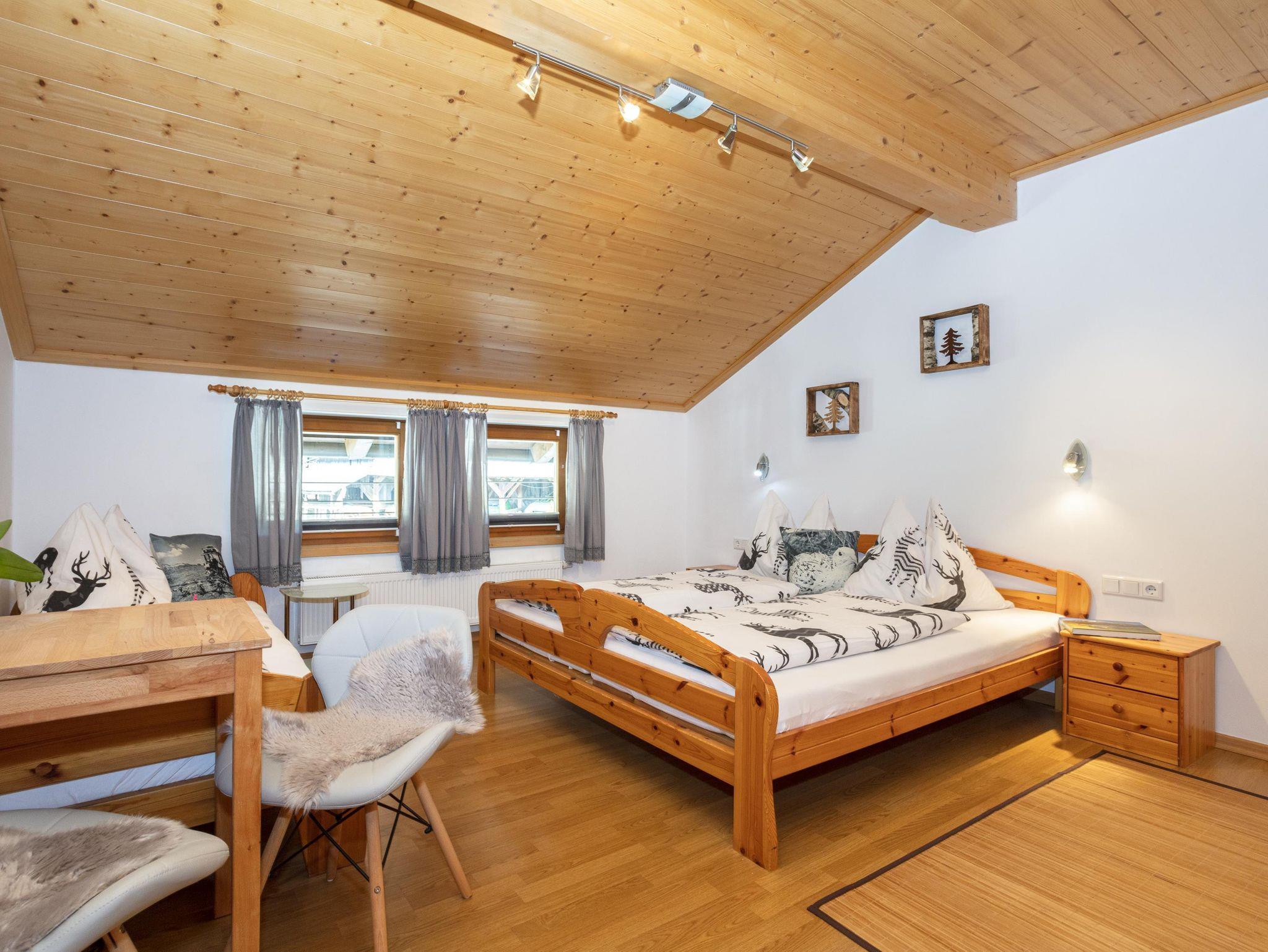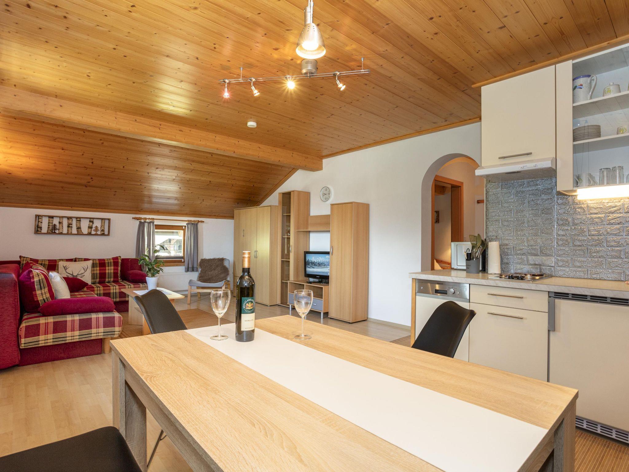 Gemütliches Appartement Das Appartement Enzian verfügt über ein separates Schlafzimmer, einen großen Wohnraum mit gut ausgestatteter Küche, ein Badezimmer und ein WC. Das Schlafzimmer ist mit einem Doppelbett und einem Einzelbett ausgestattet. In der großen Wohnküche befinden sich ausziehbare Sofas.
