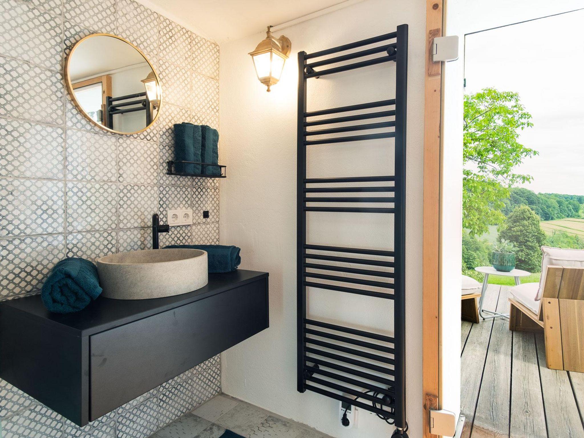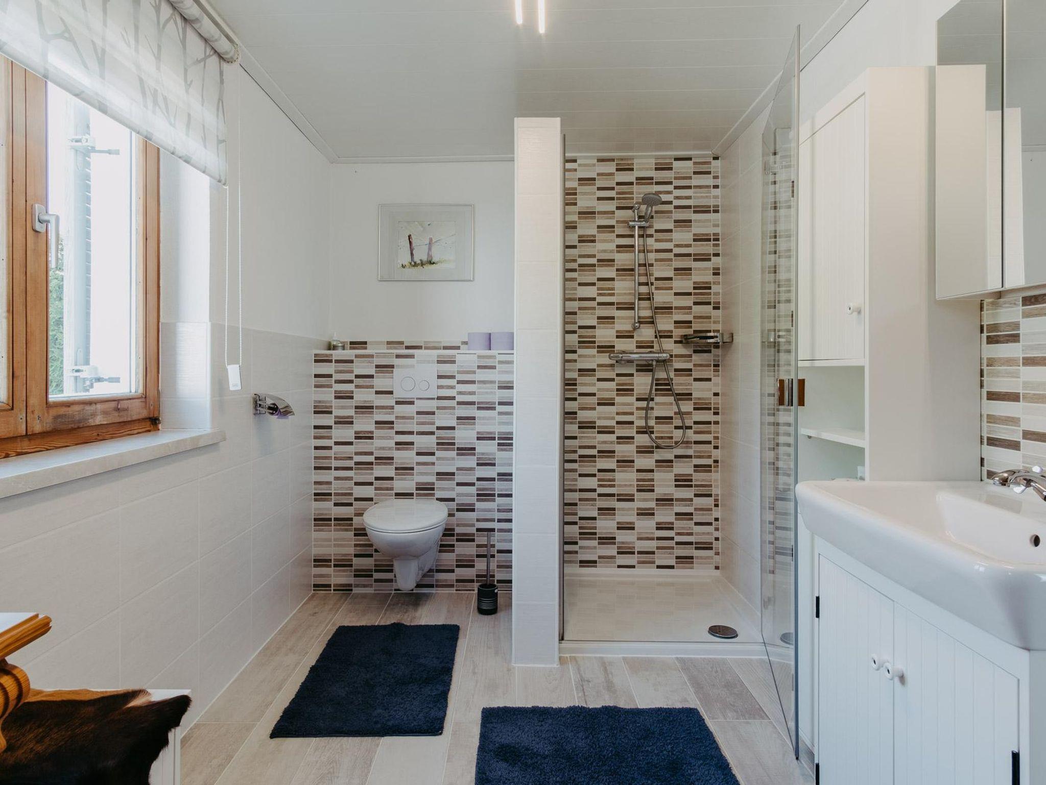 Auf ca. 40m² befinden sich ein großzügiges Bad mit Fußbodenheizung und Handtuchtrockner.