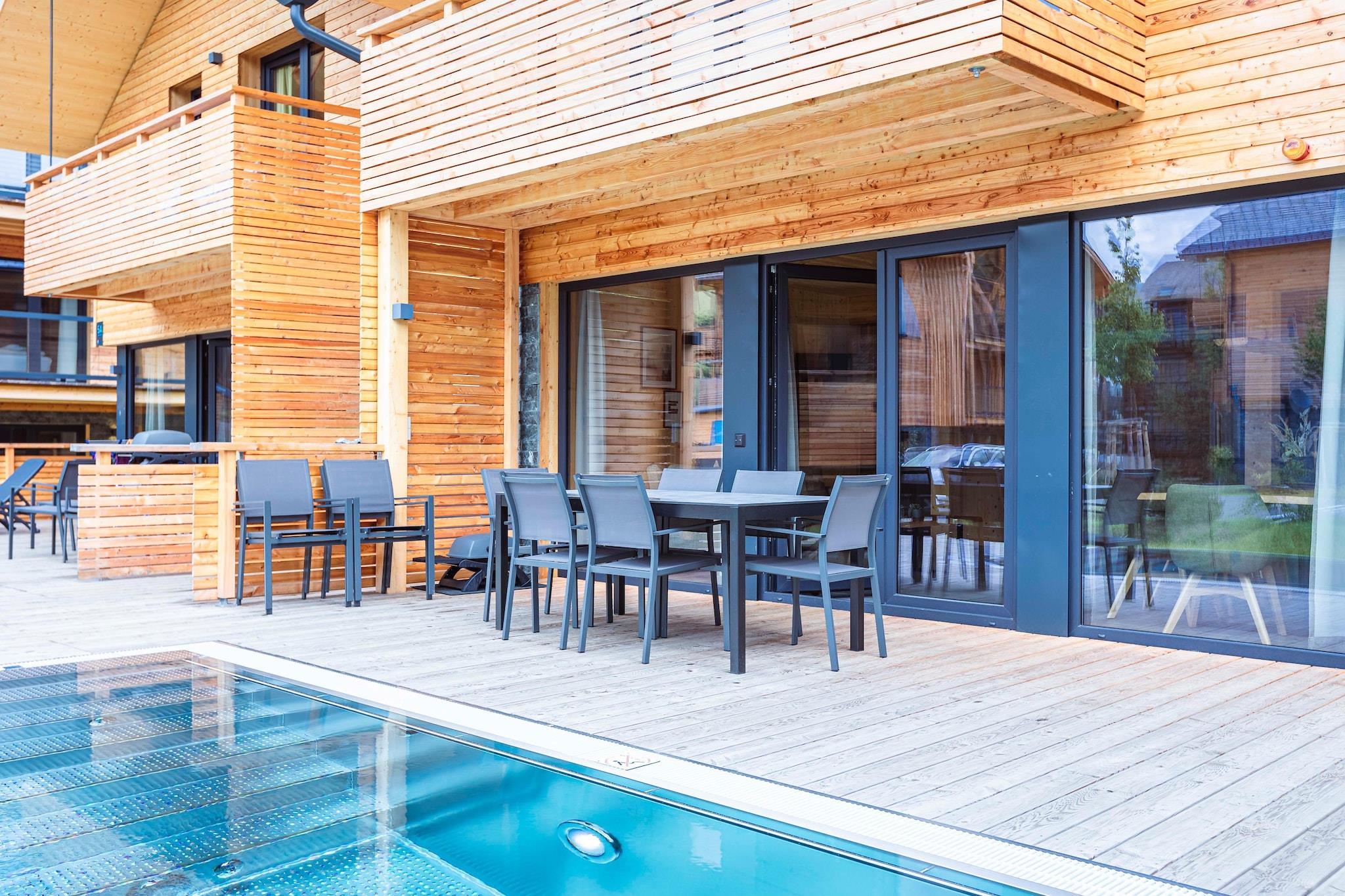 "Upptäck oöverträffad komfort och lyx i detta utsökta semesterhus på 113 m², designat för att rymma upp till 8 gäster. Beläget bara några meter från Kreischbergs linbana, erbjuder denna eleganta oas en perfekt blandning av moderna bekvämligheter och alpin charm. Semesterhuset har fyra smakfullt inredda sovrum, alla utrustade med en plyschig resårmadrass och en platt-TV, vilket garanterar ultimat avkoppling och underhållning. Njut av bekvämligheten med två eleganta badrum med regnduschar, tre badrum och en separat gästtoalett. Höjdpunkten i semesterhuset är dess privata spa-avdelning, som inkluderar en finsk bastu och en uppvärmd pool på terrassen, som kan användas året runt. Dessa lyxiga bekvämligheter erbjuder den perfekta möjligheten till avkoppling och föryngring under din vistelse. Det rymliga vardagsrummet är utformat för komfort, med en mysig sittgrupp och en extra platt-TV, perfekt för att varva ner efter en dag i backarna. Gå ut på balkongen för att njuta av den hisnande utsikten över Kreischberg, vilket ger en lugn bakgrund för din vistelse. Det moderna köket är en kulinarisk fröjd, fullt utrustat med högkvalitativa bestick, köksredskap, en keramikhäll, ugn, Mikrovågsugn, kylskåp med frysfack och diskmaskin. Ytterligare bekvämligheter inkluderar vattenkokare, brödrost och Nespressomaskin. Ett litet startset med diskmaskinstablett, diskmedel, svamp, sopsäckar, rengöringsmedel och kökshandduk finns för din bekvämlighet. Gratis Wi-Fi finns tillgängligt i hela huset, och MurauCard (sommar) ger ytterligare lokala förmåner och aktiviteter.
