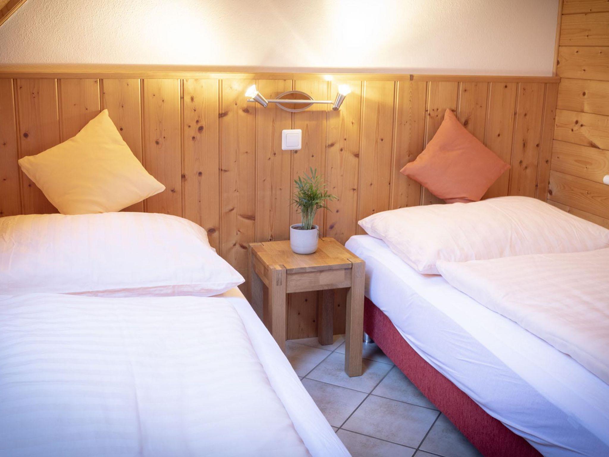 Ferienwohnung Frauenalpe für 4 Personen mit 2 getrennten Schlafräumen. 1 Schlafzimmer mit Doppelbett, Couch, Schreibtisch, Kabel-TV, W-LAN, 1 Schlafzimmer mit 2 Einzelbetten und Kabel-TV. Dusche WC getrennt.
