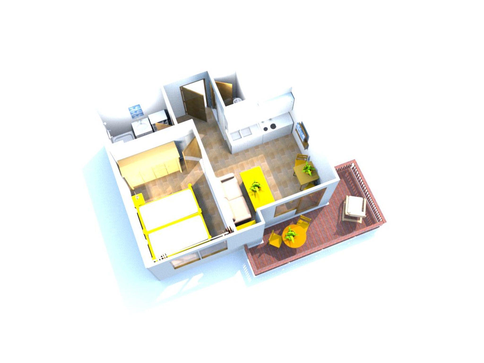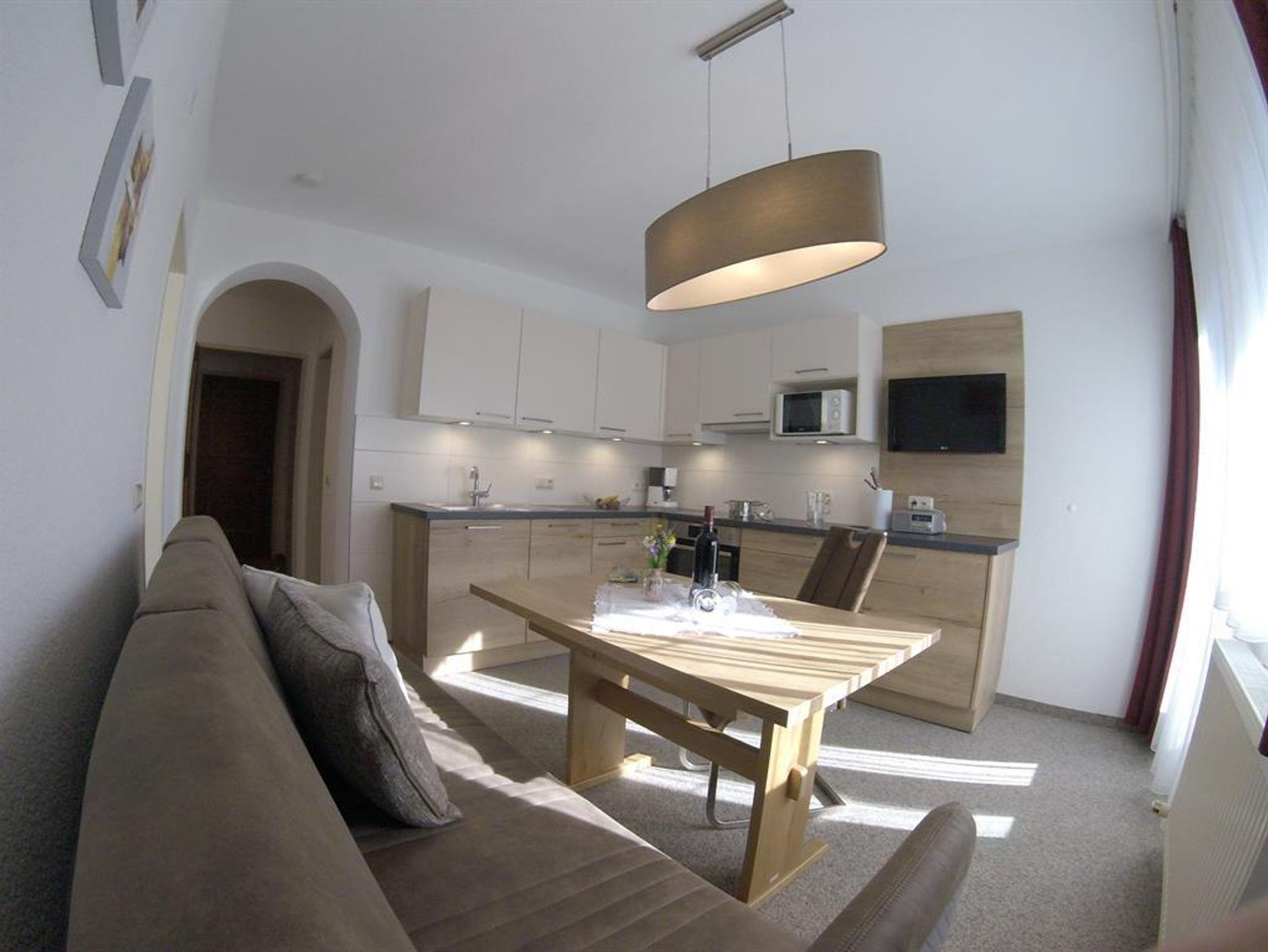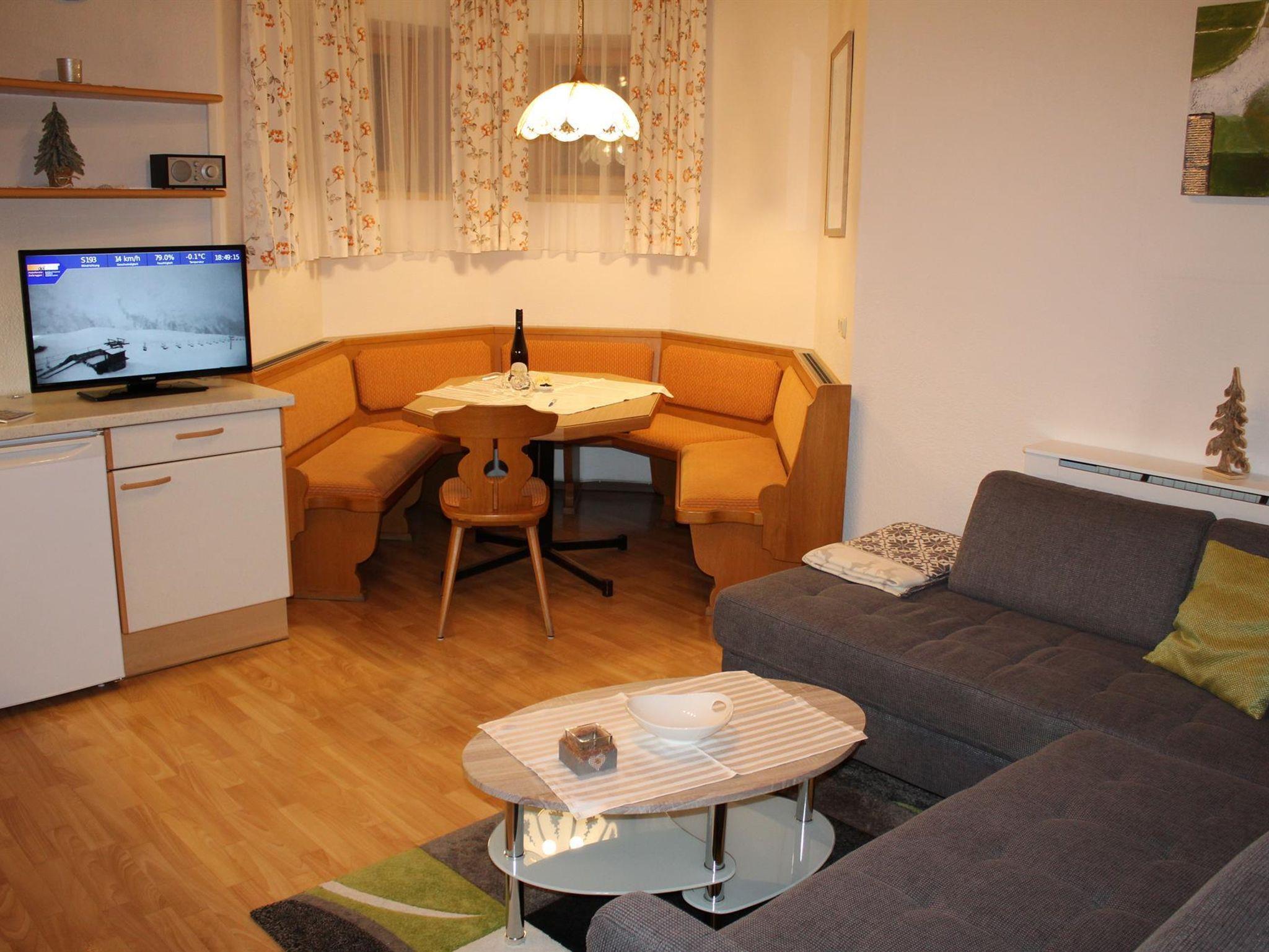 Appartement Nr.1: 35 m², Vorraum mit Garderobe, Wohnraum mit Couch u. Couchtisch, TV, Radio, Esstisch, Küchenzeile (E-Herd, Kühlschrank mit Gefrierfach, Kaffeemaschine, Wasserkocher,), ein Doppelzimmer, Dusche/WC, Balkon Westseite-schöne Aussicht.