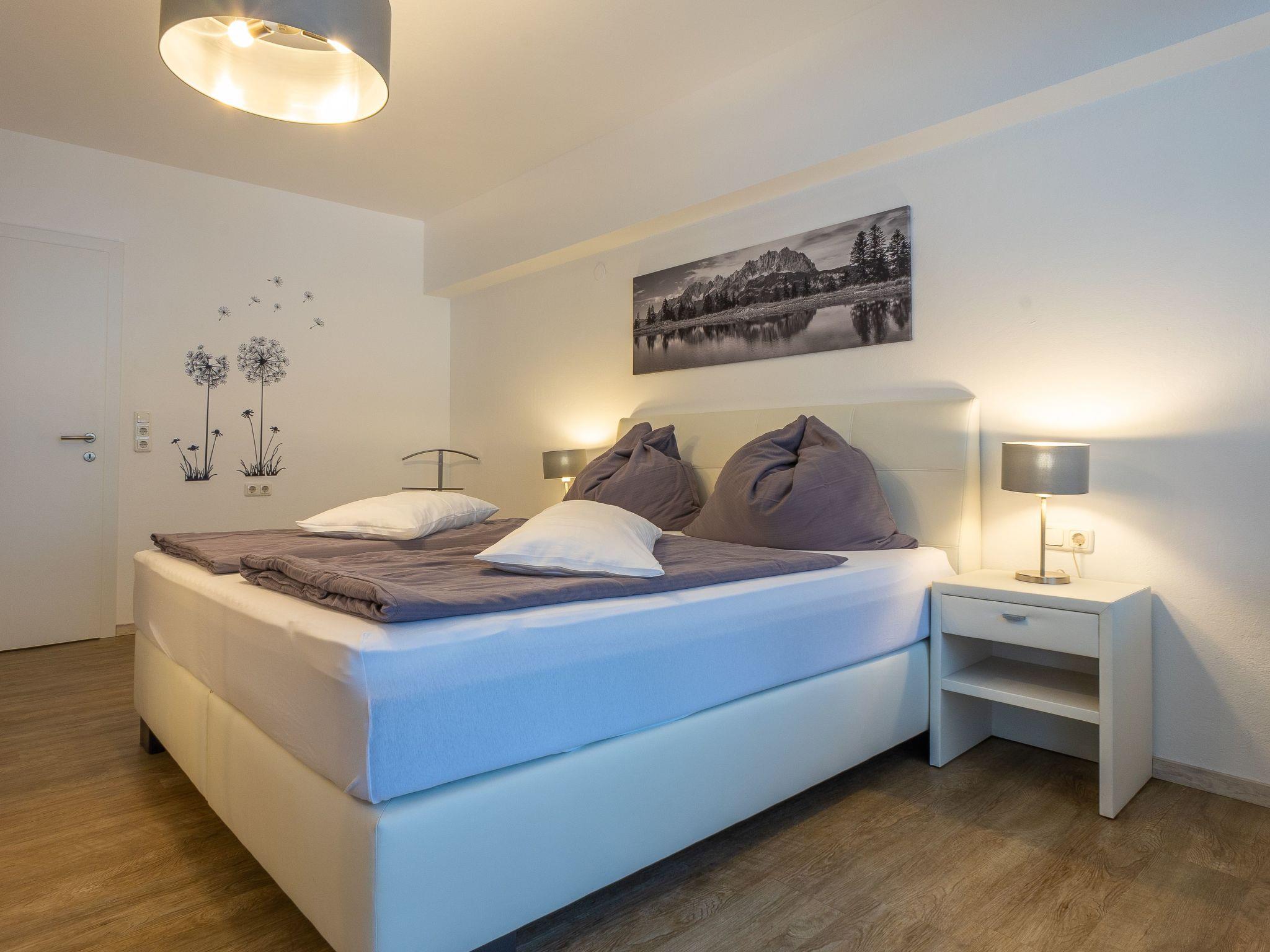 The 120m² flat has 2 separate bedrooms with a double bed and sleeping facilities for 2 people in the extremely spacious living room. In addition to 2 separate bathrooms, there is also an extra toilet. In addition to the fully equipped kitchen, you will also find a farmhouse parlour for cosy get-togethers. You can enjoy the afternoon and evening sun on our beautiful terrace with a view of the Wilder Kaiser. We reserve the right to prepare only one bathroom and one bedroom for bookings of up to 2 people.