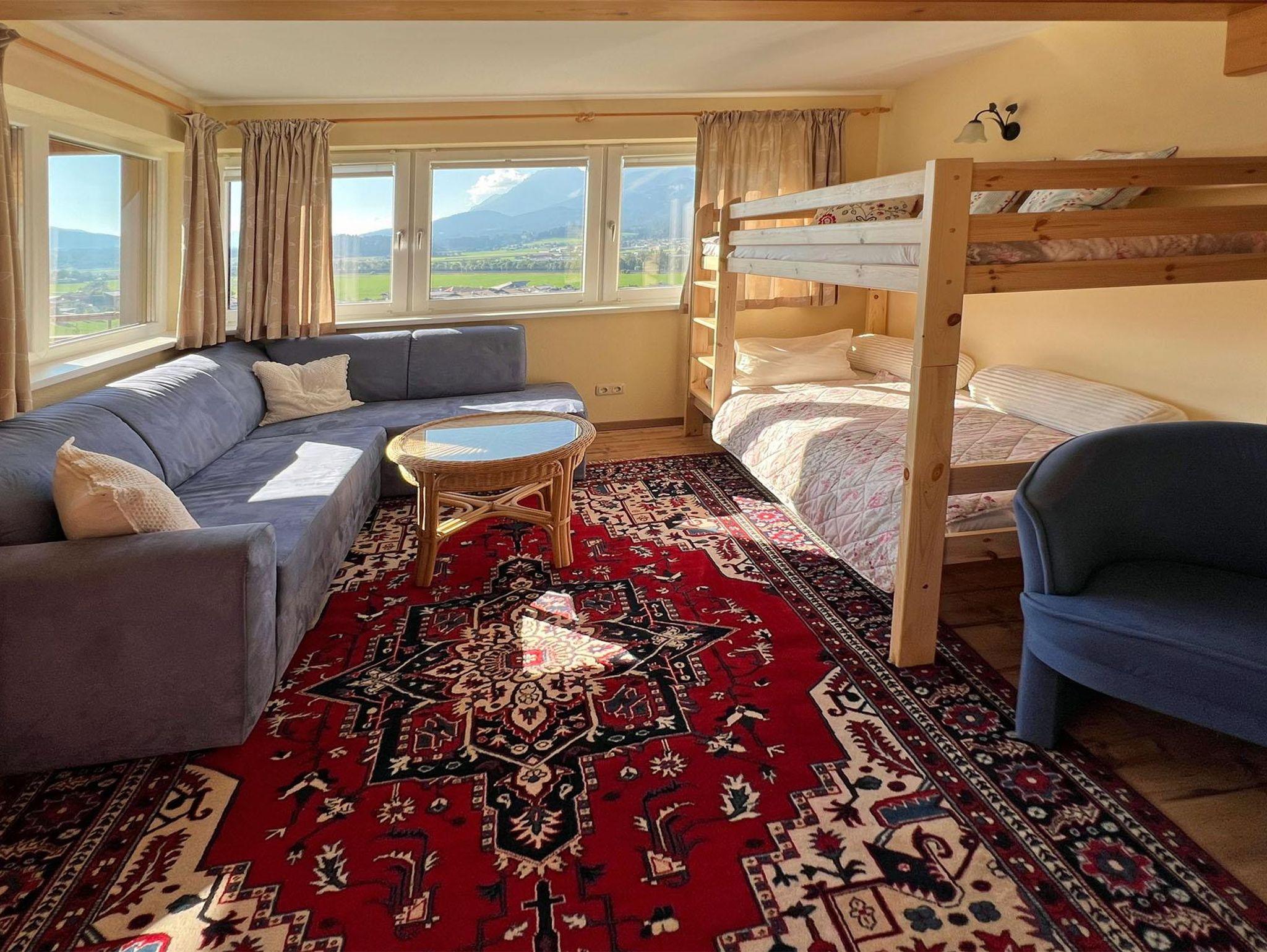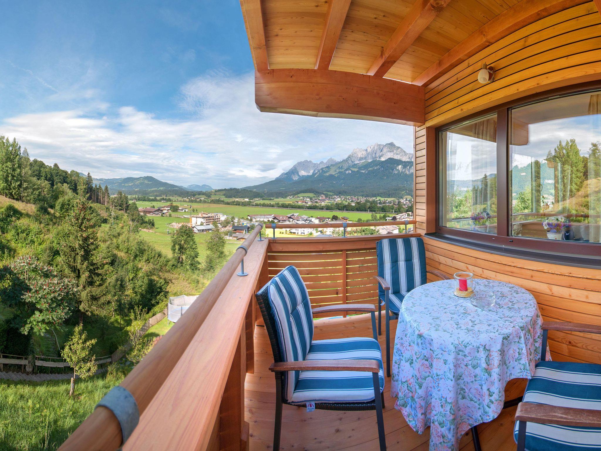 Das neu renovierte, sonnseitig ausgerichtete Ein-Zimmer Appartement „Sport“ für 2 Erwachsene und 2 Kinder verfügt über eine abgegrenzte Küche mit großer Sitzecke und einen überdachten Südbalkon mit Morgensonne. Der Wohn-/Schlafraum mit wunderbarem Kaiserblick erfüllt Urlaubsträume.
